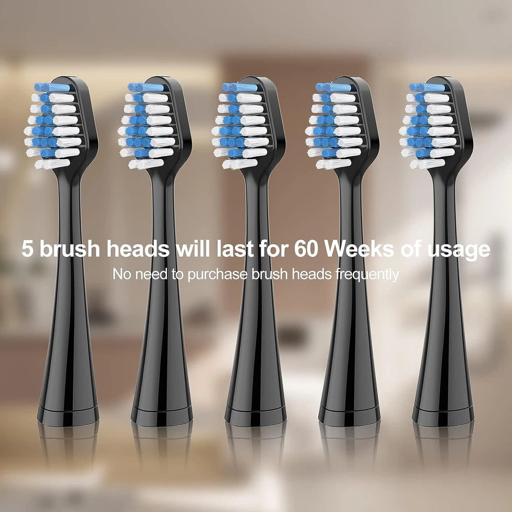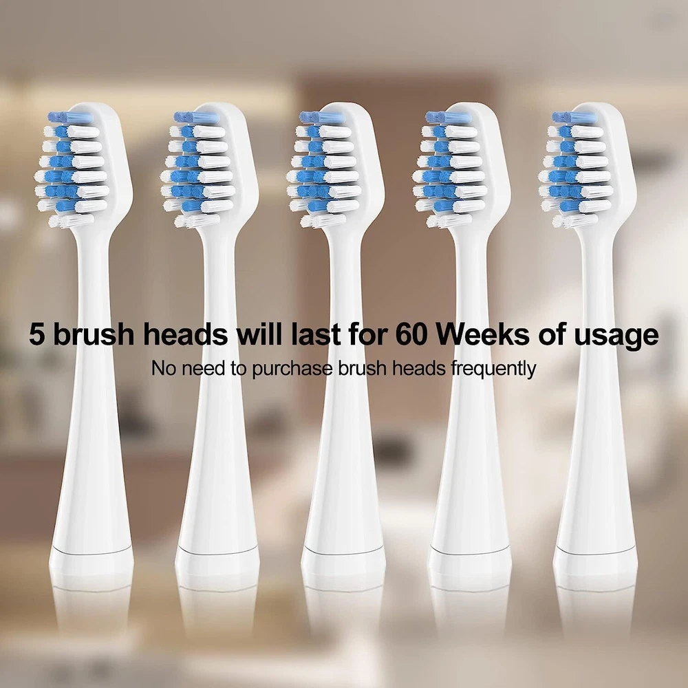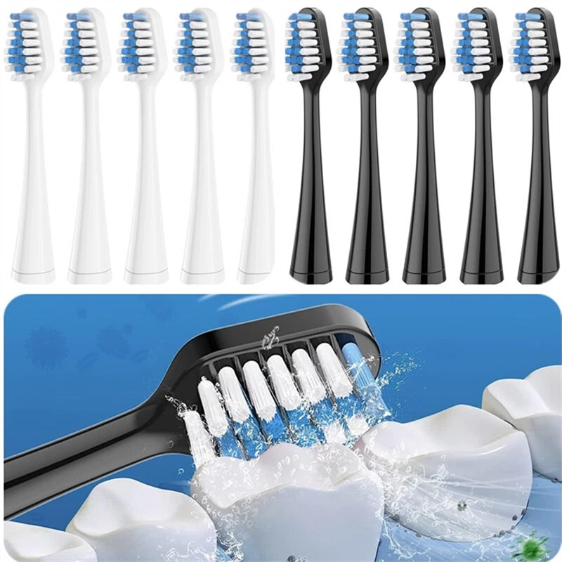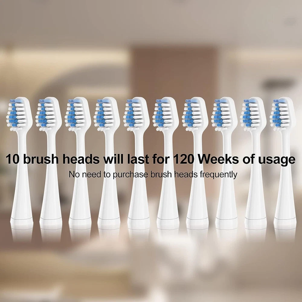 Product Description COMPATIBLE WITH WATERPIK COMPLETE CARE : These replacement brush heads are compatible with Waterpik Complete Care 9.0 Water Flosser & Sonic Electric Toothbrush (CC-01CD010-1) and Waterpik Complete Care 5.0 (WP-861). EFFECTIVE PLAQUE REMOVAL : Our replacement brush heads feature soft, end-rounded bristles that effectively yet gently remove plaque from hard-to-reach areas. ADVANCED CLEAN DESIGN : Our brush head is designed with high-low "W" shape bristle configuration with densely packed bristles for a superior clean. REPLACEMENT REMINDER : The brush head's built-in brush head replacement reminder will remind you to replace your brush head when the blue color fades. It is recommended to replace the brush heads every three months, as advised by dentists. EXCELLENT SERVICE & SUPPORT : Each package includes ten replacement toothbrush heads, providing excellent quality brushing for whole family – A great value for your money. Additionally, we are 24 hours oneline that available to assist you with any product questions or needs you may have. Gentle & Effective Clean Replacement brush heads complete care with soft, tightly packed bristles, provide more stronger vibration and more thorough cleaning, effectively reducing gingivitis gradually improves overall gum health. 10X more effective than a manual toothbrush. Fit the shape of teeth Advanced brush head design with "W" special contoured soft bristles that fit the shape of your teeth well, providing a provide a superior clean to help remove plaque while won't damage sensitive gums. End-Rounded Bristles Made with high quality, end-rounded DuPont nylon bristles, effectively removing plaque on tooth surfaces while providing gentle care for teeth and sensitive gums. Blue Reminder Bristles Toothbrush replacement heads with built-in blue bristle reminder which will fade from blue to white about 3 months of use and let you know when to replace the head. Great Value Large Package - 10 pack Pack of 10 waterpik replacement heads for complete care can hold for 120 weeks usage to meet your and your family's need to replace the toothbrush heads, perfect for family use! Noted : Before buying, please check model number on the base to make sure to fit your waterpik. Package Included : 5Pcs Toothbrush Heads Or 10Pcs Toothbrush Heads