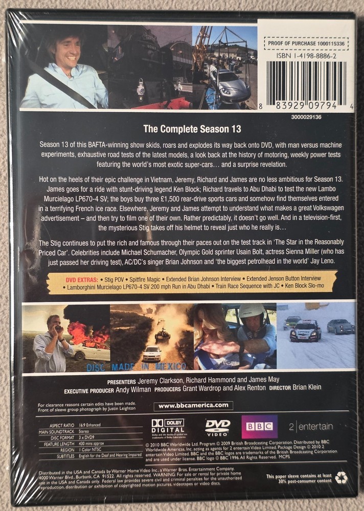 Automobile enthusiasts Jeremy Clarkson, James May, and Richard Hammond return for the 13th season of TOP GEAR, highlights of which include a trip to Abu Dhabi, where they test a Lambo Murcielago LP640-4 SV, and an their unlikely entrance in a French ice race. Usain Bolt, Sienna Miller, and Jay Leno make guest appearances.