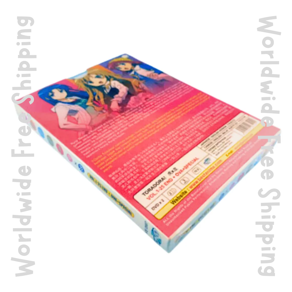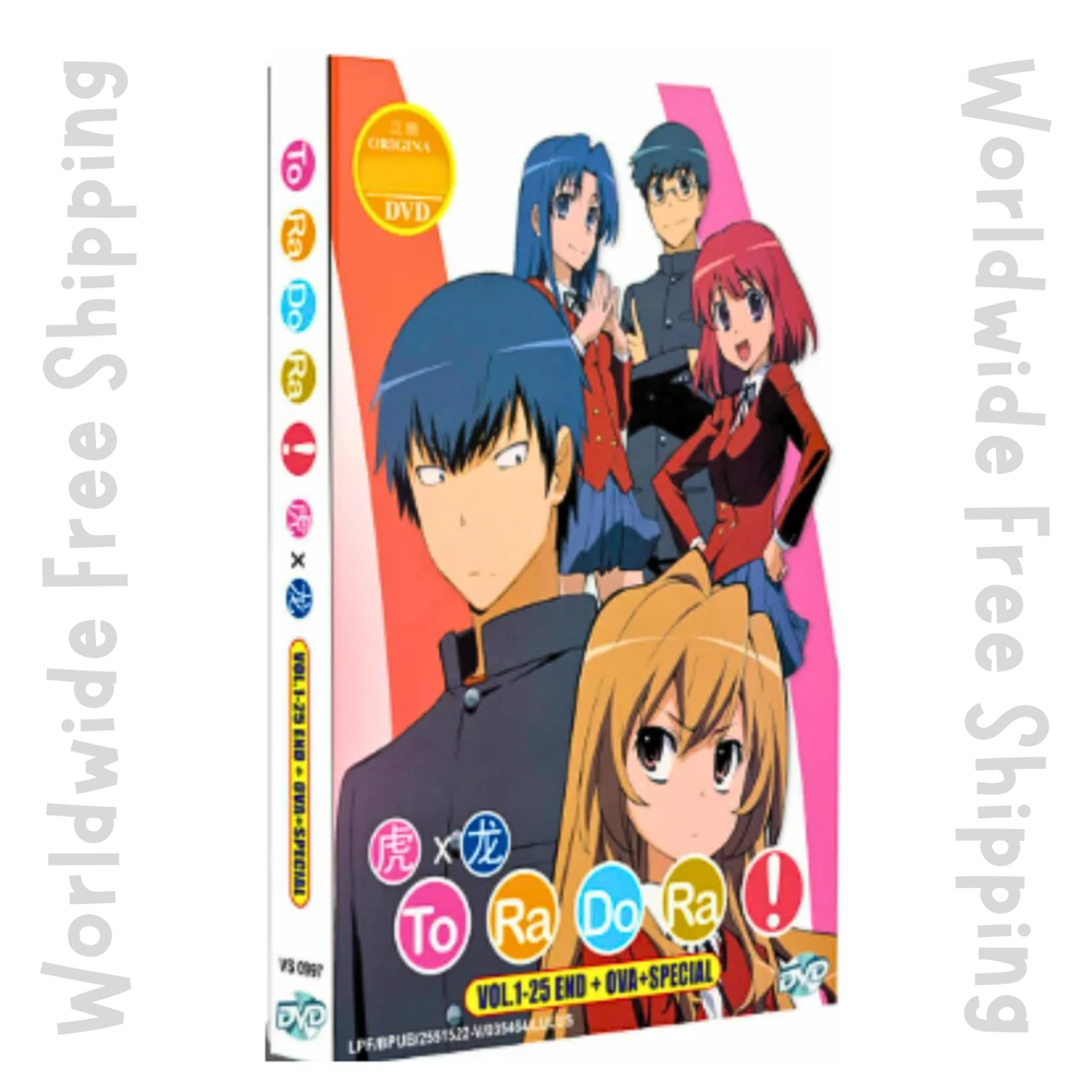 Toradora! ( Tiger X Dragon ) とらドラ! Complete Collection Set TV Series + OVA + Special TV Series: (Volume 1-25 End) + Bonus OVA + Special New! English Audio Dub Version! - All Region / Region 0 - Optional English Subtitle Condition: Authentic, Brand NEW, Original Factory Sealed. Episode: 1-25 End + OVA + Special No. of Discs: DVD x 2pcs * Region Code: All Region/Region FREE "0" (Able to play on any DVD Players throughout the World) Audio Language: English / Japanese Subtitles: English / Chinese