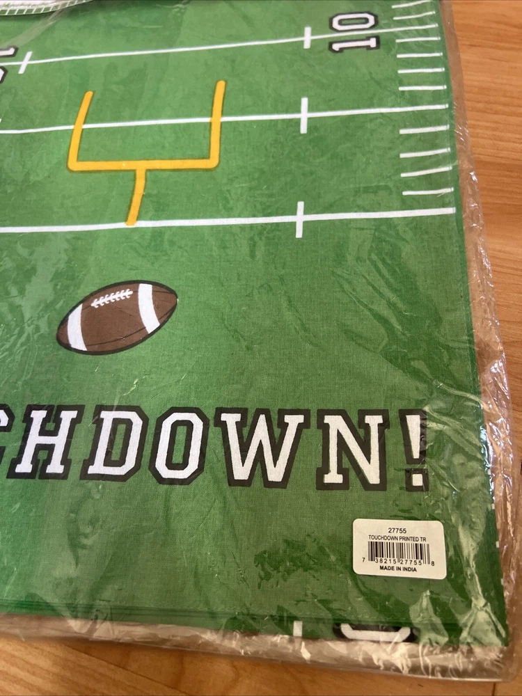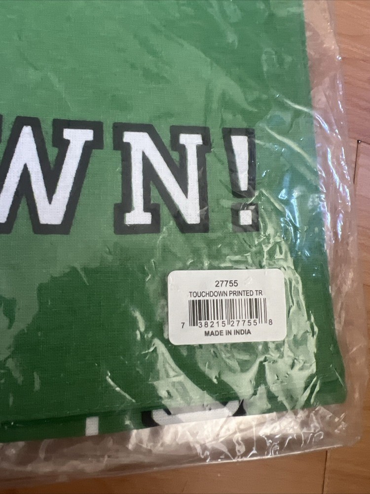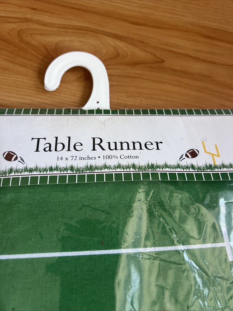 Add a touchdown of style to your dining table with this green cotton table runner from Design Imports. Measuring 14 inches by 72 inches, this table runner is perfect for football-themed dinners or any casual meal. Made from high-quality cotton, it is durable and easy to clean. The green color complements any home décor and the football theme adds a fun touch to your dining experience.