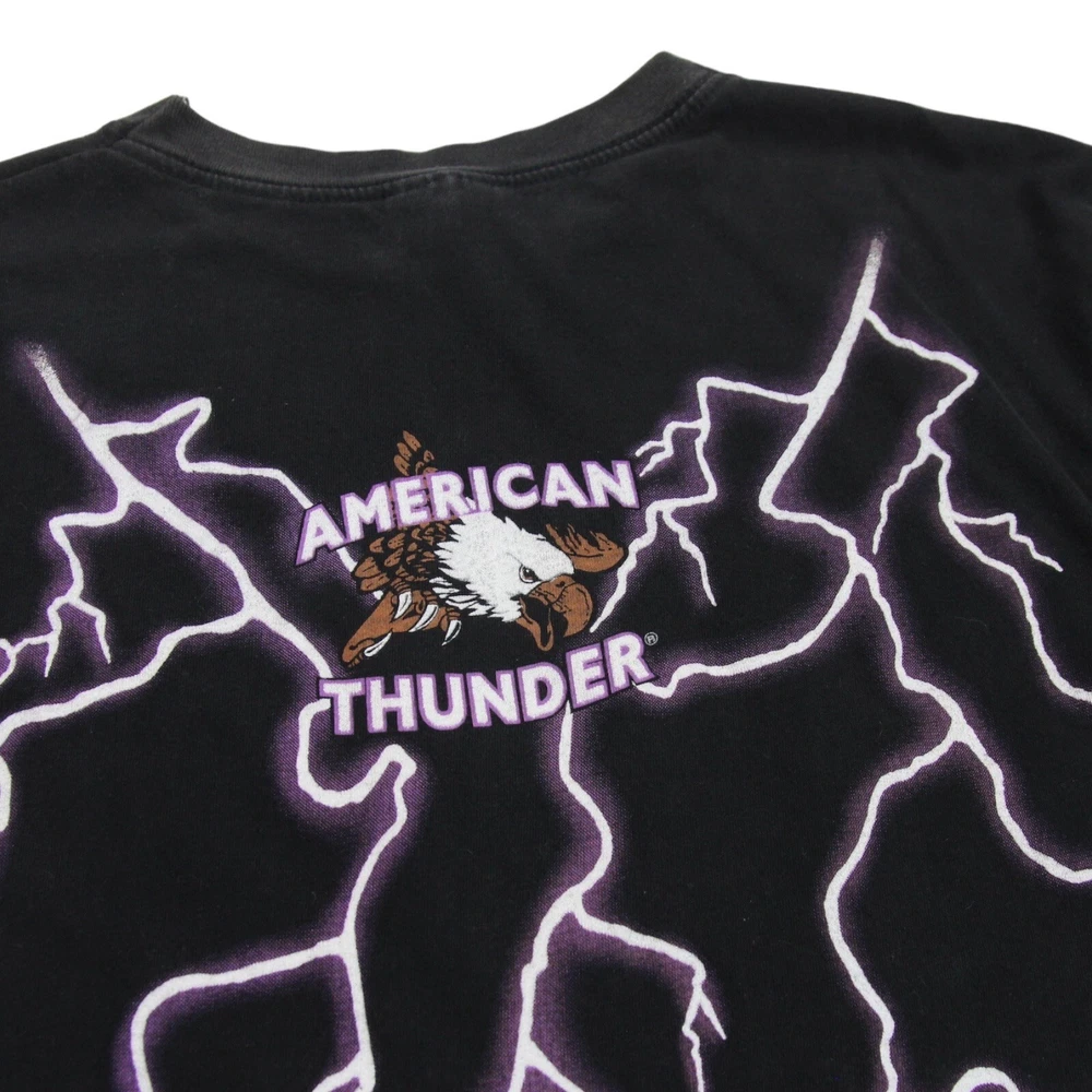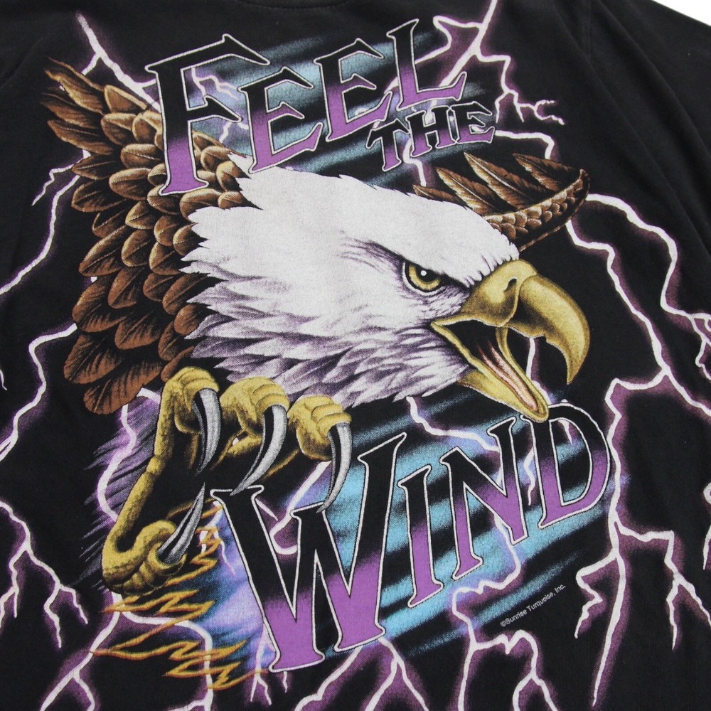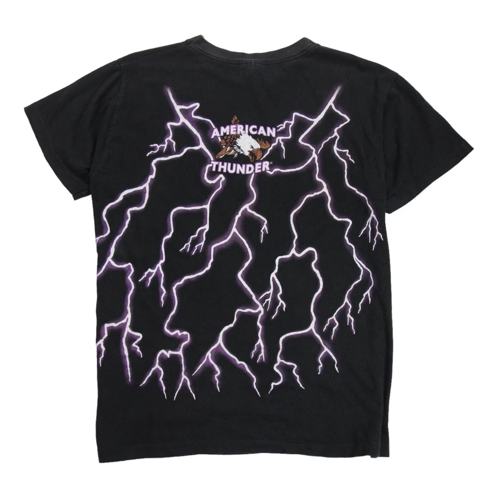 Tourchamp American Thunder Feel The Wind Vintage Tee Mens L Black Single Stitch Size : Mens Large Measurements: Armpit - Armpit = 21.5 inches Length (back, top of collar to hem) = 27 inches Shoulder - Shoulder = 19.5 inches Features: Premium lightweight cotton construction. Single stitch. Crew neck. Double-sided print. Colour : Black . Fabric : 100% Cotton. Condition : In good vintage condition. General signs of wear. Free UK postage.
