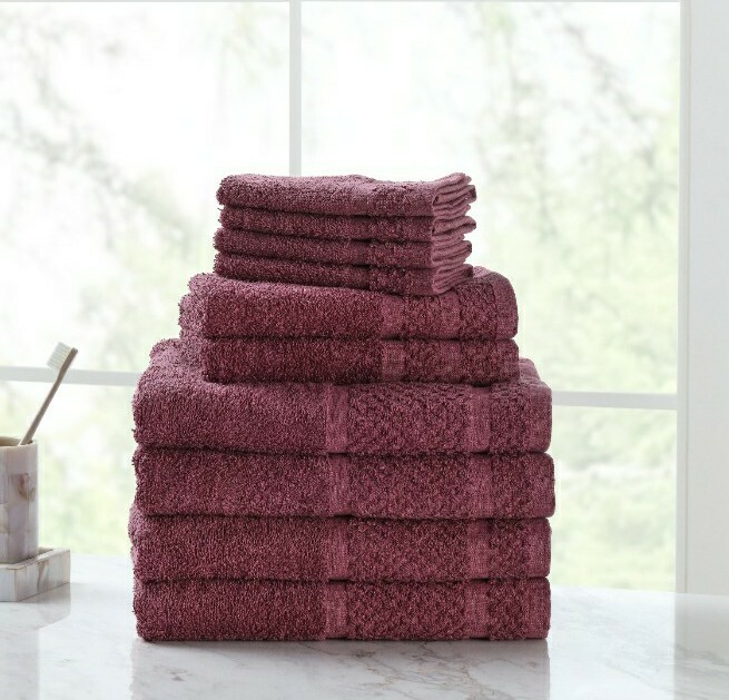 Mainstays Value 10-Piece Cotton Towel Set with Upgraded Softness & Durability, Raspberry...