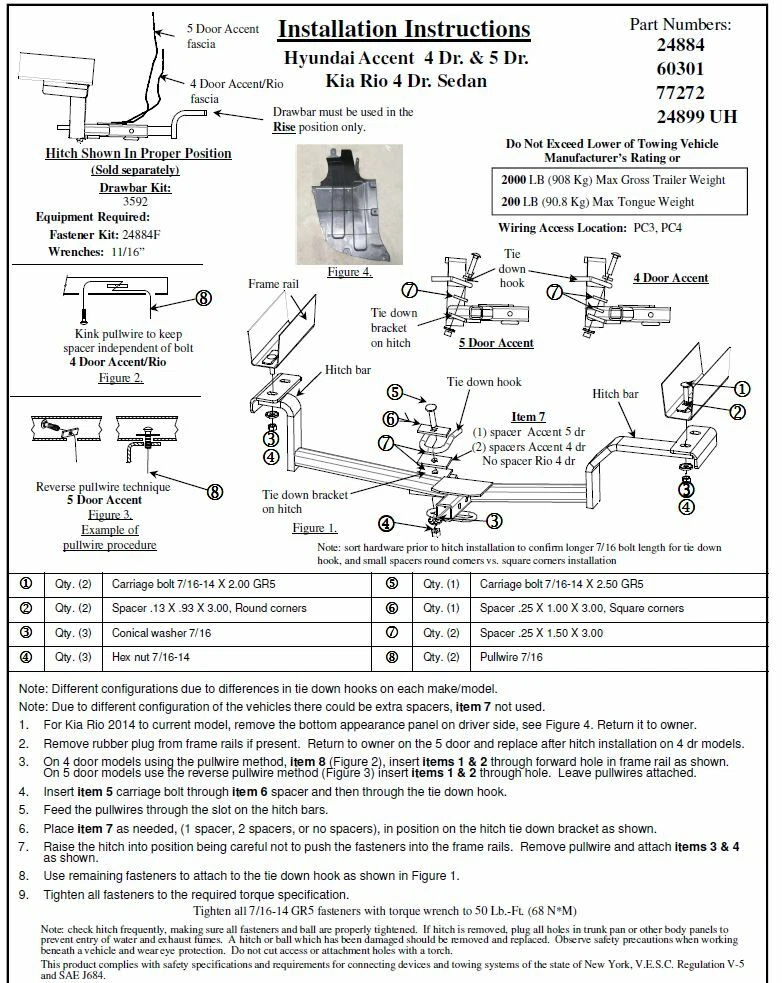REESE CLASS I HITCH BUNDLE W/ 1-7/8 BALL BUNDLE INCLUDES: CUSTOM FIT HITCH, WIRING KIT, DRAW-BAR & 1-7/8" BALL Trailer Tow Hitch For 2012-2017 Accent Complete Pkg w/ Wiring Draw & 1-7/8" Ball FREE SHIPPING 1-5 DAY SHIPPING 60 DAY RETURNS OVER 100,000 HITCHES SOLD ALL HITCHES COME BOXED, UNLIKE OUR COMPETITORS Includes Everything Pictured: Custom Fit Trailer Hitch Draw-Bar w/ Pin/Clip Wiring Harness (Requires Splicing) 1-7/8" Chrome Ball Installation Hardware Installation Instructions Fits The Following Vehicles 2012 - 2017 Hyundai, Accent, 5 Dr. Hatchback 2012 - 2017 Hyundai, Accent, 4 Dr. Sedan Trailer Hitch Specs: Part Number 248840 Brand Draw-Tite Finish Black Powdercoat Class 1 Receiver size opening 1-1/4" Max gross trailer weight 2,000 lbs Max GTW w/ weight distribution N/A Max Tongue Weight 200 lbs Warranty Lifetime Installation Instructions Wiring Kit Specs: Part Number 119148 Brand Tekonsha Warranty 1 Year Installation Instructions Hitch Ball Specs: Part Number 63820 Brand Draw-Tite Size 2" x 3/4" x 1-1/2" Towing Capacity 3,500 lbs. GTW Material Chrome Torque Torque to 160 ft. lbs Shank Diameter 3/4" Warranty Lifetime Partial list of fitment years: 12 13 14 15 16 17 2012 2013 2014 2015 2016 2017 RELATED PRODUCTS SOLD SEPARATELY: Click on images below to view other accessories to compliment your order Ball-Mount w/ 2" Drop 2" Ball Ball-Mount w/ 2" Drop 1-7/8" Ball Ball-Mount w/ 4" Drop 2" Ball Hitch Mounted 4-Flat Bracket Hitch Cover Complete 7-Way Adapter Brake Control Ready Security Lock See our other items We accept payment by any of the following methods: PayPal and All Major Credit Cards Payment Returns Shipping If you are not 100% satisfied with your purchase, you can return the product and get a full refund or exchange the product for another one, be it similar or not. You can return a product for up to 60 days from the date you purchased it. Any product you return must be in the same condition you received it and in the original packaging. We offer FREE shipping on all orders! Your order will be dispatched within 2 working days of receiving payment (Monday-Friday) and you should expect to receive it 2 to 4 days after dispatch (for orders sent UPS or FedEx Ground). In the very unlikely event that your item is lost or damaged during shipping, then WE are responsible and will issue either a full refund or replacement. High Quality 60 Day Returns Free Shipping Includes Everything Pictured: Custom Fit Trailer Hitch Draw-Bar w/ Pin/Clip Wiring Harness (Requires Splicing) 1-7/8"Chrome Ball Installation Hardware Installation Instructions Fits The Following Vehicles 2012 - 2017 Hyundai, Accent, 5 Dr. Hatchback 2012 - 2017 Hyundai, Accent, 4 Dr. Sedan Trailer Hitch Specs: Part Number 248840 Brand Draw-Tite Finish Black Powdercoat Class 1 Receiver size opening 1-1/4" Max gross trailer weight 2,000 lbs Max GTW w/ weight distribution N/A Max Tongue Weight 200 lbs Warranty Lifetime Installation Instructions Wiring Kit Specs: Part Number 119148 Brand Tekonsha Warranty 1 Year Installation Instructions Hitch Ball Specs: Part Number 63820 Brand Draw-Tite Size 2" x 3/4" x 1-1/2" Towing Capacity 3,500 lbs. GTW Material Chrome Torque Torque to 160 ft. lbs Shank Diameter 3/4" Warranty Lifetime Partial list of fitment years: 12 13 14 15 16 17 2012 2013 2014 2015 2016 2017 REESE CLASS I HITCH BUNDLE W/ 1-7/8 BALL Trailer Tow Hitch For 2012-2017 Accent Complete Pkg w/ Wiring Draw & 1-7/8" Ball BUNDLE INCLUDES: CUSTOM FIT HITCH, WIRING KIT, DRAW-BAR & 1-7/8" BALL 60 DAY RETURNS FREE SHIPPING OVER 100,000 HITCHES SOLD ALL HITCHES COME BOXED, UNLIKE OUR COMPETITORS Includes Everything Pictured: Custom Fit Trailer Hitch Draw-Bar w/ Pin/Clip Wiring Harness (Requires Splicing) 1-7/8" Chrome Ball Installation Hardware Installation Instructions Fits The Following Vehicles 2012 - 2017 Hyundai, Accent, 5 Dr. Hatchback 2012 - 2017 Hyundai, Accent, 4 Dr. Sedan Trailer Hitch Specs: Part Number 248840 Brand Draw-Tite Finish Black Powdercoat Class 1 Receiver size opening 1-1/4" Max gross trailer weight 2,000 lbs Max GTW w/ weight distribution N/A Max Tongue Weight 200 lbs Warranty Lifetime Installation Instructions Wiring Kit Specs: Part Number 119148 Brand Tekonsha Warranty 1 Year Installation Instructions Hitch Ball Specs: Part Number 63820 Brand Draw-Tite Size 2" x 3/4" x 1-1/2" Towing Capacity 3,500 lbs. GTW Material Chrome Torque Torque to 160 ft. lbs Shank Diameter 3/4" Warranty Lifetime Partial list of fitment years: 12 13 14 15 16 17 2012 2013 2014 2015 2016 2017 RELATED PRODUCTS SOLD SEPARATELY: Click on images below to view other accessories to compliment your order Ball-Mount w/ 2" Drop 2" Ball Ball-Mount w/ 2" Drop 1-7/8" Ball Ball-Mount w/ 4" Drop 2" Ball Hitch Cover Complete 7-Way Adapter Brake Control Ready Security Lock See our other items Hitch Mounted 4-Flat Bracket Payment We accept payment by any of the following methods: PayPal and All Major Credit Cards Shipping We offer FREE shipping on all orders! Your order will be dispatched within 2 working days of receiving payment (Monday-Friday) and you should expect to receive it 2 to 4 days after dispatch (for orders sent UPS or FedEx Ground). In the very unlikely event that your item is lost or damaged during shipping, then WE are responsible and will issue either a full refund or replacement. Returns If you are not 100% satisfied with your purchase, you can return the product and get a full refund or exchange the product for another one, be it similar or not. You can return a product for up to 60 days from the date you purchased it. Any product you return must be in the same condition you received it and in the original packaging. Free Shipping 60 Day Returns High Quality Includes Everything Pictured: Custom Fit Trailer Hitch Draw-Bar w/ Pin/Clip Wiring Harness (Requires Splicing) 1-7/8" Chrome Ball Installation Hardware Installation Instructions Fits The Following Vehicles 2012 - 2017 Hyundai, Accent, 5 Dr. Hatchback 2012 - 2017 Hyundai, Accent