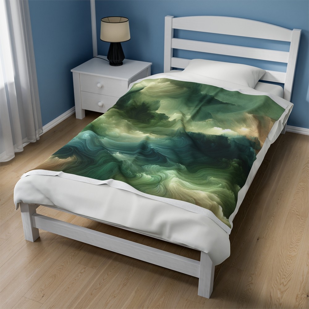 50" × 60" Width, in 50.00 Height, in 60.00 Introducing a luxurious Velveteen Plush Blanket, perfect for creating a serene atmosphere in any room. This soft, inviting blanket will wrap you in cozy comfort, making it an essential for chilly evenings spent curled up with your favorite book or a movie. It's ideal for anyone who appreciates warmth and style—whether you're decorating your living room, bedroom, or gifting it to a loved one. With vibrant colors and stunning designs, this blanket adds a touch of elegance to your home decor. It's a wonderful choice for occasions like housewarmings, birthdays, or even as a comforting holiday gift. Embrace the tranquility of this blanket during winter celebrations, cozy family nights, or simply as a daily indulgence. You'll love how it enhances moments of relaxation and togetherness, making it a treasured addition to your life. Product features - Durable double needle stitching for long-lasting use. - Quick-drying polyester fabric retains its form. - Available in 100% polyester or a blend for added stretch. - High-quality print on one side for stunning detail. - Medium heavy-weight fabric that's extra soft to touch. Care instructions - Do not dryclean - Do not iron - Tumble dry: low heat - Do not bleach - Machine wash: cold (max 30C or 90F), *hand wash will extend the quality of the product