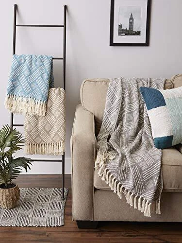 This throw is the perfect blend of style and comfort! The soft cotton fabric feels cozy, and the basketweave pattern adds a chic, textured look to any space. At 50x60", it’s just the right size for draping over a couch or bed. The fringe edges stay neat, even after washing. Quick shipping and great quality—definitely worth it!