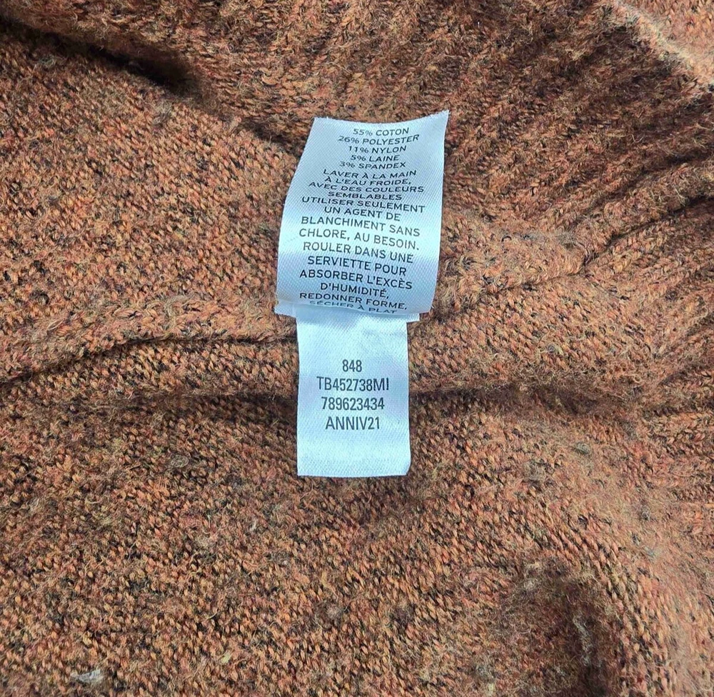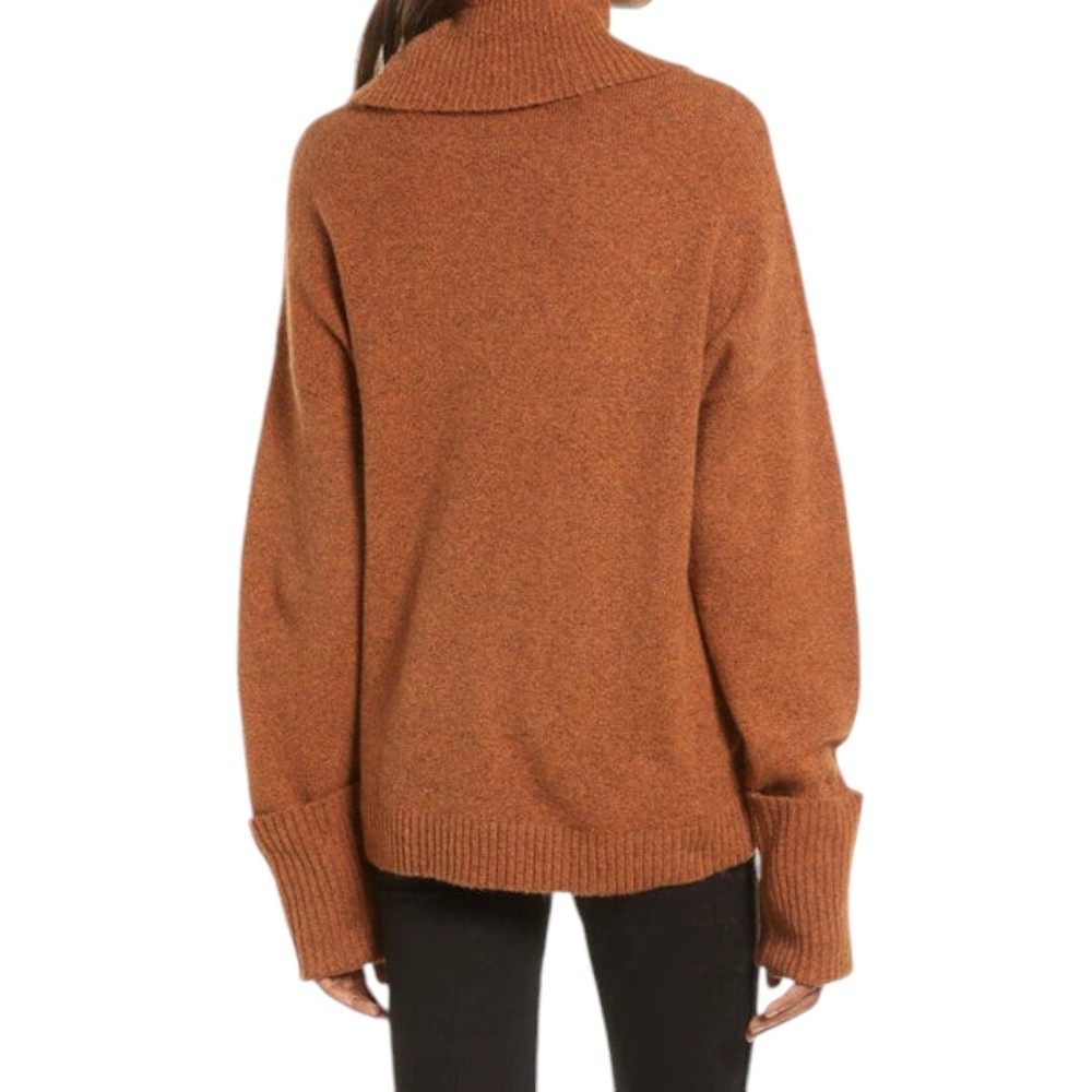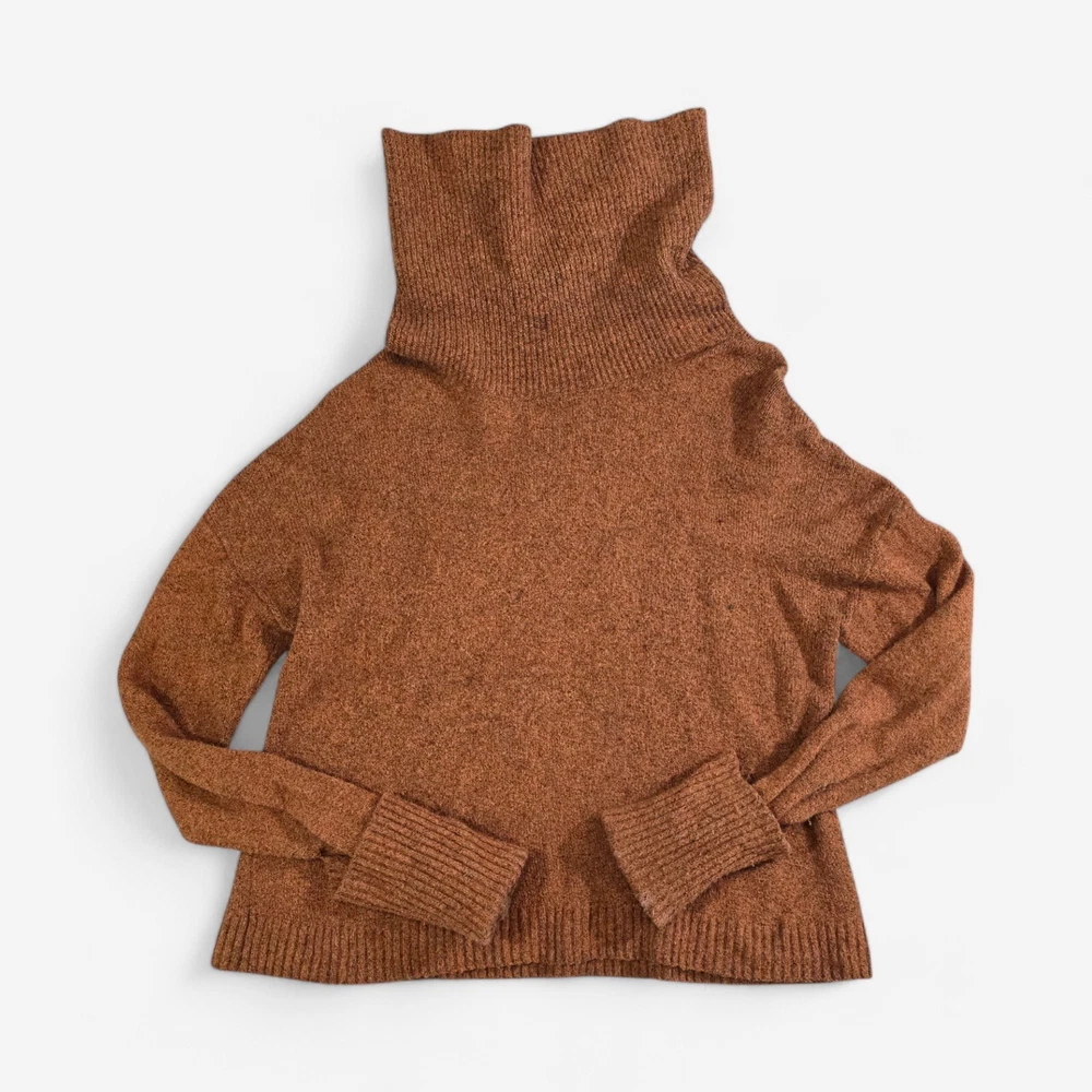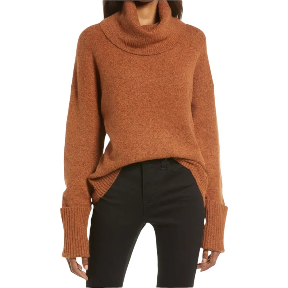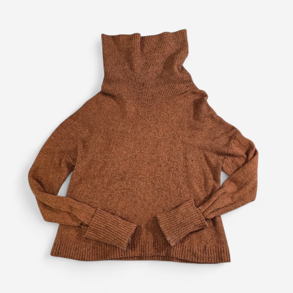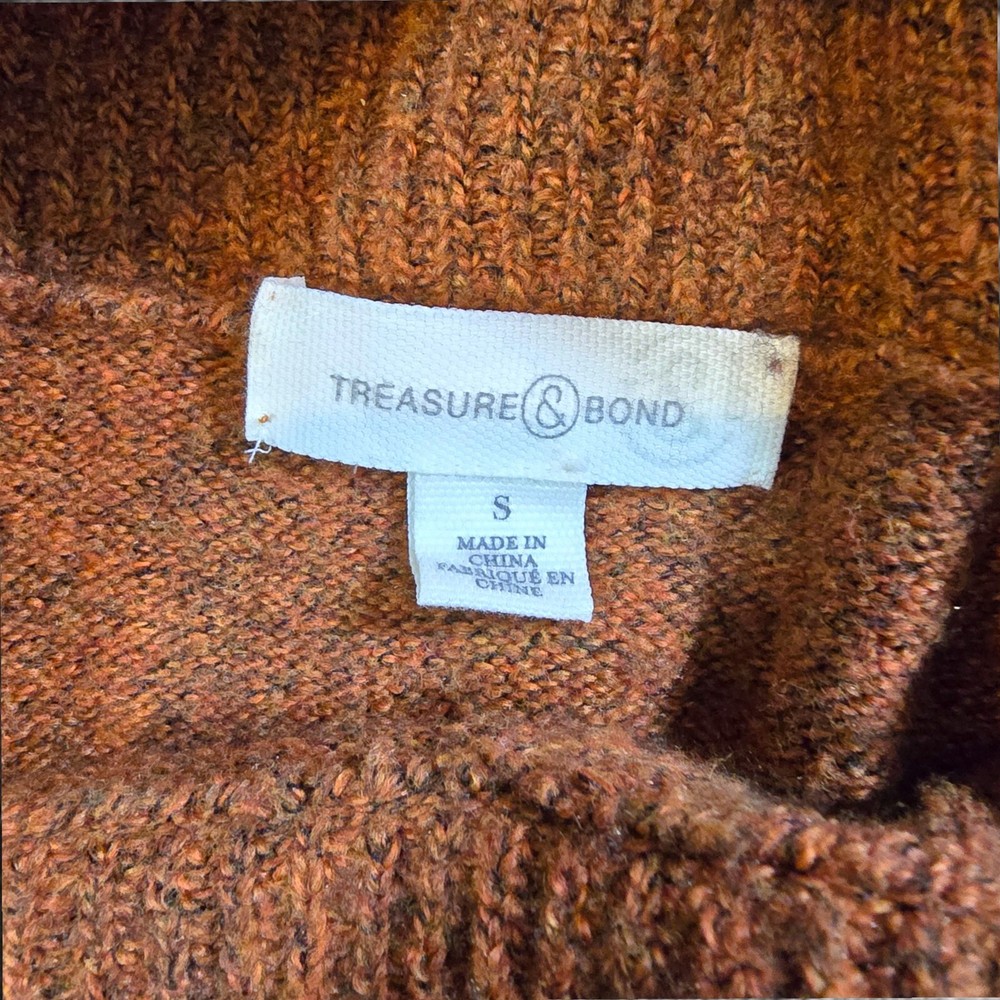 Stay warm and stylish with this Treasure & Bond Oversized Turtleneck Pullover Sweater. Crafted from a premium blend of cotton, polyester, nylon, wool, and spandex, this cozy burnt orange sweater is soft, durable, and perfect for chilly days. The slouchy turtleneck and ribbed cuffs add both warmth and style, making it a versatile wardrobe staple. Brand : Treasure & Bond Size : Small Material : 55% Cotton, 26% Polyester, 11% Nylon, 5% Wool, 3% Spandex Color : Burnt Orange Fit : Oversized Features : Long sleeves with ribbed cuffs Ribbed hem for added structure Slouchy turtleneck for extra warmth Ribbed texture throughout for a stylish look Pullover design Condition : New Without Tags (NWOT), no flaws or defects. Perfect for layering on cold days or wearing alone for a chic, cozy look. Pair it with jeans, leggings, or skirts for effortless style. Measurements : Pit to Pit: 22 inches Length: 25 inches Seller Info : Pet and smoke-free home.