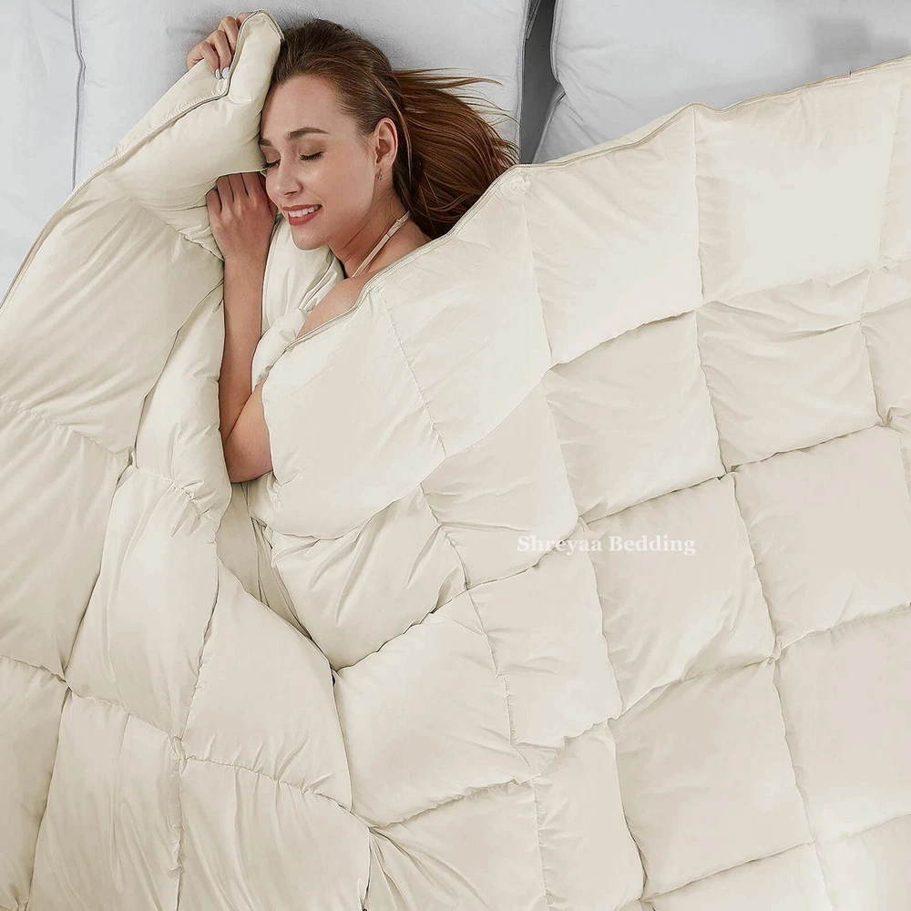 Ultra Soft Lightweight Down Alternative Comforter About the Product COMFORTER Package Includes: 1 Piece Comforter Material: 100% Egyptian Cotton Color: As Per Listing Images Size: Please refer to Below: Olympic Queen Size Comforter Measurements Olympic Queen Comforter = 87x95 Inches(221x241 cm) 100% Egyptian Cotton Shell "Breathable & Durable". Down Alternative Comforter GSM Polyester Sheet Fill. Egyptian Cotton Italian Finish Super Soft Single Ply Fabric. Generous Baffle Box Stitching For Optimum Loft. Hypoallergenic - Perfect For Allergy Sufferers. Easy Care: Machine Wash Cold, Tumble Dry Low, Do Not Bleach Or Iron. Designed For Healthy Living And Comfortable Life. About Us ARE YOU SLEEPING WELL? Well Of Course, You Will Say Yes - But What We are Doing at Shreyaa Bedding is, We are continuously working to make your sleep more comfortable and luxurious by offering Quality Products at Affordable Prices. If you love the luxury, softness & hotel bedding, then certainly you will gonna love it. EASY TO CARE, OPTIMUM QUALITY BEDDING ITEMS - Made using all naturals materials, Can be machine washed and get softer over time. Fabric is lab tested to make sure - No Pilling, No Linting, No Balls After Wash, Color Fastness and finally sewed then packed for shipping. To improve durability, warm wash & light dry. Use a short dry cycle. STRENGTH - Our Products are made from 100% Egyptian Cotton which gives strength to every thoughtful attention Like - No Pilling, Low Shrinking, Crisp and Coolness for the quality of sleep you will get. 100% Egyptian Cotton Superior Bedding Items that are truly worthy of a classy elegant suite and are found in world class hotels. As a Direct Manufacturer, we can provide the best quality Egyptian Cotton products at half of your local retail price. Experience the luxury of Classic Egyptian Cotton and you will become a believer that nothing feels better than high quality Egyptian Cotton! MORE - We are a Manufacturer. All the products we are selling are in 100% Brand New Condition. We deal in all kinds of bedding. Our Product Range Includes of Bed Sheets, Flat Sheets, Fitted Sheets, Pillow Cases, Duvets, Quilts, Duvet Covers, Slipping Sofa Sets, Comforters, Reversible Comforters , Dual Tone Comforters , Velvet Comforters , Satin Comforters , Pinch Plated Comforters , Bedspreads, Mattress Pads, Blankets & Other Bedding Sets. We have Country Specific Sizes available with us. Shipping Be assured, we will dispatch the product as per our promised handling time and with express service providers like FedEx, DHL. All orders will have tracking information, once the package is shipped. We do have international shipping available at different costs. Returns If you aren't satisfied with your purchase for any reason, please ship it back to us within 30 days of receiving the item. We don't allow returned items that have been used or washed. Items returned must be in their original condition and packaging in order to receive a refund. Feedback As an eBay seller we always look for your positive feedback. It gives us joy to be able to deliver to your expectations. If you are not satisfied with our item, let us know before you negatively rate us and we are sure to work something out. We will also rate positive to our customers who make easy transactions with us. Import Duty & Taxes We are unable to anticipate import duties or taxes for buyer country in advance. Our selling price does not include them. So, it is Buyer’s Responsibility . Contact Us If you have any suggestions or queries related to our Product or Services, we are more than happy to assist you. You can reach to us by clicking on Contact Seller Button. Thank You For Shopping With Us