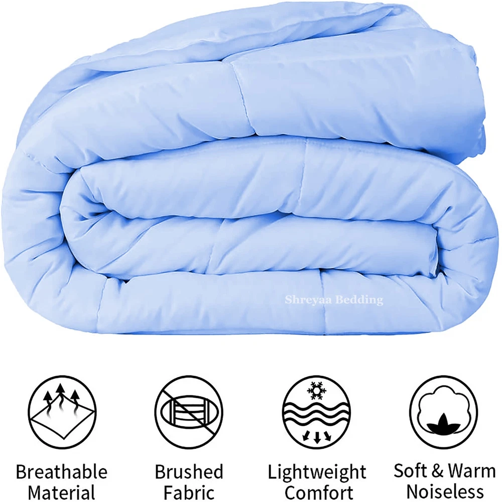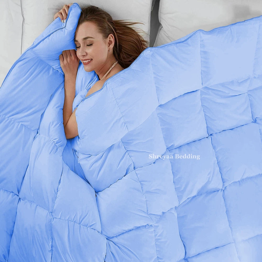 Ultra Soft Lightweight Down Alternative Comforter About the Product COMFORTER Package Includes: 1 Piece Comforter Material: 100% Egyptian Cotton Color: As Per Listing Images Size: Please refer to Below: Olympic Queen Size Comforter Measurements Olympic Queen Comforter = 87x95 Inches(221x241 cm) 100% Egyptian Cotton Shell "Breathable & Durable". Down Alternative Comforter GSM Polyester Sheet Fill. Egyptian Cotton Italian Finish Super Soft Single Ply Fabric. Generous Baffle Box Stitching For Optimum Loft. Hypoallergenic - Perfect For Allergy Sufferers. Easy Care: Machine Wash Cold, Tumble Dry Low, Do Not Bleach Or Iron. Designed For Healthy Living And Comfortable Life. About Us ARE YOU SLEEPING WELL? Well Of Course, You Will Say Yes - But What We are Doing at Shreyaa Bedding is, We are continuously working to make your sleep more comfortable and luxurious by offering Quality Products at Affordable Prices. If you love the luxury, softness & hotel bedding, then certainly you will gonna love it. EASY TO CARE, OPTIMUM QUALITY BEDDING ITEMS - Made using all naturals materials, Can be machine washed and get softer over time. Fabric is lab tested to make sure - No Pilling, No Linting, No Balls After Wash, Color Fastness and finally sewed then packed for shipping. To improve durability, warm wash & light dry. Use a short dry cycle. STRENGTH - Our Products are made from 100% Egyptian Cotton which gives strength to every thoughtful attention Like - No Pilling, Low Shrinking, Crisp and Coolness for the quality of sleep you will get. 100% Egyptian Cotton Superior Bedding Items that are truly worthy of a classy elegant suite and are found in world class hotels. As a Direct Manufacturer, we can provide the best quality Egyptian Cotton products at half of your local retail price. Experience the luxury of Classic Egyptian Cotton and you will become a believer that nothing feels better than high quality Egyptian Cotton! MORE - We are a Manufacturer. All the products we are selling are in 100% Brand New Condition. We deal in all kinds of bedding. Our Product Range Includes of Bed Sheets, Flat Sheets, Fitted Sheets, Pillow Cases, Duvets, Quilts, Duvet Covers, Slipping Sofa Sets, Comforters, Reversible Comforters , Dual Tone Comforters , Velvet Comforters , Satin Comforters , Pinch Plated Comforters , Bedspreads, Mattress Pads, Blankets & Other Bedding Sets. We have Country Specific Sizes available with us. Shipping Be assured, we will dispatch the product as per our promised handling time and with express service providers like FedEx, DHL. All orders will have tracking information, once the package is shipped. We do have international shipping available at different costs. Returns If you aren't satisfied with your purchase for any reason, please ship it back to us within 30 days of receiving the item. We don't allow returned items that have been used or washed. Items returned must be in their original condition and packaging in order to receive a refund. Feedback As an eBay seller we always look for your positive feedback. It gives us joy to be able to deliver to your expectations. If you are not satisfied with our item, let us know before you negatively rate us and we are sure to work something out. We will also rate positive to our customers who make easy transactions with us. Import Duty & Taxes We are unable to anticipate import duties or taxes for buyer country in advance. Our selling price does not include them. So, it is Buyer’s Responsibility . Contact Us If you have any suggestions or queries related to our Product or Services, we are more than happy to assist you. You can reach to us by clicking on Contact Seller Button. Thank You For Shopping With Us