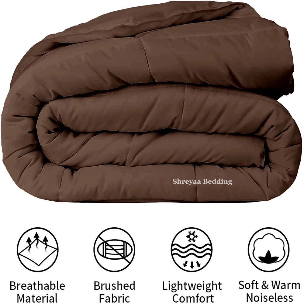 Ultra Soft Goose Down Alternative Comforter - Twin Size Brown Solid Cozy Bedding