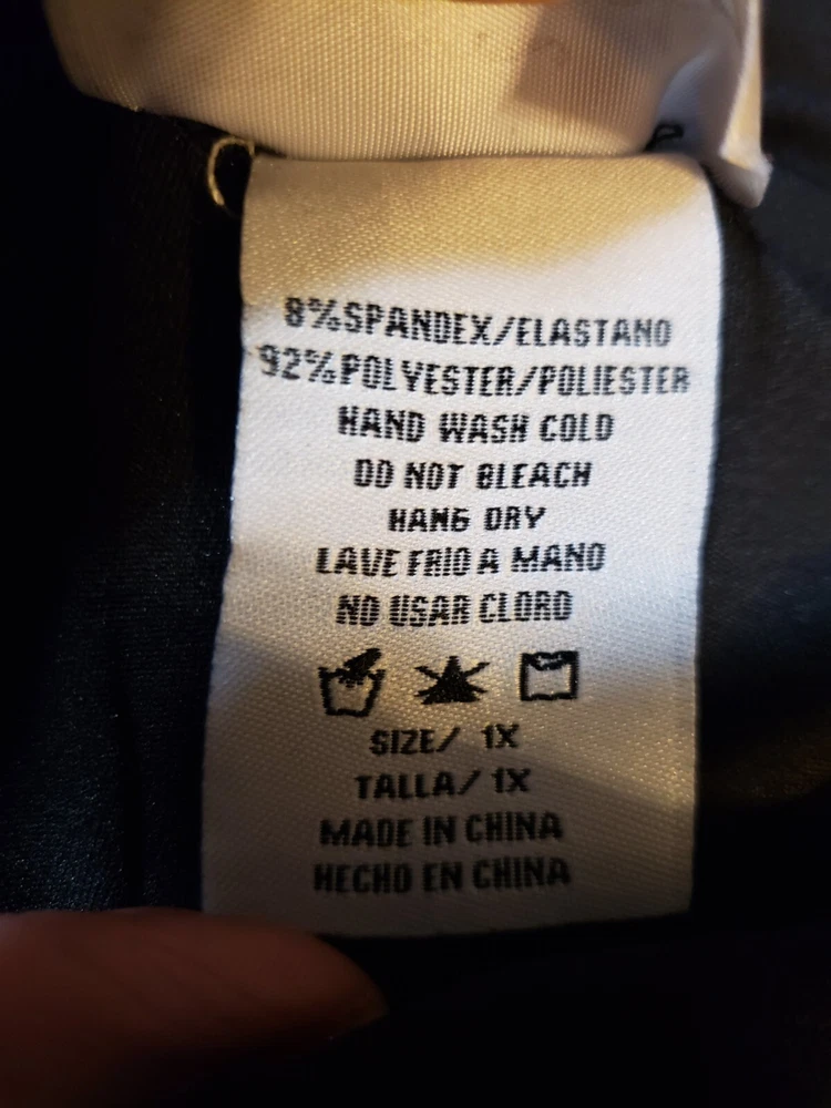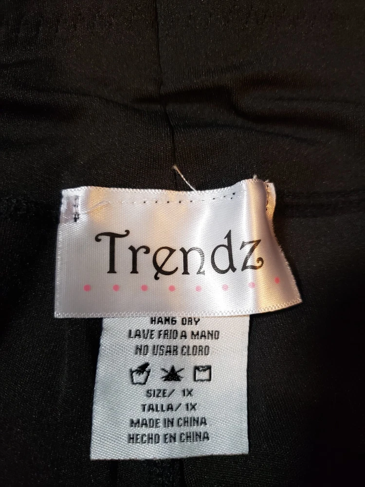 This is Trendz Womens Activewear Leggings 1X Black Stretch Flat Front High Rise Pull On. 92% Polyester, and 8% Spandex. Hand Wash. See photos for measurements and condition Thank you for choosing Lily Bugs Bargains 812.1