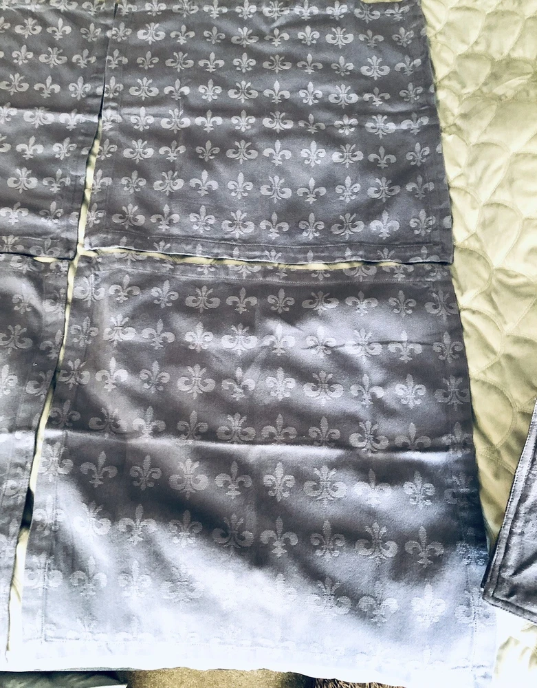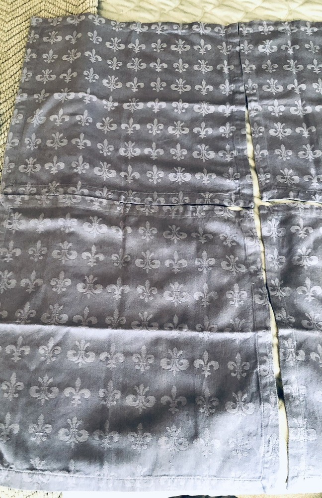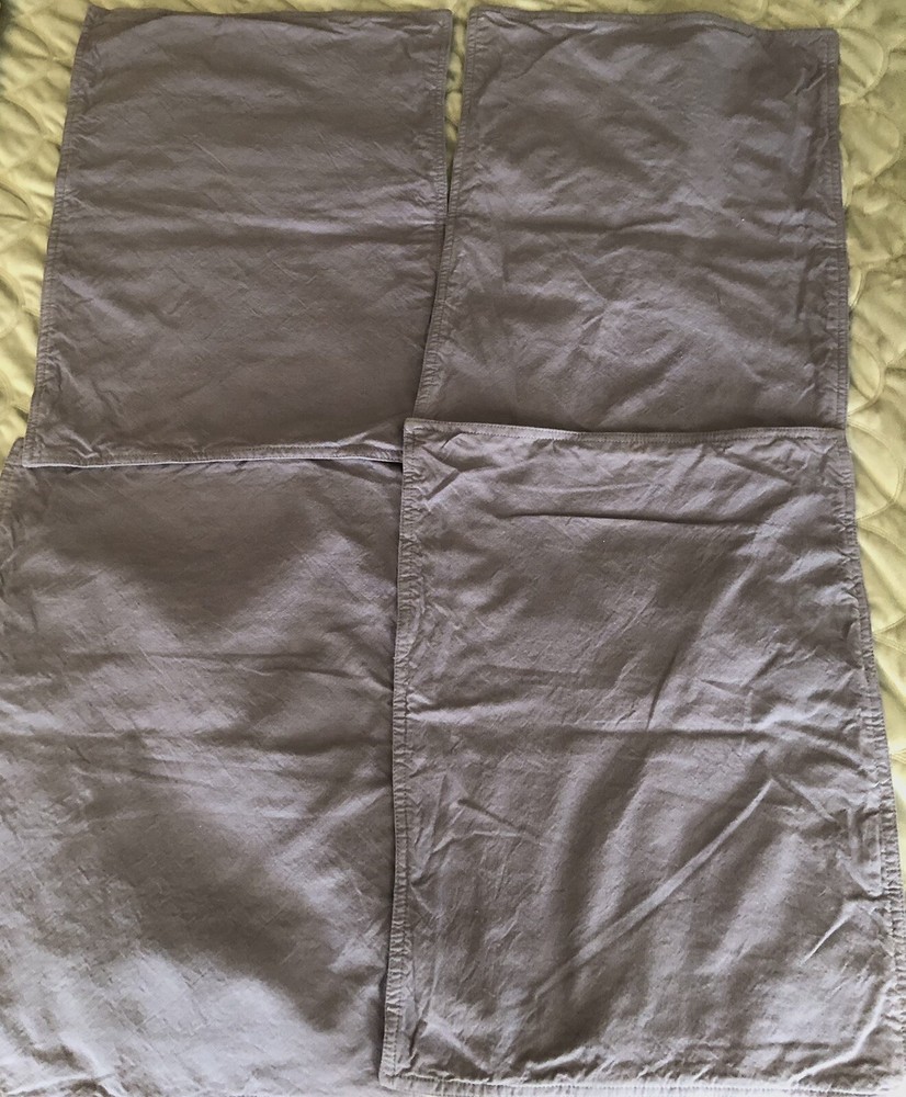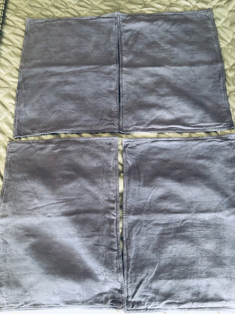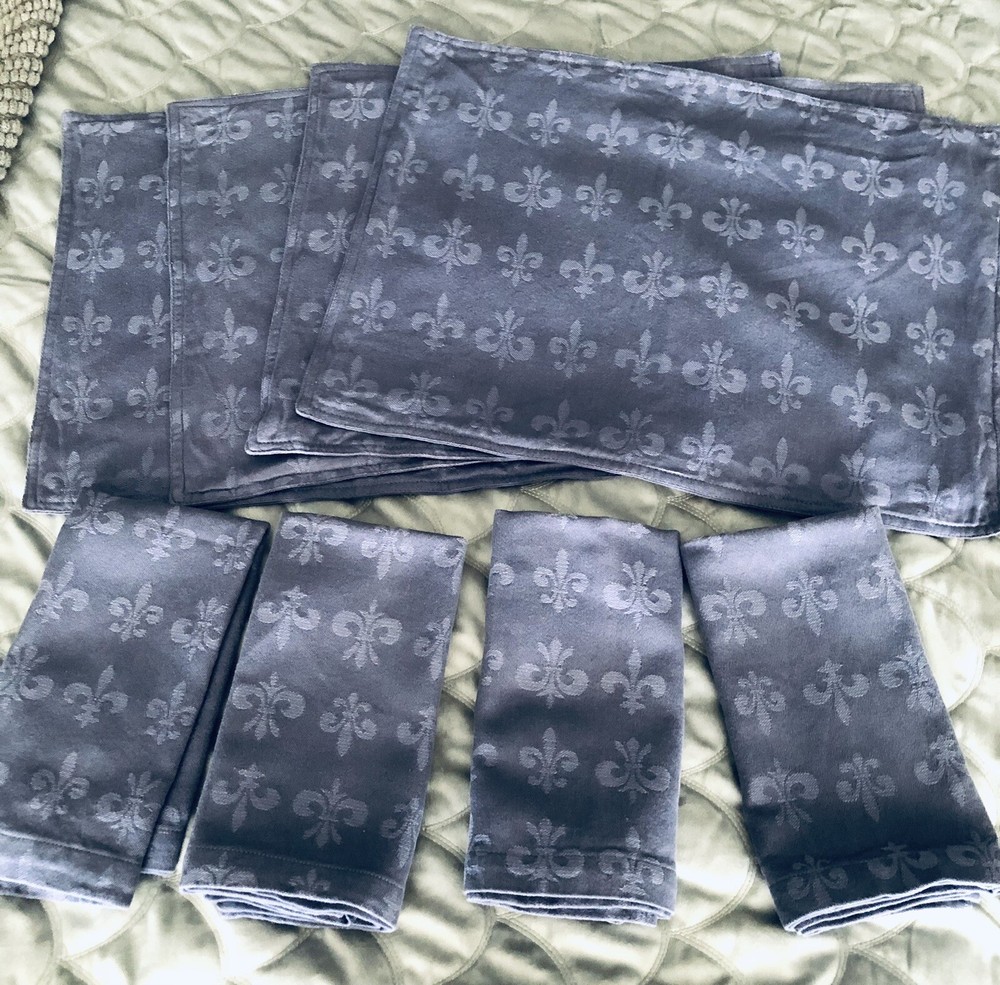 Trillium Design Imports Set of 4 Lavender Placemats & Napkins 100% Cotton. First photo is most accurate in terms of color, a smoky purple. Measurements in photos. Two placemats shown in last two photos have what appears to be a small stain.