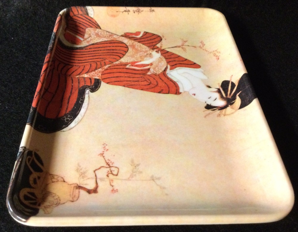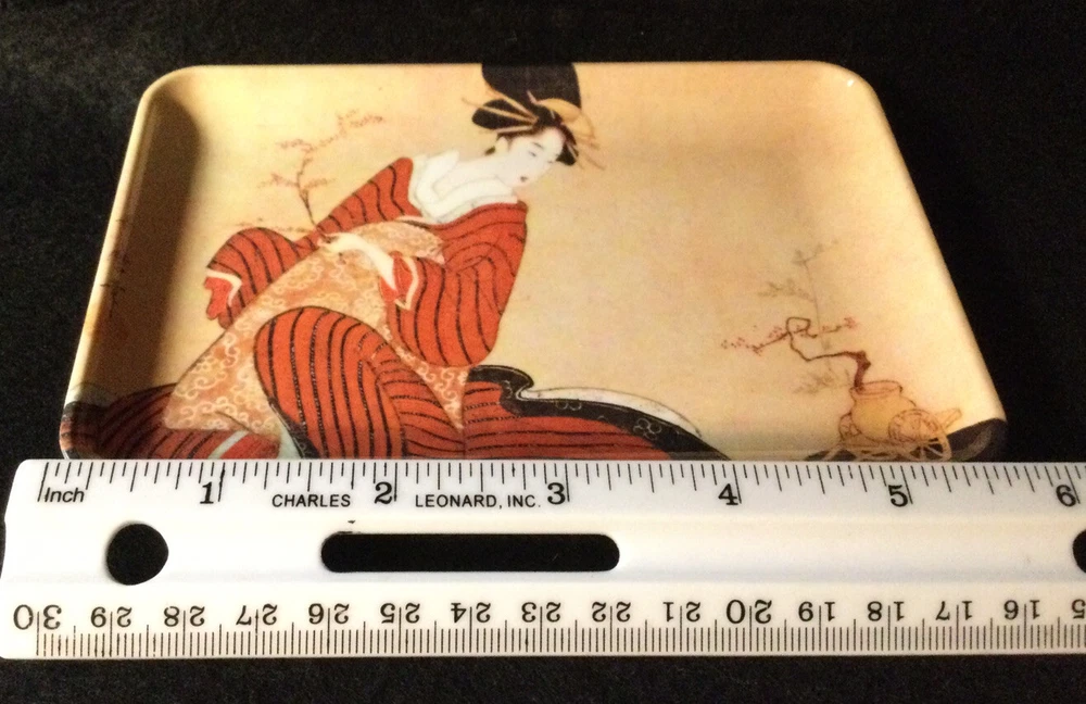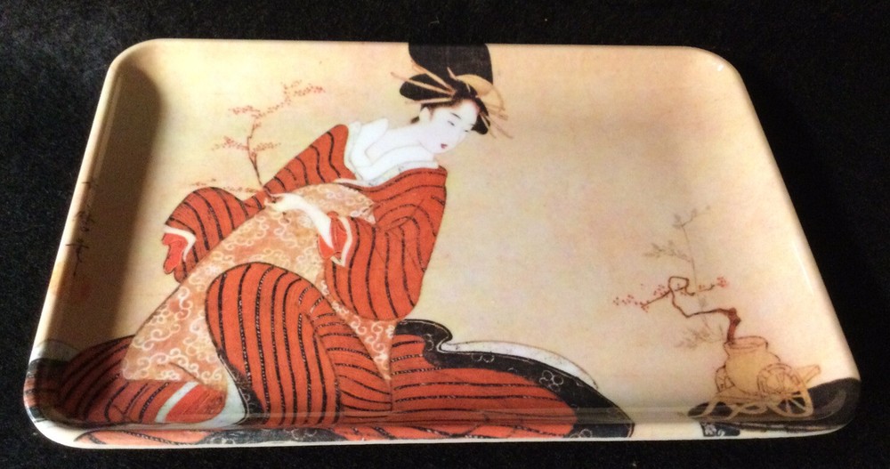 Lovely Geisha Scene Trinket Tip Tray....made in Italy..Melamine...approx. 4" x 6"...no chips scratches or fading....please view all photos...will be shipped with care...