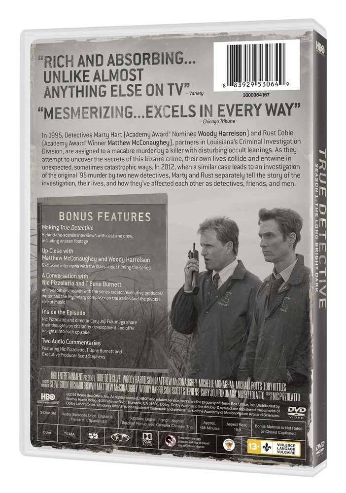 True Detective The Complete First Season DVD Matthew McConaughey NEW Product | GRUV Home DVD Blu-ray 4K Gruv > True Detective The Complete First Season DVD Matthew McConaughey NEW [Back] True Detective The Complete First Season DVD Matthew McConaughey NEW "In 2012, Louisiana State Police Detectives Rust Cohle and Martin Hart are brought in to revisit a homicide case they worked in 1995. As the inquiry unfolds in present day through separate interrogations, the two former detectives narrate the story of their investigation, reopening unhealed wounds, and drawing into question their supposed solving of a bizarre ritualistic murder in 1995. The timelines braid and converge in 2012 as each man is pulled back into a world they believed they'd left behind. In learning about each other and their killer, it becomes clear that darkness lives on both sides of the law. Written and created by Nic Pizzolatto ('The Killing') and directed by Cary Fukunaga ('Sin Nombre,' 'Jane Eyre'), 'True Detective' stars Woody Harrelson as Martin Hart and Matthew McConaughey as Rust Cohle. The series also stars Michelle Monaghan (+ÆMission: Impossible III') as Maggie, Hart's wife; Kevin Dunn ('Veep') as Major Quesada, the supervising officer in 1995; and Tory Kittles ('Sons of Anarchy') and Michael Potts ('The Wire') as Dets. Papania and Gilbough, the investigators now probing Hart and Cohle for answers." Product True Detective: The Complete First Season (Box Set) [DVD] Format: DVD Catalogue No: 1000590713 Studio: HBO Certification: NR Release Date: 01/02/18 Region: Region 1 Duration: 480 minutes Discs: 3 Color: Color Extras: Language(s): English|Interactive Menu Shipping *** FREE SHIPPING ON ALL ORDERS *** All items ordered before 11:00am EST will be shipped on the same day. Items ordered after 11:00am EST will be shipped on the following day. Orders placed after 11:00am EST on Friday will be shipped on the following Monday. If you have any questions regarding your order, please contact us How will I know when my order has been shipped? As soon as your order is sent from our warehouse you will be sent an email to confirm that it's on its way. Once my order has been shipped when will I receive it? Depending on your method of shipping, your timing will vary: Economy Shipping - you will receive your order in 3-10 days Expedited Shipping - you will receive your order in 1-5 days Next Business Day - you will receive your order in 1 Business day. This service is only available on orders placed Monday through Thursday The timeliness of service to destinations outside the contiguous U.S. may be affected by the limited availability of transportation. Due to the variability of transportation, Package Services and USPS Mail packages may take up to two to five weeks to reach Hawaii, Alaska, Puerto Rico and any U.S. Territories. This includes ZIP Codes with prefixes of 967 and 969 and those with the following prefixes: 995, 996, 997, 998, 999, 968, 006, 007, 008, and 009 Do you charge for shipping? *** FREE SHIPPING ON ALL ORDERS *** Economy Shipping - USPS Media Mail - FREE - 3 to 10 business days Expedited Shipping - FedEx Ground - $5.99 - 1 to 5 business days Next Business Day - FedEx Overnight - $14.99 - 1 business day PLEASE NOTE THAT ORDERS PLACED USING FEDEX CANNOT BE DELIVERED TO PO BOXES What do I do if I have not received my order? If your order does not arrive within 14 days please contact us so that we can investigate with the delivery company. One of the items is missing from my order. What do I do? Sometimes items that are purchased on the same order may arrive to you on different days. We will send you an email to let you know when each item is on its way. What happens if I am not at home to accept my delivery? Most of our products do not require you to be at home to be delivered. In the event that you have ordered products which will not fit in your mailbox, and you are not home to accept the delivery, then the postal service will follow their usual procedure. This usually means a card is left to notify you of an attempted delivery and the item will be held at your local sorting office. For items sent via FedEx, a card should also be left to allow you to arrange a redelivery or collection. Which countries do you deliver to? We deliver to the United States and US territories. Do you deliver on Public Holidays? Holidays are not considered working days, so we don't include these in our estimated delivery times. In this instance you should expect delivery on the next working day following the Holiday. Returns Here at GRUV Entertainment we want you to be 100% happy with your purchase, and we'll do everything we can to make sure you are. If you would like to return a product to us, please contact us. How do I return an item? To arrange a return please contact us and we will be more than happy to arrange this for you. All you need to tell us is which items you wish to return and the reason why. We will then issue you a unique Returns Authorization (RA) number and the return instructions. I have received my item, but I no longer want to keep it? If you are unhappy with your purchase, please contact us within 30 days of receiving the item for a full refund - please note that DVDs, Blu-rays & 4K Ultra HD that have been opened or have had their shrink-wrap removed are not eligible for return. The cost of shipping to return a product you no longer require will be paid for by the person returning the product and will require a Returns Authorization (RA) number. The RA number will be given to you by our customer services team. I have received my item but it's damaged / faulty. What should I do? If your item arrived damaged or is faulty, we will make this right as soon as possible, either by sending a replacement item to you or refunding your account. If we ask for the item to be returned to us, then GRUV Entertainment will pay for the cost of the return via a pre-paid label. In the unlikely event that your order is received d
