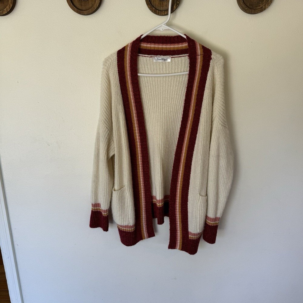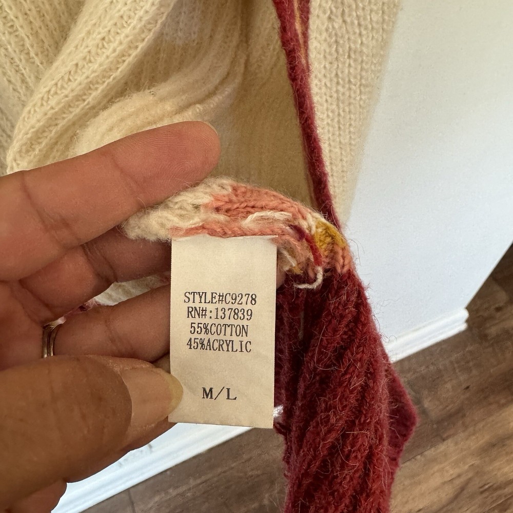 This colorful cardigan sweater from True Blood Collection is the perfect addition to any wardrobe. With its cozy design and open front, it's perfect for layering over any outfit. The cotton blend material is soft and comfortable, making it ideal for regular wear. The sweater features long sleeves and a multicolor design that's sure to catch the eye. It's perfect for women of all sizes, with a regular fit and size L available. Whether you're looking to add some color to your wardrobe or simply want a comfortable and stylish sweater, this True Blood Collection cardigan is the perfect choice. Length measures 28 inches. Bust measures 25 inches.