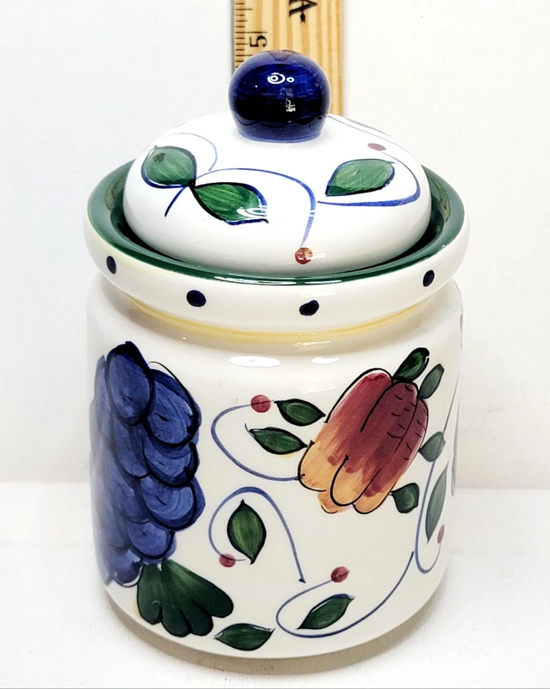 Tuscany Fruits Ceramic Canister 6" Jar Lid With Seal Italian Design Jay Imports We are happy to combine shipping on orders placed at the same time. EXCEPTION-International Orders are not eligible for combined shipping. Bundle/Shipping refunds are processed after order is packed, weighed and labeled for shipping. We use manufacturer size specifications in our listings. Please make use of our trusty wooden ruler (in the background of most listing photos) for size/scale comparisons. This ruler does not come with your order. Condition is "Excellent Vintage Condition-SEE PHOTOS-No Chips or Cracks" from a pet / smoke-free facility. We ship exclusively USPS Ground Advantage daily (except Sunday and Federal Holidays) but cannot guarantee specific delivery dates. We do use recycled packaging materials when possible. If you do not receive mail at your address, please do not order from us. Your package label is created directly from your eBay profile information. Please ensure that this is correct before buying. We cannot alter an address on a completed transaction, as it violates our agreement with eBay WARNING: We are not responsible for late, undeliverable or redirected mail. We do not ship to PO Boxes and are not responsible for undeliverable address issues. USPS utilizes GPS tracking on their scanners to indicate specifically where packages are delivered. All sales are final. No cancellations (we ship too quickly) or returns due to hygienic concerns. We want you to be happy with our service and ask that you reach out to us if you encounter an issue. We utilize eBay's automatic feedback tool. Positive feedback is delightful (and reciprocated) but we will not trouble a buyer for feedback . Please allow yourself time for your shipment to arrive. We cannot guarantee delivery dates. Any estimated delivery date listed on eBay, is eBay's best guess, and not always an accurate estimated time of arrival. Please check your tracking number on the USPS website for the most current shipping updates.