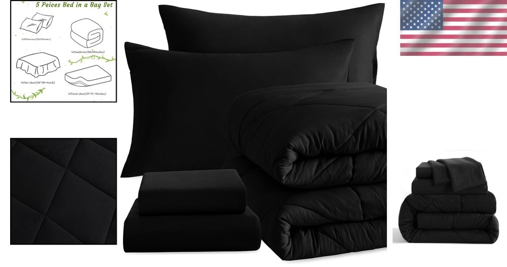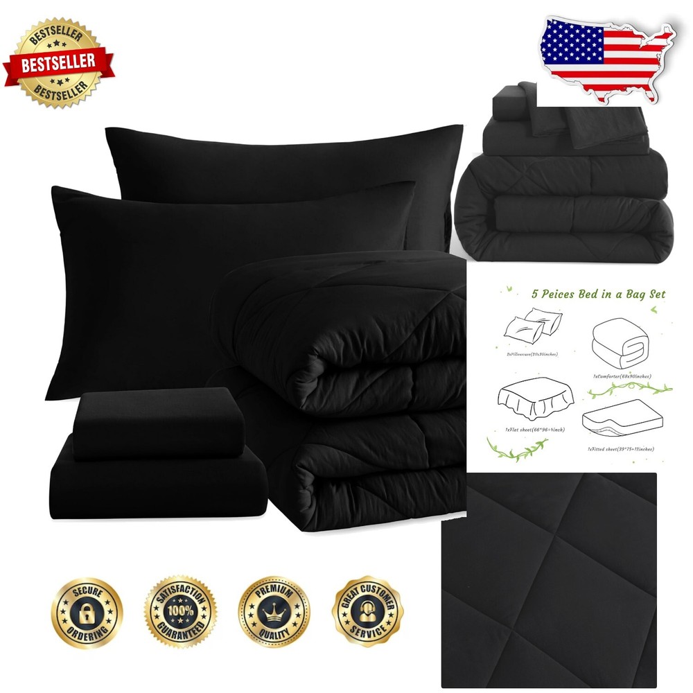 Twin Bed in a Bag - Soft Microfiber Comforter Set with Machine Washable Sheets ‹ › ‹ › ‹ › ‹ › ‹ › ‹ › ‹ › ‹ › ‹ › ‹ › ‹ › Twin Bed in a Bag – Soft Microfiber Comforter Set Transform your bedroom into a luxurious retreat with our Twin Bed in a Bag, featuring a super soft microfiber comforter set combined with machine washable sheets. This exquisite bedding ensemble is designed for those who value comfort, style, and practicality. Key Features: Premium Microfiber Fabric: Crafted from soft microfiber that offers long-lasting strength, and natural resistance to shrinking and wrinkles. Comprehensive Set: Includes 1 Quilt (68x90 inches), 1 Fitted Sheet (39x75+12 inches), 1 Flat Sheet (66x96 inches), and 2 Pillowcases (20x30 inches); note: pillows are not included. Gift-Ready: The perfect gift for family and friends, eliminating the hassle of matching bedding with a variety of color options that cater to every personal preference. Machine Washable: Easy care instructions – machine wash cold, gentle cycle; tumble dry at low temperature; cool iron if needed. Do not bleach. All-Season Comfort: Designed for year-round use, this down alternative comforter provides cozy warmth without overheating, ensuring comfort through both chilly winters and mild summers. Embrace Elegance and Comfort Indulge in the plush softness of our Twin Bed in a Bag set that promises to enhance your sleep experience. The elegant design is not only aesthetically pleasing but also functional, providing you with the ultimate comfort that lasts through every season. Delight yourself or your loved ones with this luxurious, yet affordable bedding solution. Order your Twin Bed in a Bag today and transform your sleep space into a serene escape where dreams come to life! Shipping Free & Fast Shipping - We offer free shipping to most of the USA with a normal delivery time of 3-7 days. However, due to the current situation, additional delivery time (up to 3 weeks) may be required for some items. Alternative Carriers - We may use alternative carriers (e.g. USPS, FedEx, UPS, etc.) to ensure your package arrives safely and on time. Due to the use of multiple carriers, we are unable to provide a tracking number automatically. Handling Time - Orders are processed and shipped within 1-2 business days of receiving cleared payment. Shipping Restrictions - Shipping to Alaska, Hawaii, Puerto Rico, Guam, and other US territories may incur shipping charges or delivery restrictions. Please contact us before ordering, or your order can be refunded/cancelled. State Restrictions - There may be restrictions based on your state of purchase. For example, certain items may not be shipped to California due to state regulations. Contact for Tracking Updates - If you require tracking updates or have any concerns about the delivery of your order, please feel free to contact us, and we will be happy to assist you. Return 30-Day Hassle-Free Returns - We want you to be completely satisfied with your purchase. If you are not, you can return the item within 30 days of receiving it for a full refund or exchange. Easy Return Process - To start a return, simply contact us and we will provide you with a prepaid return shipping label and detailed instructions. Restocking Fee - There are no restocking fees for returns. However, the buyer is responsible for return shipping costs if the return is not due to a seller's error. Refund Processing Time - Refunds will be processed within 5 business days of receiving the returned item in its original condition. Payment We accept all major credit cards, PayPal, and Apple Pay for your convenience. Your payment information is secure and encrypted to ensure a safe and seamless transaction. Please complete your payment within 3 days of purchase to avoid any delays in shipping. Feedback Your feedback is extremely important to us. We strive to provide the best products and customer service possible. If you are satisfied with your purchase, please take a moment to leave us a positive review. If you have any concerns or issues with your order, please contact us before leaving negative feedback. We are committed to resolving any problems and ensuring your satisfaction. Contact Us If you have any questions or concerns, please feel free to reach out to our customer support team. You can contact us through the eBay messaging system. We are available Monday to Friday, 9:00 am to 5:00 pm EST, and we will do our best to respond to your inquiry within 24 hours. Buy it now and enjoy a pleasant shopping experience! UPC: Not Set Model: Not Set Set Includes: Comforter,Fitted Sheet,Flat Sheet,Pillowcase Material: Microfiber Character: Not Set Features: Breathable,Down Alternative,Soft,Cozy Theme: Love Care Instructions: Machine Wash,Machine wash cold,Gentle cycle,Tumble dry at low temperature,Cool iron if needed,Do not bleach Department: Kids Room: Bedroom Labels & Certifications: Not Set Size: Twin Type: Comforter Set Brand: Unbranded Color: Black Fill Material: Polyester Pattern: Solid Item Width: Not Set Item Length: Not Set MPN: Not Set Character Family: Not Set Insulation: All Seasons Number of Items in Set: 5 Season: All Style: Modern Country/Region of Manufacture: Not Set Closure Type: No Closure Drop Length: Not Set Thread Count: 200 or Less GSM (Grams per Square Meter): 150 to 300 Product Line: Not Set Personalize: Not Set