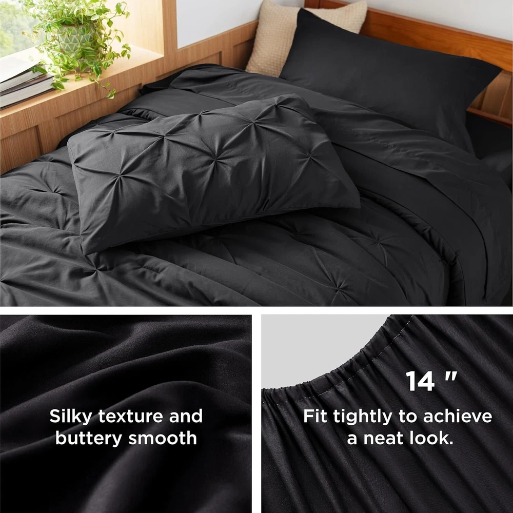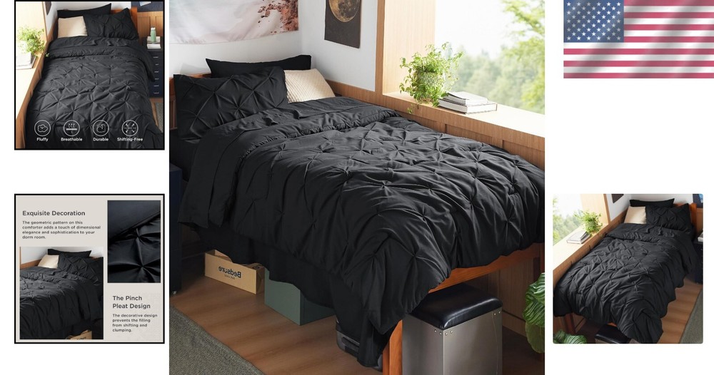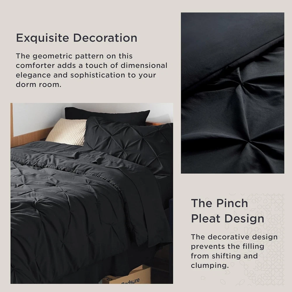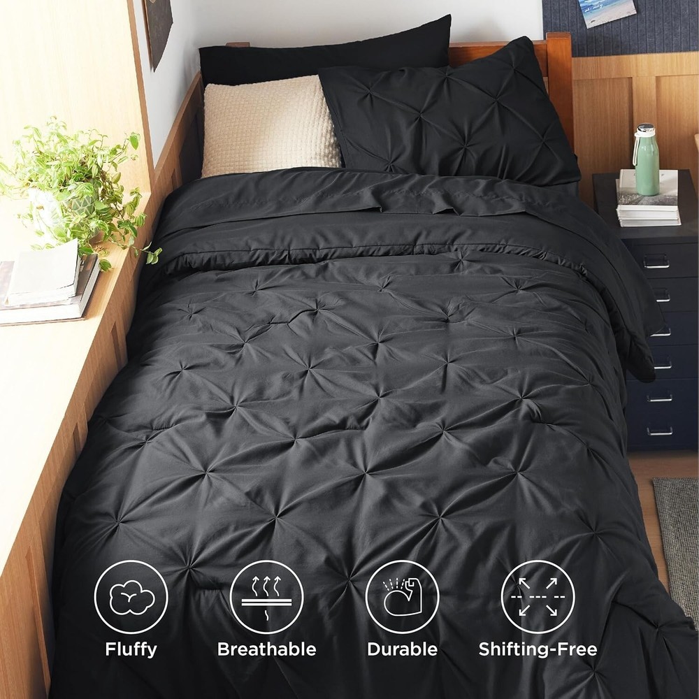 Just got this for my dorm and wow, it instantly upgraded my space! The black looks sleek, the pleats add texture, and it's so comfy. Perfect for students wanting a stylish, cozy bed.