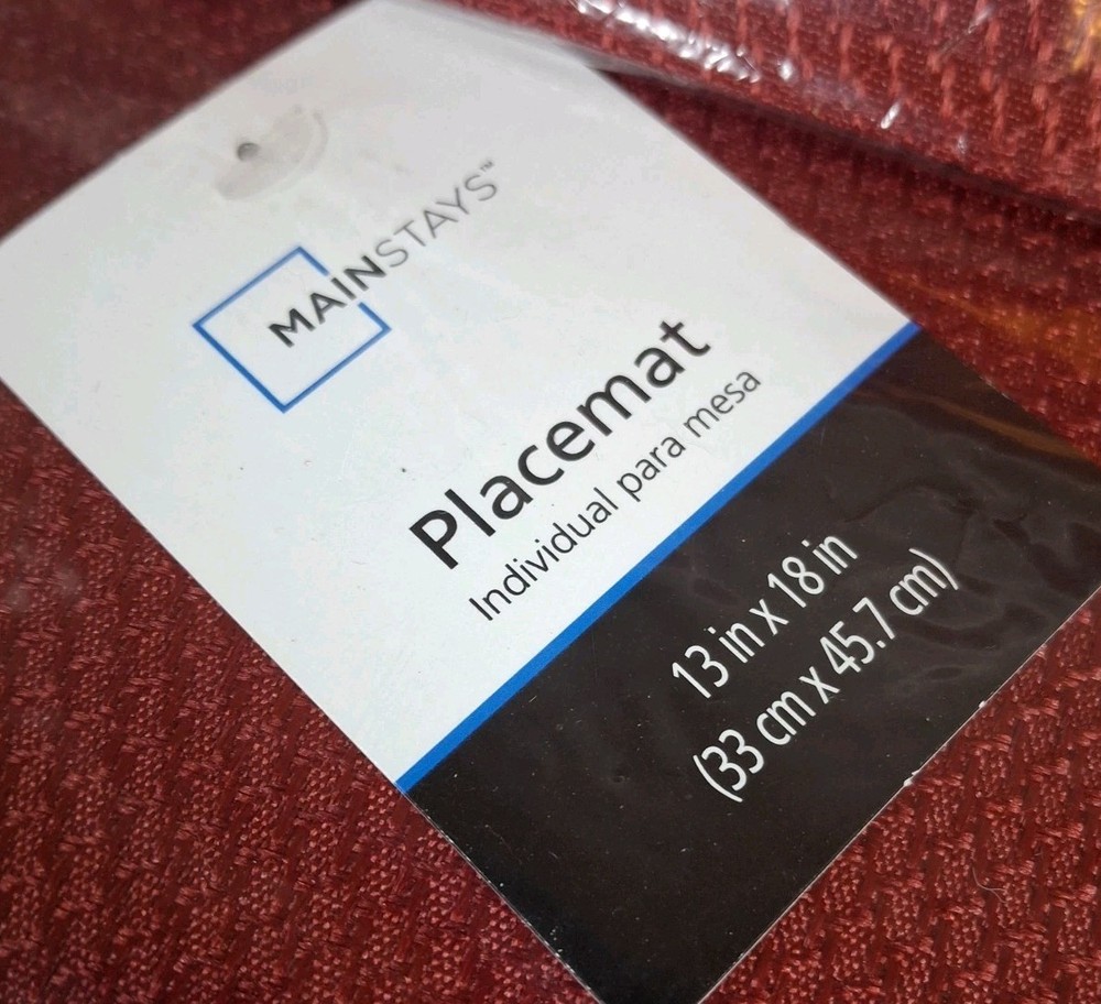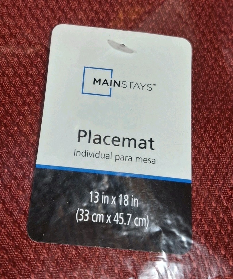 Enhance your dining experience with these stylish and functional placemats. Made of high-quality cloth material, these placemats are perfect for any occasion. With a solid red color and a rectangular shape, they will complement any kitchen or dining room decor. Each set includes 12 placemats, making them ideal for large families or entertainers. These placemats are machine washable, making them easy to clean and maintain. The Mainstay Fraser Red Sedona Cloth Placemats are perfect for your dining needs.
