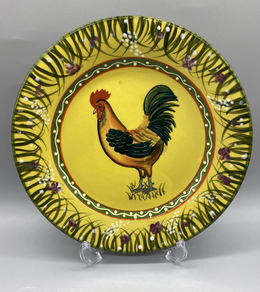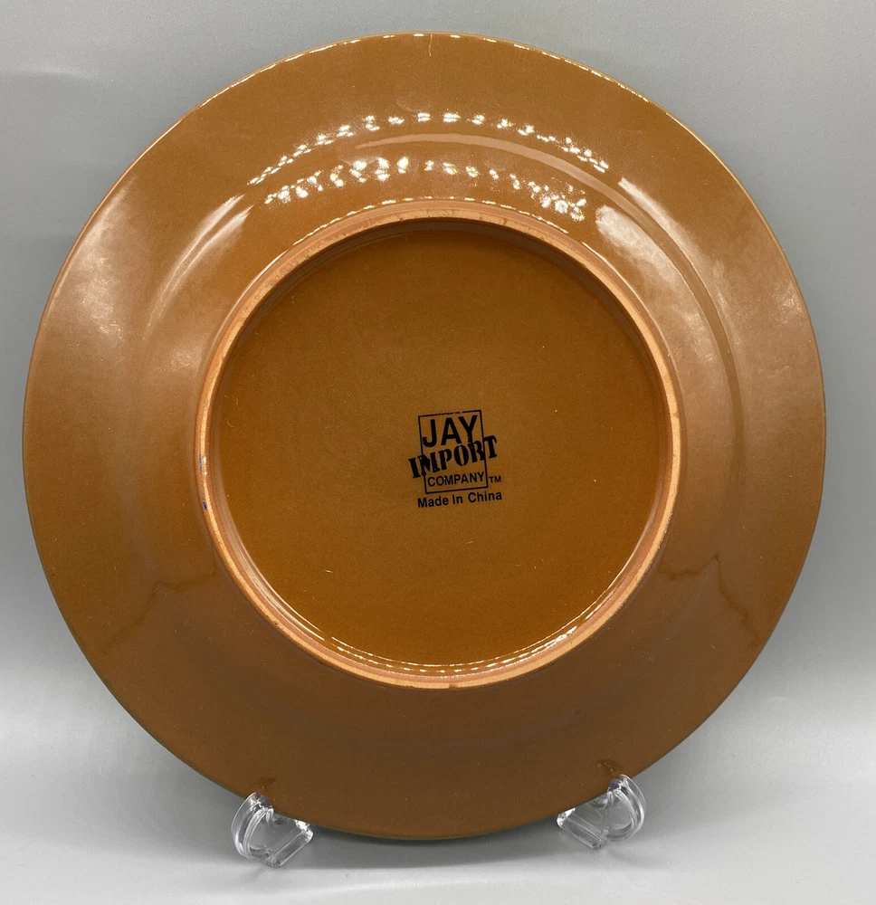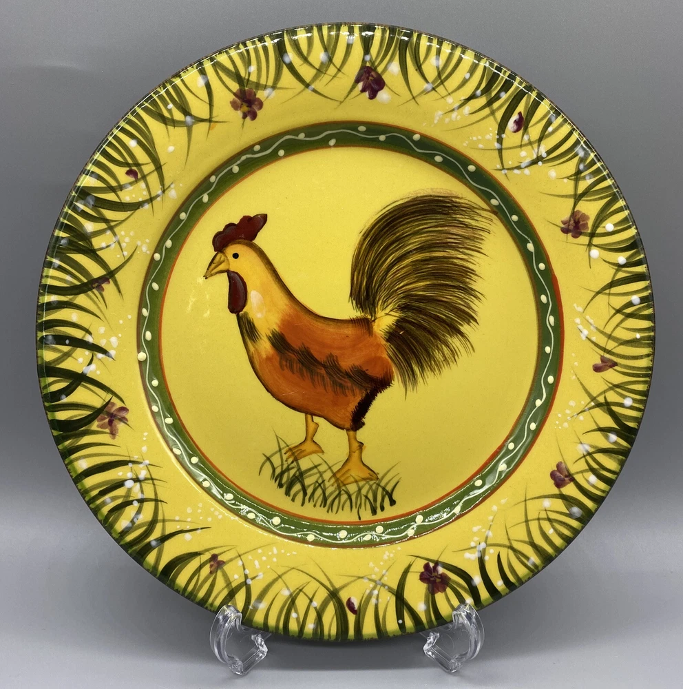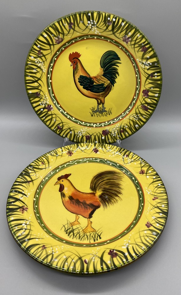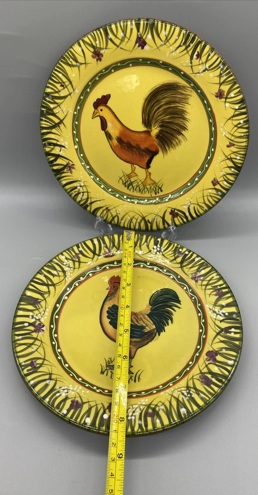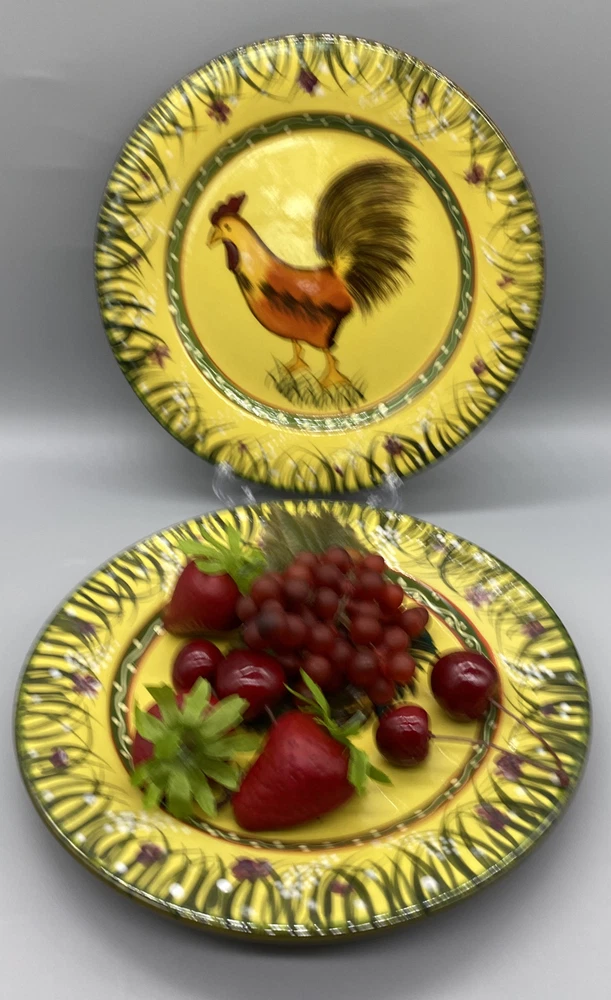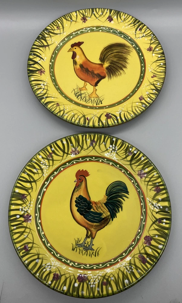 Add a touch of rural charm to your dining table with these two 8.5" round ceramic salad plates from the Jay Import Collection. Perfect for all occasions, these licensed reproduction plates feature an embossed rim and an eye-catching multicolor Rooster design that will delight your guests. Hand wash only and made in China, these plates are ideal for collectors and vintage enthusiasts looking to add a touch of the 1980s to their collection. These plates come with a Salad plate and are perfect for those who love animal farm themes.