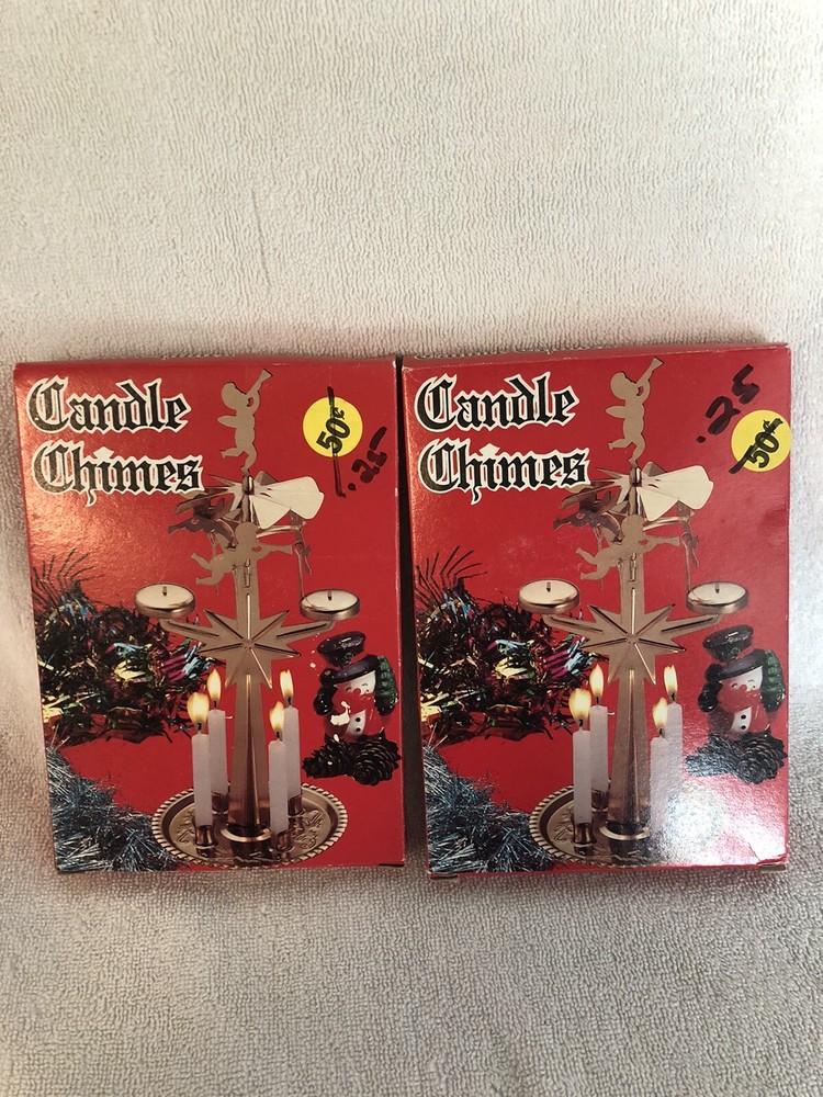 Two Vintage Boxes of Candle Chimes w/Angels. Original boxes, unopened, made in China, have old Fay’s Drug Store tags, Fay’s went out of business in 1996, so chimes are from the 1990’s,