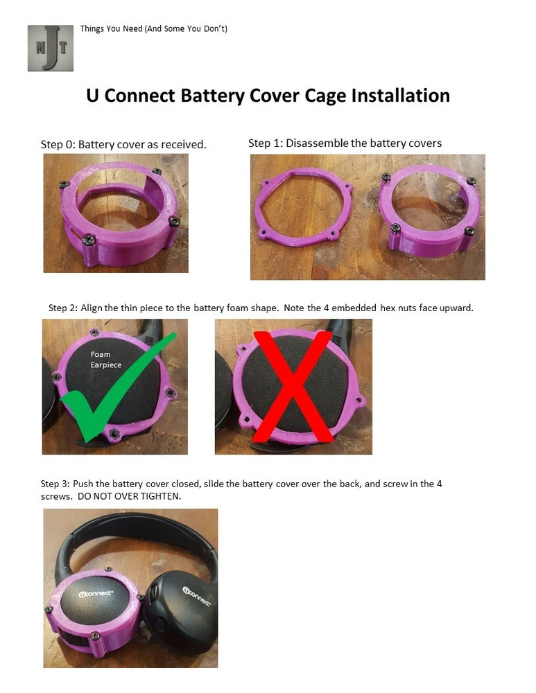 2013+ Chrysler Pacifica U Connect Headphone Fix (Headphones Not Included) The cover of the headphones breaks, and new headphones are only available from the Dealership. I've designed a 3D printed cover that conveniently attaches over the earphones that hold the battery cover shut, while not interfering with use. If you don't see the color you'd like listed, please message me and I'll see what i can do to support it. Custom colors will require additional time to ship.