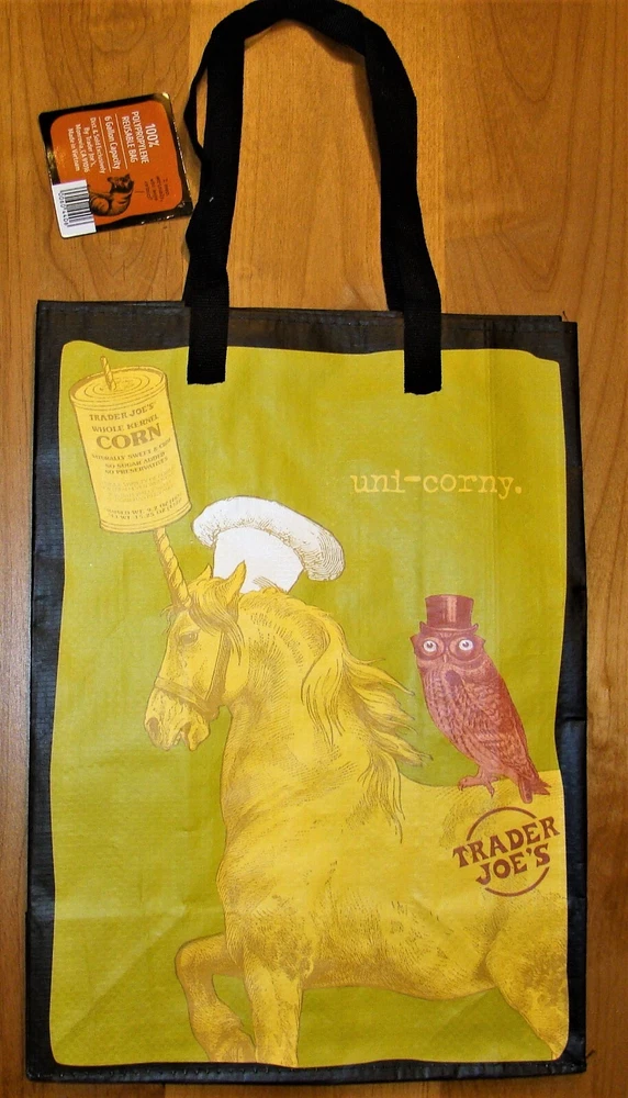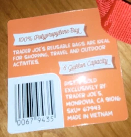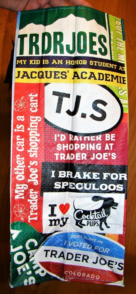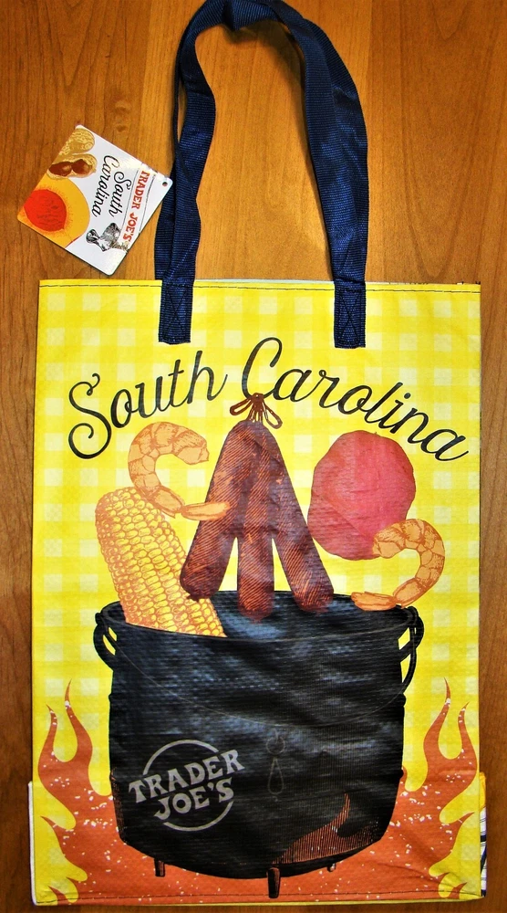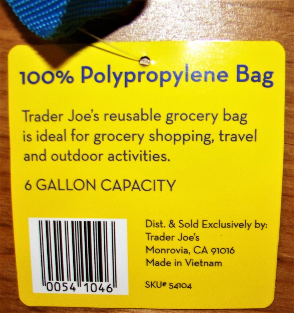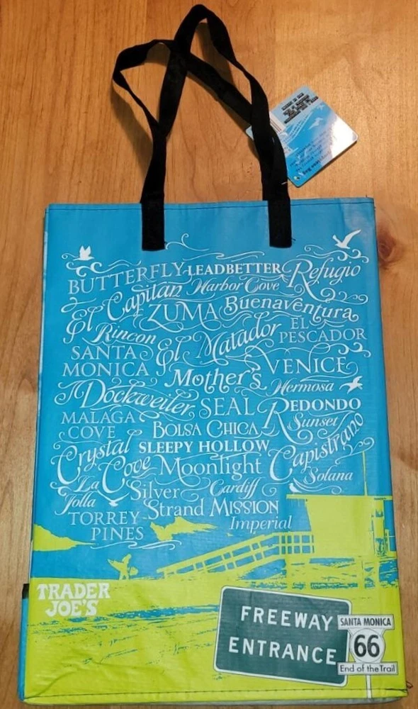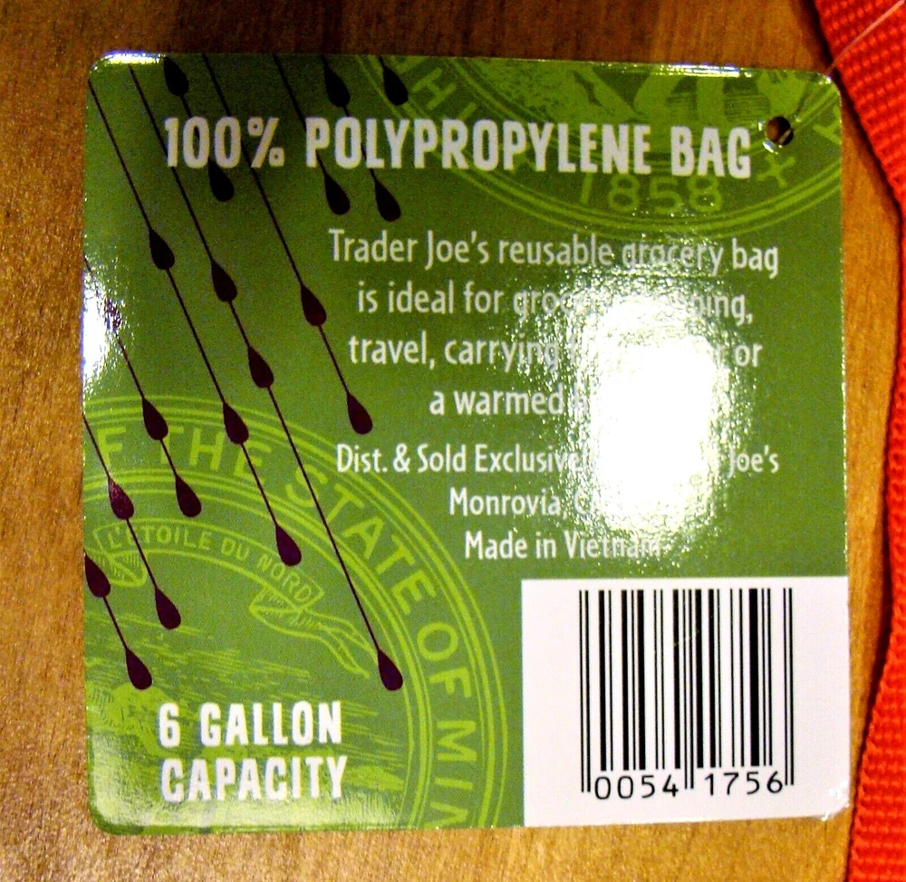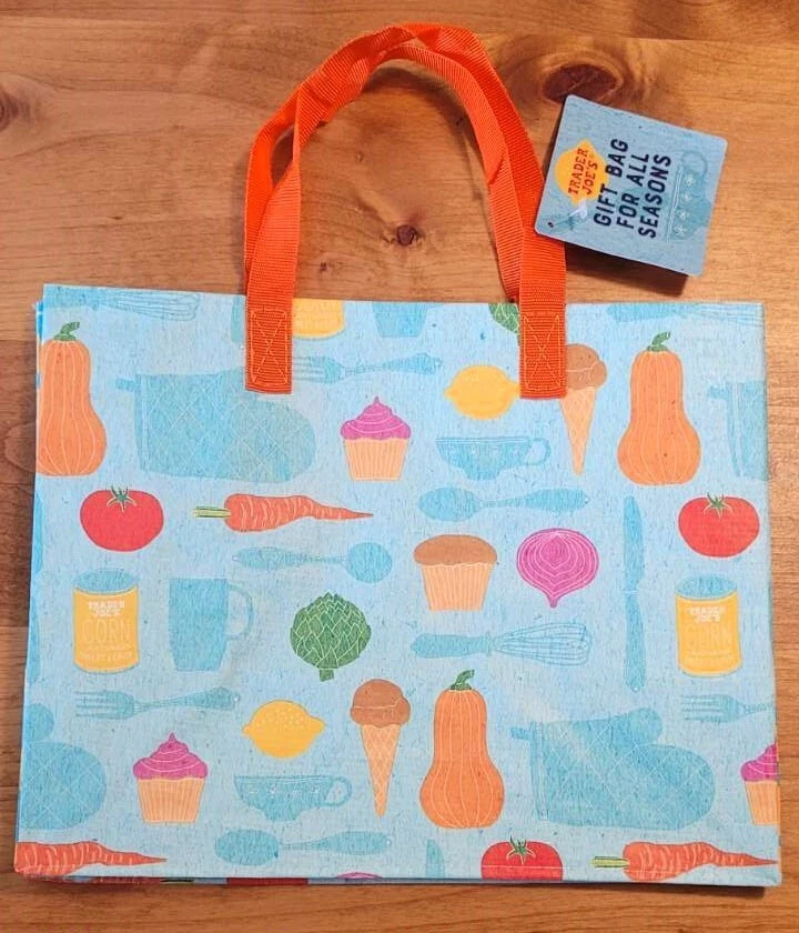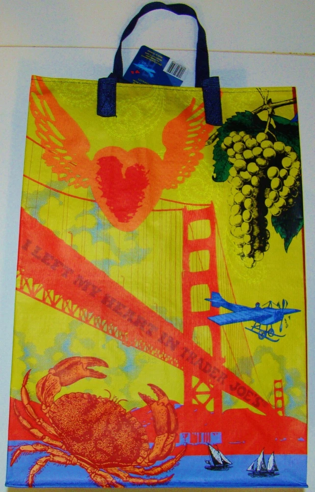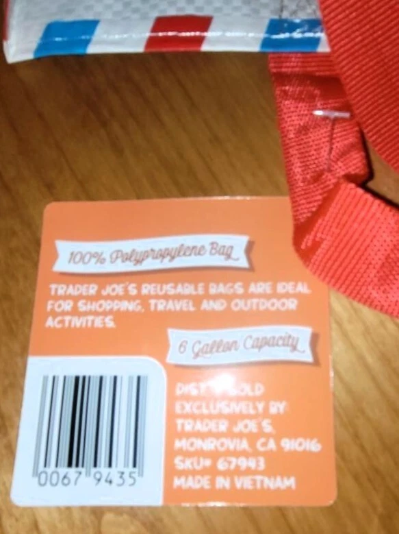 Up for purchase are New Trader Joe's Bags of your choice. You choose 1 or more from the dropdown menu and they'll be in the mail within 2 business days. All bags are shipped flat, not folded. All bags come with tags attached. All bags are $5.99 each. Half size bags are 3.99 each. Shipping - 3.99 per order (Order as many bags as you want in each order. Shipping is still just 3.99 per order) These bags are awesome for a TJ's enthusiast, collector or anyone who appreciates quality and reusable bags. The bags are 100% Polypropylene, with a 6 Gallon Capacity, Solid Stitching and Fabric Handles. They measure approximately: 16.25 inches tall, 11.75 inches across and 7 inches across the bottom. They expand to hold extra items. They can be easily wiped down and sanitized. These bags can last for years. All my items come from a smoke-free home. Ideas for Reusable Bags: Take them Grocery Shopping. Fill them with food to transport a Delicious New Year, Office Party, Potluck, 4th Of July Picnic, Passover, Christmas, Kwanzaa, Hanukkah, Valentine's, Mardi Gras, Easter, Oktoberfest, etc. Holiday Dinner and packup is a breeze! Planters! Plant tomatoes, cherry tomatoes, beans, peas, potatoes or any other vast variety of fruit or vegetables that you like, in them. You can even use them as an upside down tomato planter if you hang them and cut a slit in the bottom. Diaper Bags! Baby clothes, diapers, ointments, lotions, snacks, baby food, wipes and toys can all fit in. Toss in an extra one for dirty baby clothes and toys that need to be washed. Gym Bags: Protein drinks, protein bars, bottled water, towels, clothes, blow dryers, shampoo, conditioner, lotion, razors and whatever else you might need for the gym. Toss in an extra for dirty gym clothes and towels. Then you can just pull it out and toss the dirty stuff into the laundry. Sports Bags: These bags will hold shoes, outfits, balls, belts, nets, masks, socks, and so much more. Toss in an extra for dirty items. Dance Bags: Load them up with costumes, hair accessories, tap shoes, ballet shoes, jazz shoes, etc. Knitting and Crochet Bags: Pile in your yarn, needles, patterns and books Girl Scout Cookies! Fill 'em up! Trick or Treat Bags! You can even tuck an extra one inside with very little extra weight for little hands to carry. Waterproof Beach Bags! Sun-tan lotion, cold drinks, swim shoes, snacks, towels, glasses, keys, and anything else you want to take to the beach can be tossed in! Throw in an extra one for wet suits and towels on the way home! Craft Bags – These are great for holding and storing rubber stamps, ink pads, embossers and more. Quilting Project Bags: Fill them up with quilting fabric and notions. Slumber Party Bags: Pajamas, clothes, stuffed animals, favorite blankets, treats, snacks, pillows and more can be piled in! Picnic Bags: Load them up with chicken, sandwiches, drinks, snacks, Frisbees, dog leashes and more! Day at the Lake Bag: Take along some beer, soda, swimsuits, inflatable toys, Frisbees, towels and toss in an extra for dirty clothes! Pets: These bags hold leashes, outfits, snacks, balls, toys, food, dishes, and more for your furry friend. They can be used to store items, and then just grabbed for a day trip or ride in your vehicle. Laundry Bags: You can carry these around the house and collect your laundry, no matter where you left it! Holiday Storage: Store holiday ornaments in them. Car Cleaning: Keep a bag in the car to bring in items so your car doesn’t get dirty or disorganized. You can also use them to fill up with car trash. When you empty them, toss them in the laundry, and then replace in your car. Stair Organization: Keep one bag at the top of the stairs and one bag at the bottom. Collect things that need to go upstairs in the bag at the bottom. Put things that need to go downstairs in the bag at the top. Grab the bag when it’s full or when you’re ready, and carry it down. When you go up, take the bag at the bottom. Unload your things and leave the empty bags. Bath Toys: They’re perfect for storing bath toys! Each child can have his/her own bag with a different design! Library Trips: They work great for storing and holding library books! Keep them all in one spot. When you’re ready to return them, just grab the handles. Everyone can have their own design! Pool Toys and Pool Parties: Perfect for hanging on the fence full of pool toys. Perfect for storing wet suits after pool parties. Martial Arts: These are the perfect size for folding a uniform into without getting it wrinkled! They can store belts, water bottles, a change of clothes, a jacket and more! Quick Trips: Need a quick getaway bag? Keep one filled with mini or regular size shampoo, conditioner, hairspray or gel, soap, razor, lotion, face cream, deodorant a change of clothing. When you need to go, you’re already packed and just need to toss in last minute snacks and extra clothes. School Gift: Teachers need all the help they can get with tissue, school supplies, wipes, snacks, etc. Consider sending in one of these bags with a nice note: Keep it for organizing or carrying supplies. Thanks for all you do! Toy Storage: Cleaning up and storing toys is a snap when each child gets to pick a bag and store their toys in their bag. Clothing Storage: Do you have clothes you don’t want to get rid of that are taking over your closet? Fold or roll them up and pack them into re-usable bags. If you leave a bit of space at the top, you can double or even triple stack them and put them on a shelf for next winter or summer. Summer or Winter Shoes: Pack your sandals or boots into these bags and store them! Extra Hangers: Extra hangers taking up room in your closet? Store them in a reusable bag and take them out as necessary! Party Supplies: Hosting a baby shower, bridal shower, wedding, birthday party, buffet lunch, etc? Pack all your supplies into re-usable bags and off you go! Lego Storage: Tired of stepping on them? If you have large amounts, you can even
