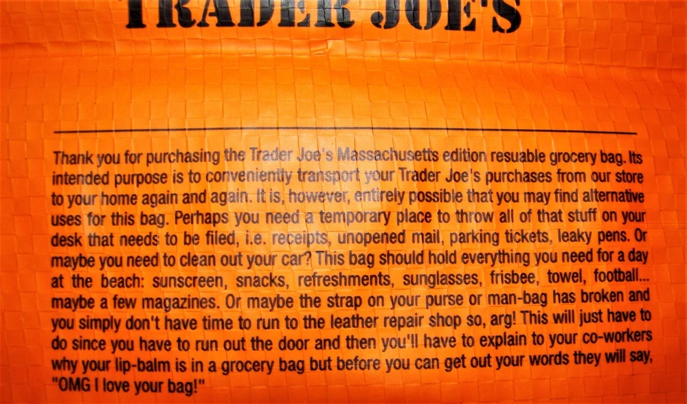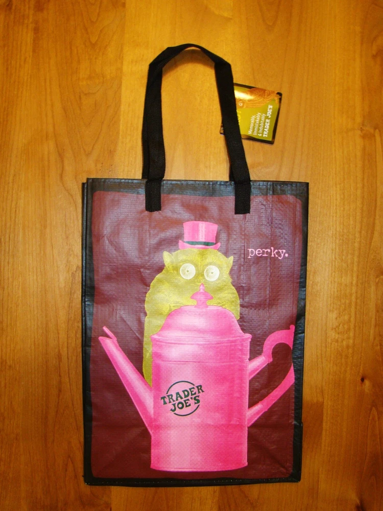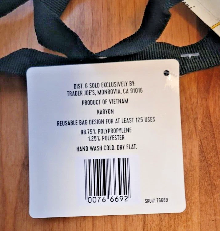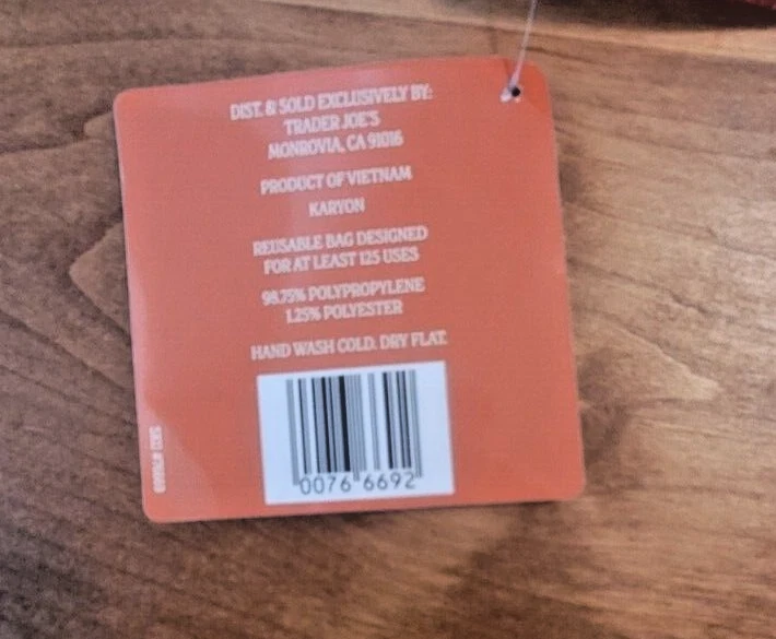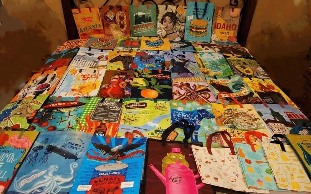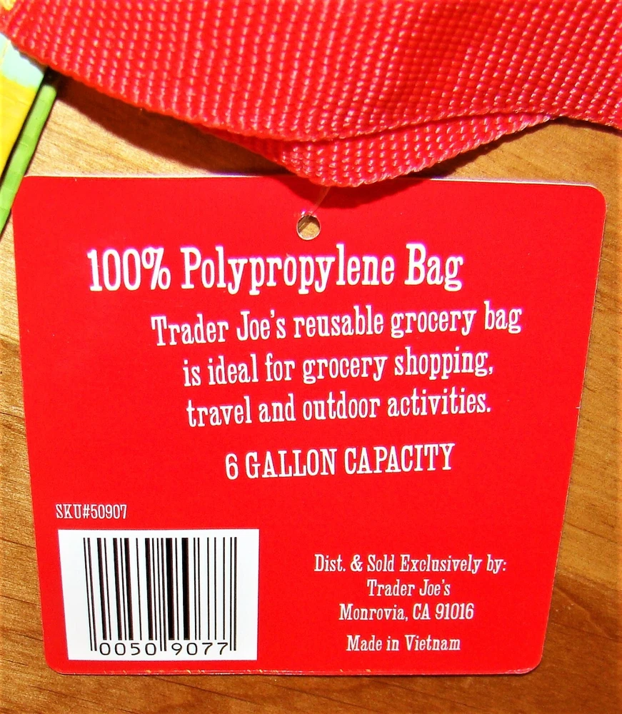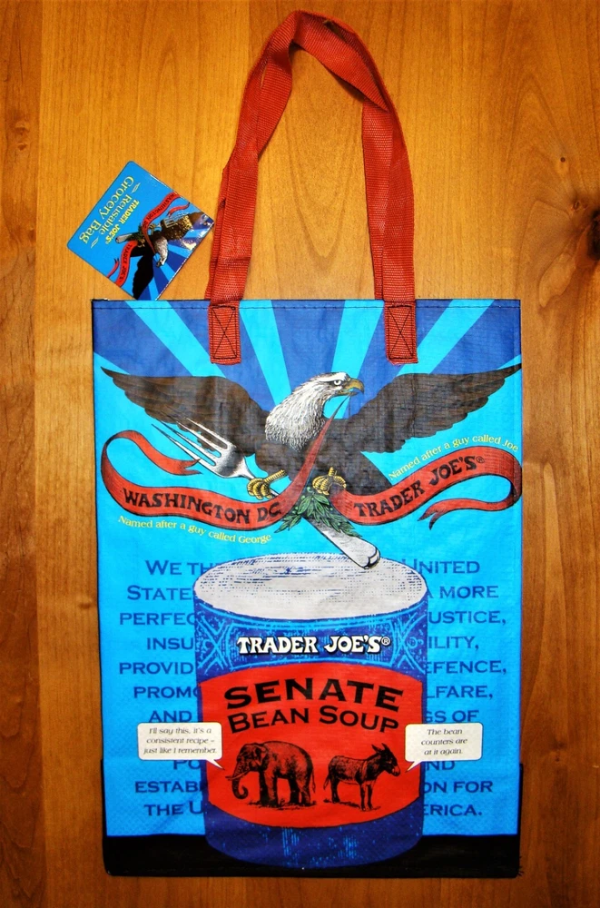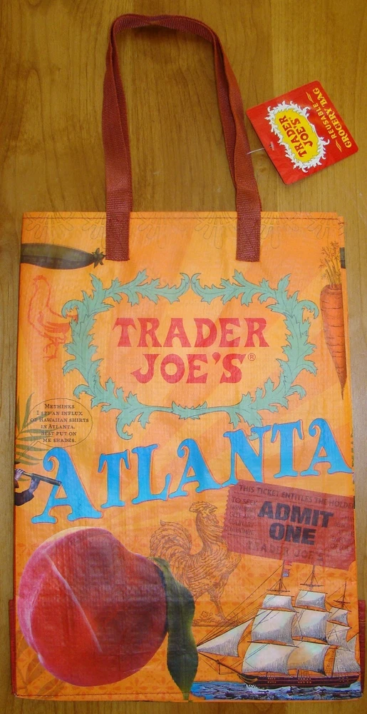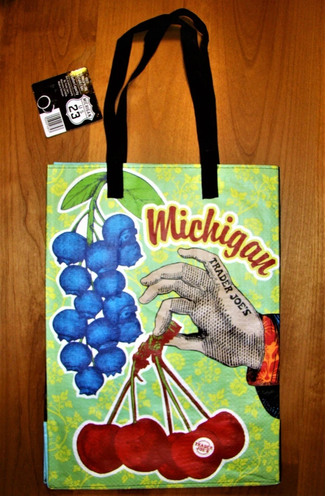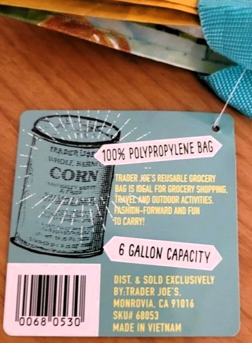 Up for purchase are New Trader Joe's Bags of your choice. You choose 1 or more from the dropdown menu and they'll be in the mail within 2 business days. All bags are shipped flat, not folded. All bags come with tags attached. All bags are $5.99 each. Half size bags are 3.99 each. Shipping - 3.99 per order (Order as many bags as you want in each order. Shipping is still just 3.99 per order) These bags are awesome for a TJ's enthusiast, collector or anyone who appreciates quality and reusable bags. The bags are 100% Polypropylene, with a 6 Gallon Capacity, Solid Stitching and Fabric Handles. They measure approximately: 16.25 inches tall, 11.75 inches across and 7 inches across the bottom. They expand to hold extra items. They can be easily wiped down and sanitized. These bags can last for years. All my items come from a smoke-free home. Ideas for Reusable Bags: Take them Grocery Shopping. Fill them with food to transport a Delicious New Year, Office Party, Potluck, 4th Of July Picnic, Passover, Christmas, Kwanzaa, Hanukkah, Valentine's, Mardi Gras, Easter, Oktoberfest, etc. Holiday Dinner and packup is a breeze! Planters! Plant tomatoes, cherry tomatoes, beans, peas, potatoes or any other vast variety of fruit or vegetables that you like, in them. You can even use them as an upside down tomato planter if you hang them and cut a slit in the bottom. Diaper Bags! Baby clothes, diapers, ointments, lotions, snacks, baby food, wipes and toys can all fit in. Toss in an extra one for dirty baby clothes and toys that need to be washed. Gym Bags: Protein drinks, protein bars, bottled water, towels, clothes, blow dryers, shampoo, conditioner, lotion, razors and whatever else you might need for the gym. Toss in an extra for dirty gym clothes and towels. Then you can just pull it out and toss the dirty stuff into the laundry. Sports Bags: These bags will hold shoes, outfits, balls, belts, nets, masks, socks, and so much more. Toss in an extra for dirty items. Dance Bags: Load them up with costumes, hair accessories, tap shoes, ballet shoes, jazz shoes, etc. Knitting and Crochet Bags: Pile in your yarn, needles, patterns and books Girl Scout Cookies! Fill 'em up! Trick or Treat Bags! You can even tuck an extra one inside with very little extra weight for little hands to carry. Waterproof Beach Bags! Sun-tan lotion, cold drinks, swim shoes, snacks, towels, glasses, keys, and anything else you want to take to the beach can be tossed in! Throw in an extra one for wet suits and towels on the way home! Craft Bags – These are great for holding and storing rubber stamps, ink pads, embossers and more. Quilting Project Bags: Fill them up with quilting fabric and notions. Slumber Party Bags: Pajamas, clothes, stuffed animals, favorite blankets, treats, snacks, pillows and more can be piled in! Picnic Bags: Load them up with chicken, sandwiches, drinks, snacks, Frisbees, dog leashes and more! Day at the Lake Bag: Take along some beer, soda, swimsuits, inflatable toys, Frisbees, towels and toss in an extra for dirty clothes! Pets: These bags hold leashes, outfits, snacks, balls, toys, food, dishes, and more for your furry friend. They can be used to store items, and then just grabbed for a day trip or ride in your vehicle. Laundry Bags: You can carry these around the house and collect your laundry, no matter where you left it! Holiday Storage: Store holiday ornaments in them. Car Cleaning: Keep a bag in the car to bring in items so your car doesn’t get dirty or disorganized. You can also use them to fill up with car trash. When you empty them, toss them in the laundry, and then replace in your car. Stair Organization: Keep one bag at the top of the stairs and one bag at the bottom. Collect things that need to go upstairs in the bag at the bottom. Put things that need to go downstairs in the bag at the top. Grab the bag when it’s full or when you’re ready, and carry it down. When you go up, take the bag at the bottom. Unload your things and leave the empty bags. Bath Toys: They’re perfect for storing bath toys! Each child can have his/her own bag with a different design! Library Trips: They work great for storing and holding library books! Keep them all in one spot. When you’re ready to return them, just grab the handles. Everyone can have their own design! Pool Toys and Pool Parties: Perfect for hanging on the fence full of pool toys. Perfect for storing wet suits after pool parties. Martial Arts: These are the perfect size for folding a uniform into without getting it wrinkled! They can store belts, water bottles, a change of clothes, a jacket and more! Quick Trips: Need a quick getaway bag? Keep one filled with mini or regular size shampoo, conditioner, hairspray or gel, soap, razor, lotion, face cream, deodorant a change of clothing. When you need to go, you’re already packed and just need to toss in last minute snacks and extra clothes. School Gift: Teachers need all the help they can get with tissue, school supplies, wipes, snacks, etc. Consider sending in one of these bags with a nice note: Keep it for organizing or carrying supplies. Thanks for all you do! Toy Storage: Cleaning up and storing toys is a snap when each child gets to pick a bag and store their toys in their bag. Clothing Storage: Do you have clothes you don’t want to get rid of that are taking over your closet? Fold or roll them up and pack them into re-usable bags. If you leave a bit of space at the top, you can double or even triple stack them and put them on a shelf for next winter or summer. Summer or Winter Shoes: Pack your sandals or boots into these bags and store them! Extra Hangers: Extra hangers taking up room in your closet? Store them in a reusable bag and take them out as necessary! Party Supplies: Hosting a baby shower, bridal shower, wedding, birthday party, buffet lunch, etc? Pack all your supplies into re-usable bags and off you go! Lego Storage: Tired of stepping on them? If you have large amounts, you can even