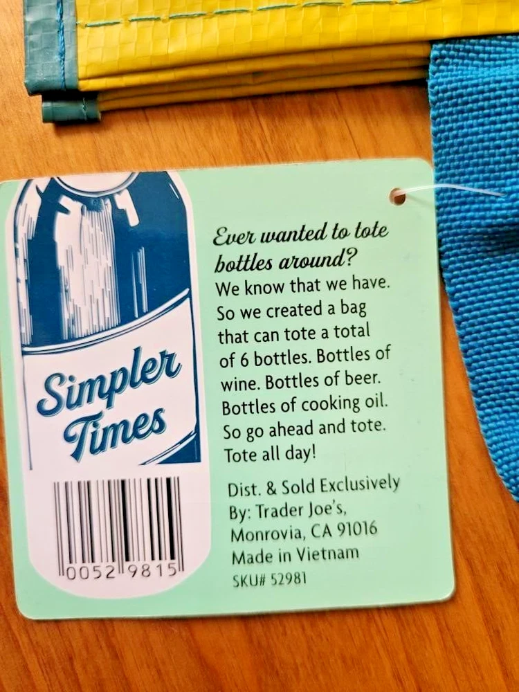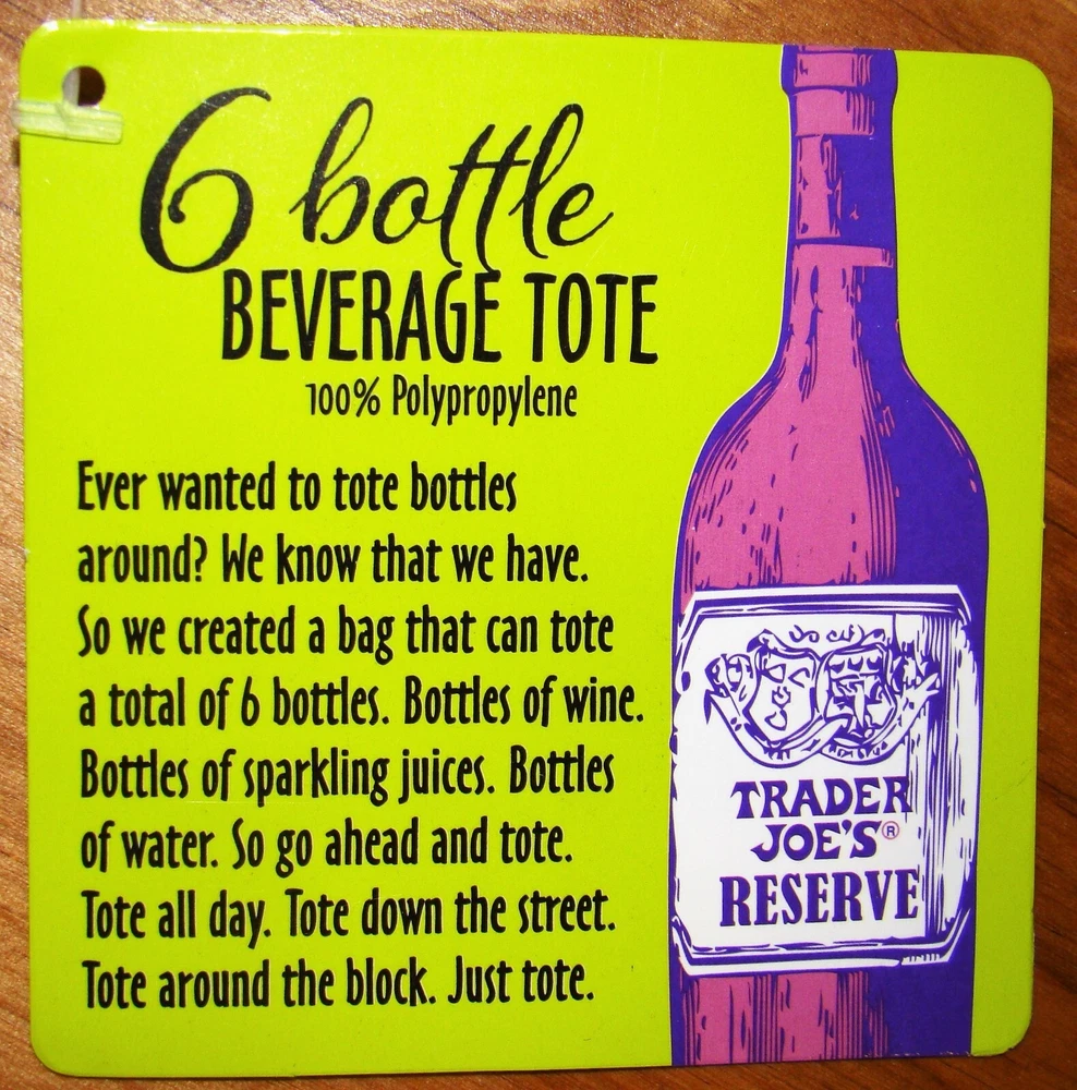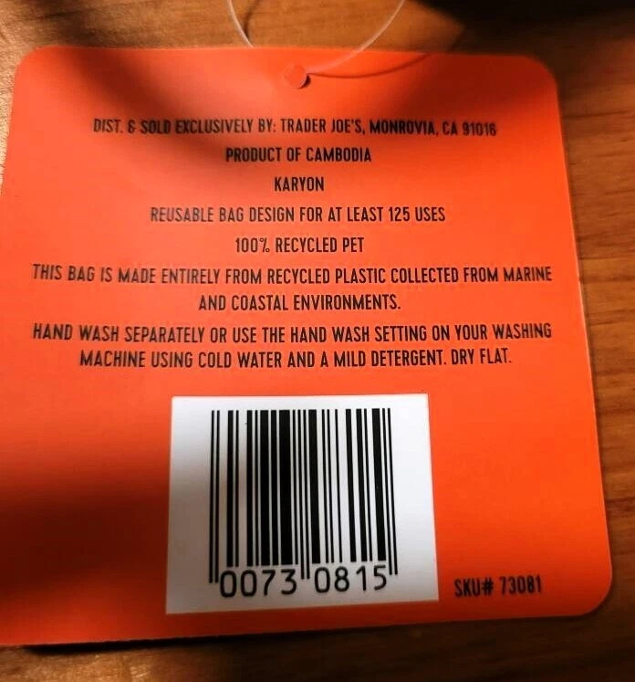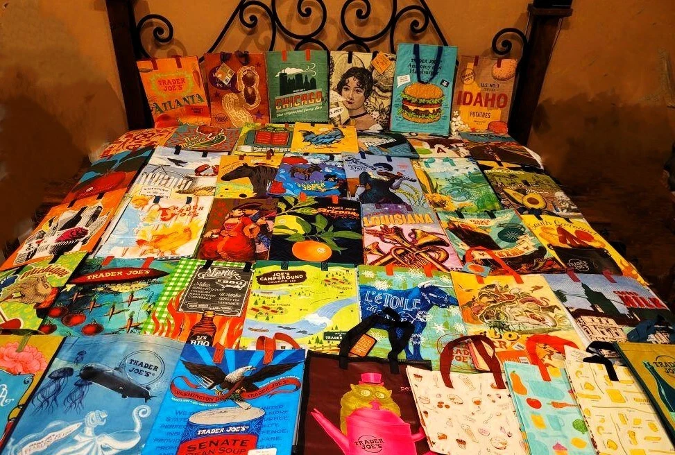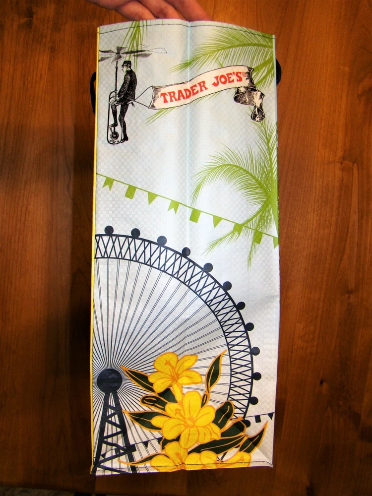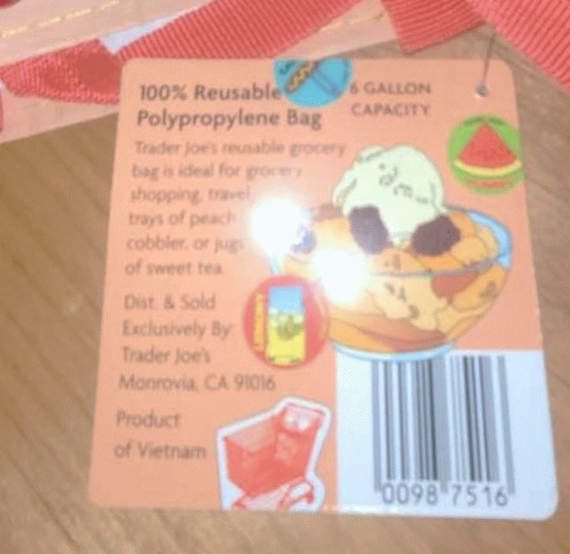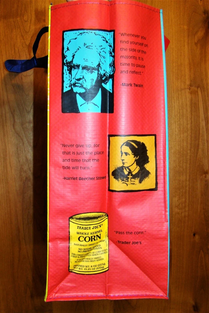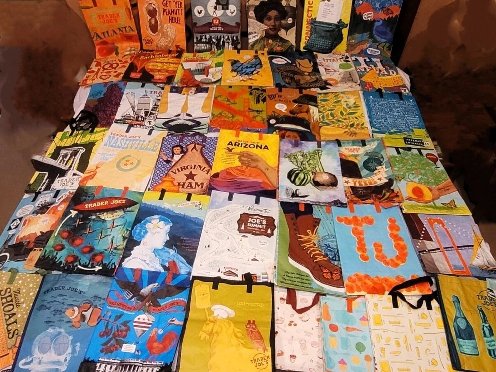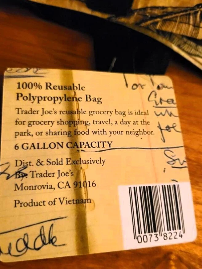 Up for purchase are New Trader Joe's Bags of your choice. You choose 1 or more from the dropdown menu and they'll be in the mail within 2 business days. All bags are shipped flat, not folded. All bags come with tags attached. All bags are $5.99 each. Half size bags are 3.99 each. Shipping - 3.99 per order (Order as many bags as you want in each order. Shipping is still just 3.99 per order) These bags are awesome for a TJ's enthusiast, collector or anyone who appreciates quality and reusable bags. The bags are 100% Polypropylene, with a 6 Gallon Capacity, Solid Stitching and Fabric Handles. They measure approximately: 16.25 inches tall, 11.75 inches across and 7 inches across the bottom. They expand to hold extra items. They can be easily wiped down and sanitized. These bags can last for years. All my items come from a smoke-free home. Ideas for Reusable Bags: Take them Grocery Shopping. Fill them with food to transport a Delicious New Year, Office Party, Potluck, 4th Of July Picnic, Passover, Christmas, Kwanzaa, Hanukkah, Valentine's, Mardi Gras, Easter, Oktoberfest, etc. Holiday Dinner and packup is a breeze! Planters! Plant tomatoes, cherry tomatoes, beans, peas, potatoes or any other vast variety of fruit or vegetables that you like, in them. You can even use them as an upside down tomato planter if you hang them and cut a slit in the bottom. Diaper Bags! Baby clothes, diapers, ointments, lotions, snacks, baby food, wipes and toys can all fit in. Toss in an extra one for dirty baby clothes and toys that need to be washed. Gym Bags: Protein drinks, protein bars, bottled water, towels, clothes, blow dryers, shampoo, conditioner, lotion, razors and whatever else you might need for the gym. Toss in an extra for dirty gym clothes and towels. Then you can just pull it out and toss the dirty stuff into the laundry. Sports Bags: These bags will hold shoes, outfits, balls, belts, nets, masks, socks, and so much more. Toss in an extra for dirty items. Dance Bags: Load them up with costumes, hair accessories, tap shoes, ballet shoes, jazz shoes, etc. Knitting and Crochet Bags: Pile in your yarn, needles, patterns and books Girl Scout Cookies! Fill 'em up! Trick or Treat Bags! You can even tuck an extra one inside with very little extra weight for little hands to carry. Waterproof Beach Bags! Sun-tan lotion, cold drinks, swim shoes, snacks, towels, glasses, keys, and anything else you want to take to the beach can be tossed in! Throw in an extra one for wet suits and towels on the way home! Craft Bags – These are great for holding and storing rubber stamps, ink pads, embossers and more. Quilting Project Bags: Fill them up with quilting fabric and notions. Slumber Party Bags: Pajamas, clothes, stuffed animals, favorite blankets, treats, snacks, pillows and more can be piled in! Picnic Bags: Load them up with chicken, sandwiches, drinks, snacks, Frisbees, dog leashes and more! Day at the Lake Bag: Take along some beer, soda, swimsuits, inflatable toys, Frisbees, towels and toss in an extra for dirty clothes! Pets: These bags hold leashes, outfits, snacks, balls, toys, food, dishes, and more for your furry friend. They can be used to store items, and then just grabbed for a day trip or ride in your vehicle. Laundry Bags: You can carry these around the house and collect your laundry, no matter where you left it! Holiday Storage: Store holiday ornaments in them. Car Cleaning: Keep a bag in the car to bring in items so your car doesn’t get dirty or disorganized. You can also use them to fill up with car trash. When you empty them, toss them in the laundry, and then replace in your car. Stair Organization: Keep one bag at the top of the stairs and one bag at the bottom. Collect things that need to go upstairs in the bag at the bottom. Put things that need to go downstairs in the bag at the top. Grab the bag when it’s full or when you’re ready, and carry it down. When you go up, take the bag at the bottom. Unload your things and leave the empty bags. Bath Toys: They’re perfect for storing bath toys! Each child can have his/her own bag with a different design! Library Trips: They work great for storing and holding library books! Keep them all in one spot. When you’re ready to return them, just grab the handles. Everyone can have their own design! Pool Toys and Pool Parties: Perfect for hanging on the fence full of pool toys. Perfect for storing wet suits after pool parties. Martial Arts: These are the perfect size for folding a uniform into without getting it wrinkled! They can store belts, water bottles, a change of clothes, a jacket and more! Quick Trips: Need a quick getaway bag? Keep one filled with mini or regular size shampoo, conditioner, hairspray or gel, soap, razor, lotion, face cream, deodorant a change of clothing. When you need to go, you’re already packed and just need to toss in last minute snacks and extra clothes. School Gift: Teachers need all the help they can get with tissue, school supplies, wipes, snacks, etc. Consider sending in one of these bags with a nice note: Keep it for organizing or carrying supplies. Thanks for all you do! Toy Storage: Cleaning up and storing toys is a snap when each child gets to pick a bag and store their toys in their bag. Clothing Storage: Do you have clothes you don’t want to get rid of that are taking over your closet? Fold or roll them up and pack them into re-usable bags. If you leave a bit of space at the top, you can double or even triple stack them and put them on a shelf for next winter or summer. Summer or Winter Shoes: Pack your sandals or boots into these bags and store them! Extra Hangers: Extra hangers taking up room in your closet? Store them in a reusable bag and take them out as necessary! Party Supplies: Hosting a baby shower, bridal shower, wedding, birthday party, buffet lunch, etc? Pack all your supplies into re-usable bags and off you go! Lego Storage: Tired of stepping on them? If you have large amounts, you can even