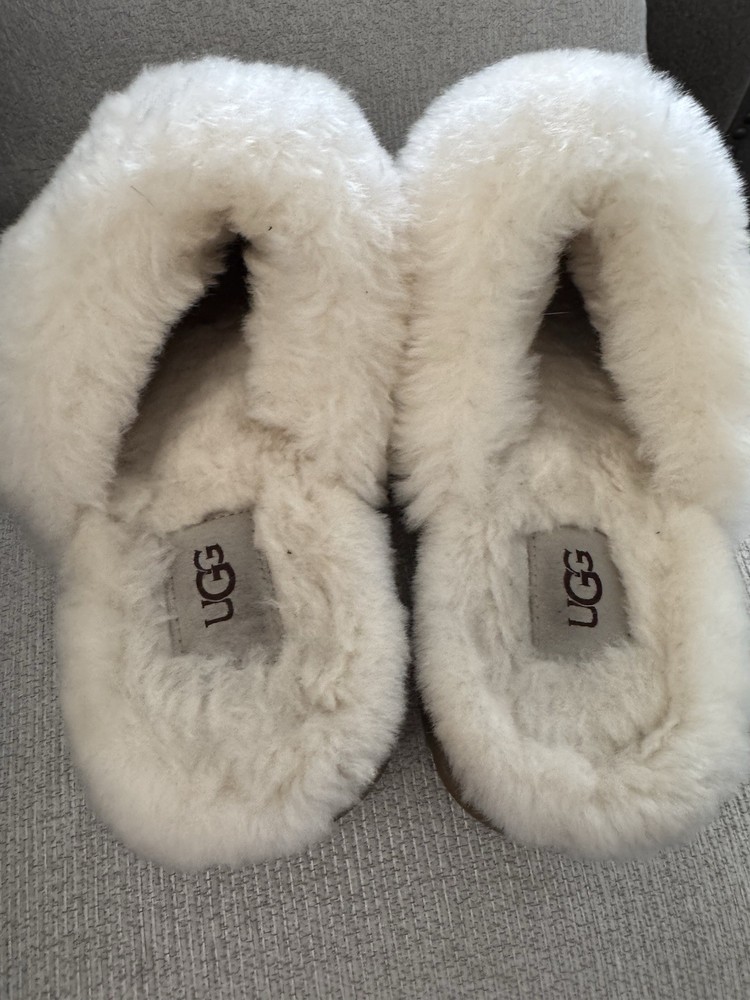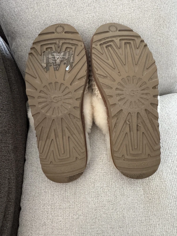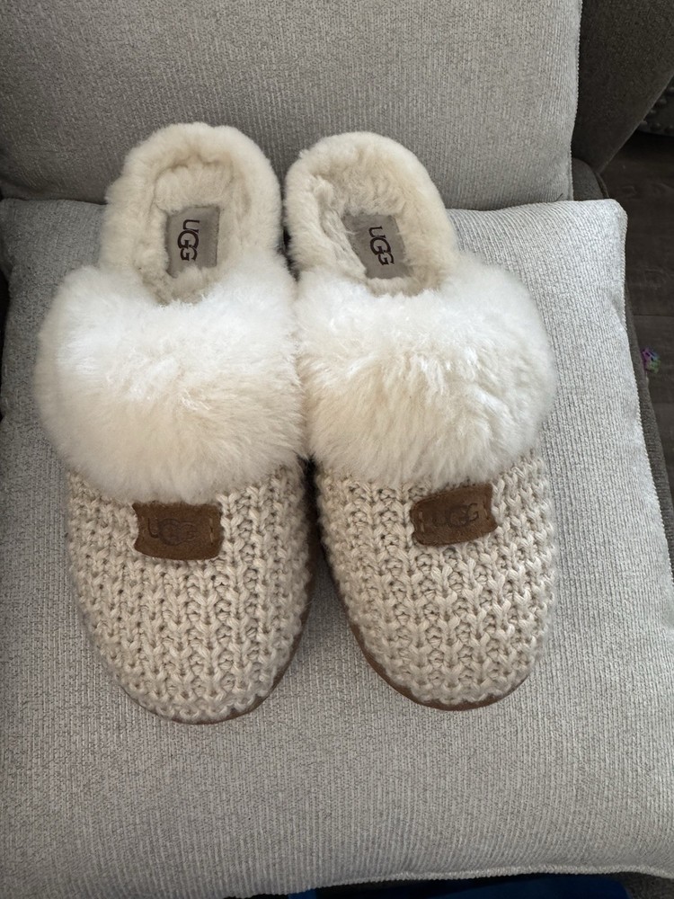 The Women's UGG Cozy Slippers are stylish and comfortable for wearing indoors or out. Made from a sweater knit material, the upper of the UGG Cozy Slippers are durable and stylish, while the sheepskin lining and fuzzy collar offer warmth. Featuring Treadlite by UGG™ outsole, these UGG slippers provide reliable grip and traction even on slick surfaces. With UGG's Cozy Slippers, you can relax in comfort and style. Size 8 Worn On e