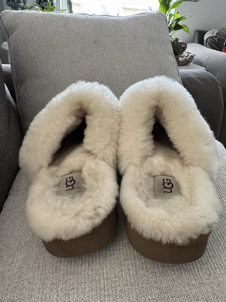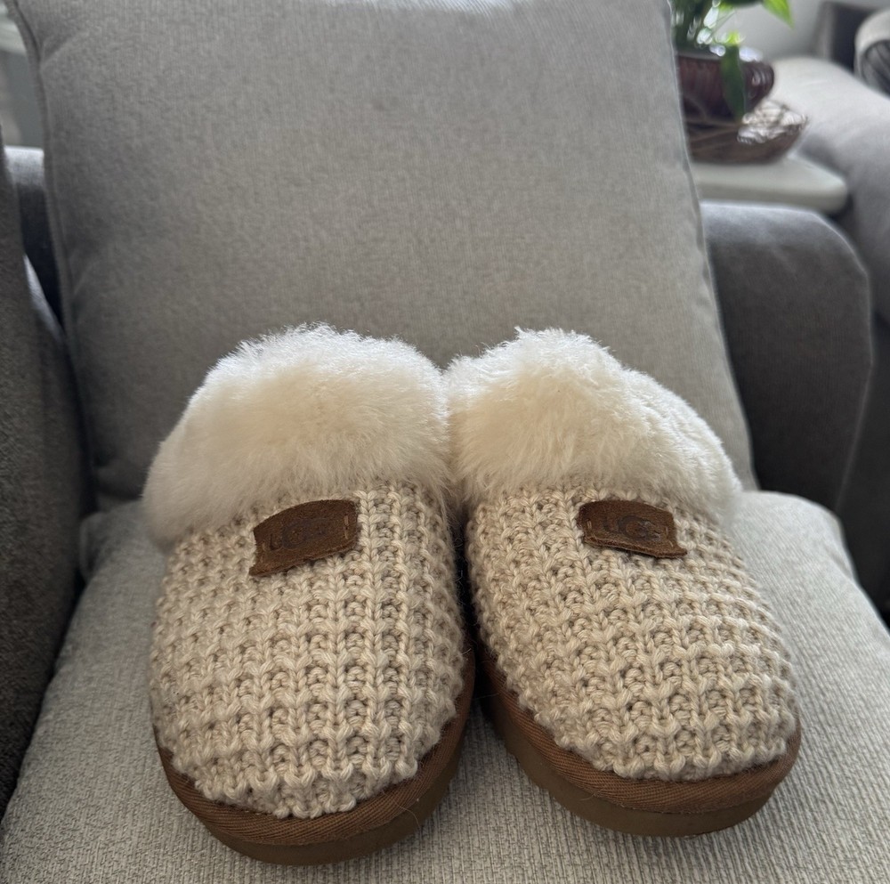 Super cozy and stylish—love how soft the sheepskin lining feels! Perfect for lounging at home or quick errands. The knit upper is durable, and the fuzzy collar adds extra warmth. The sole grips well, so no slipping. Super comfortable right out of the box—definitely worth it!