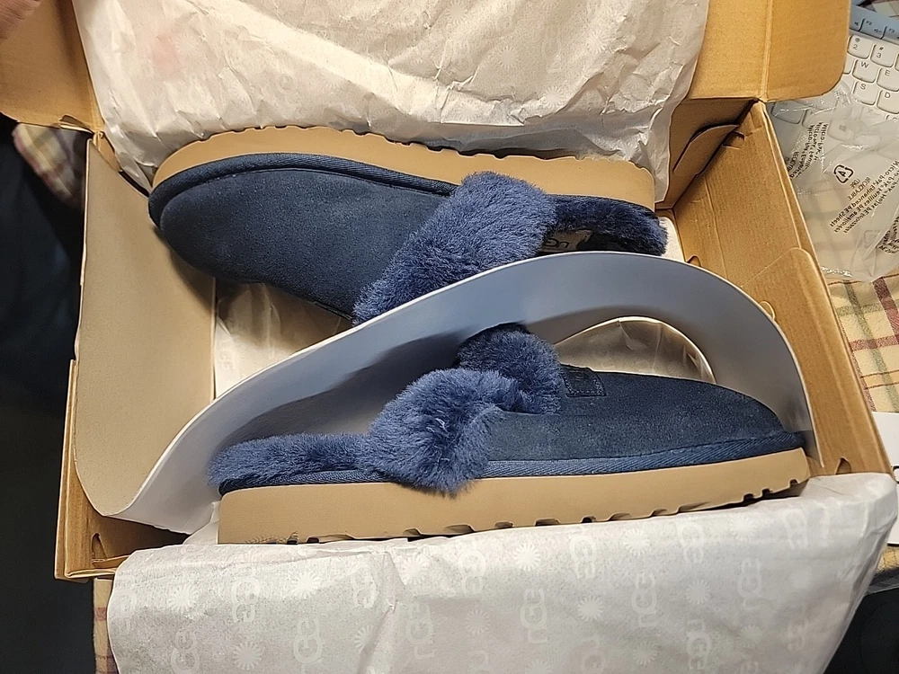 These slippers come in their original box. They are super clean with very little wear from being used. There are no tears nor rips or stains. The soles have almost no wear upon them. Please check out all of the pictures for details and condition.