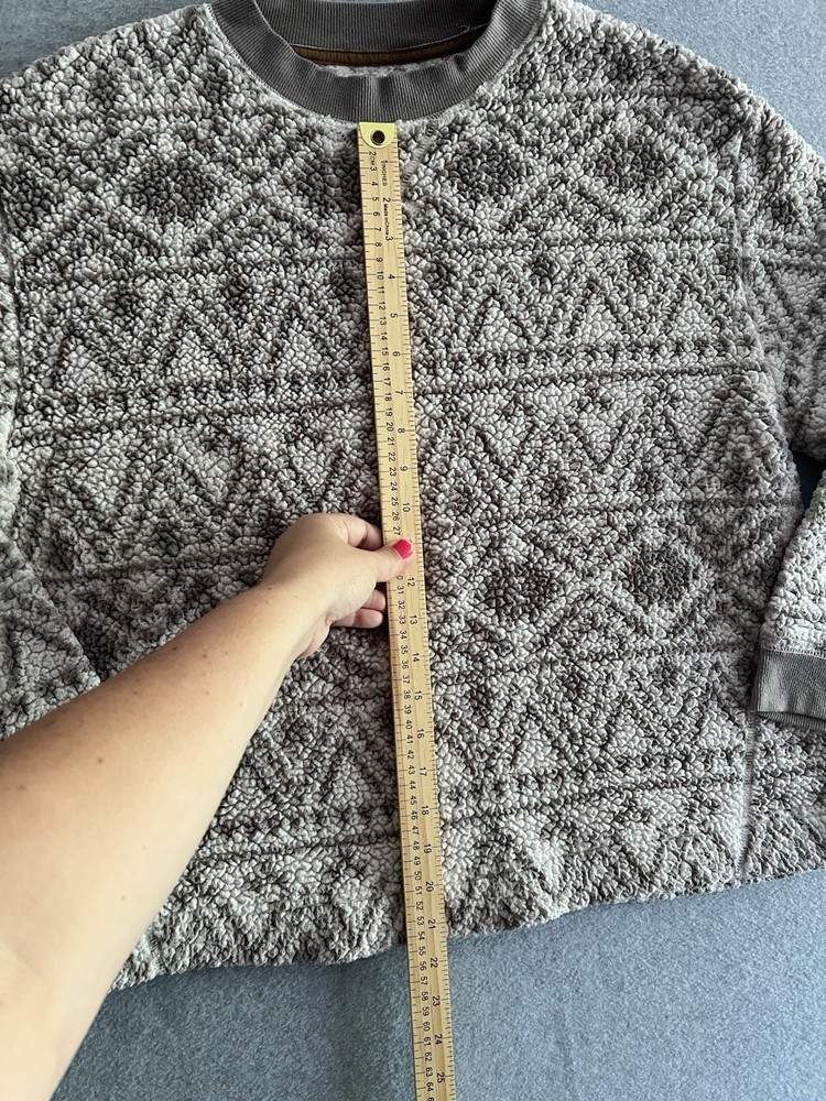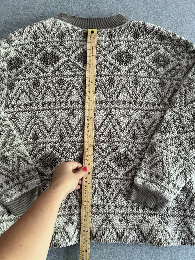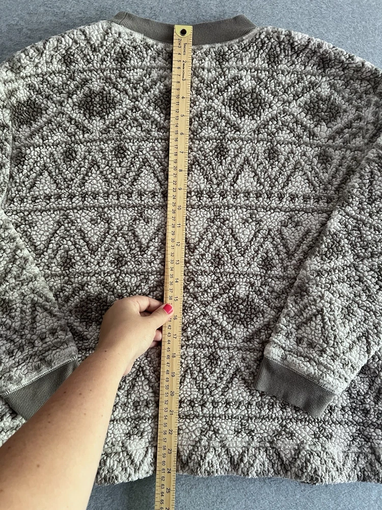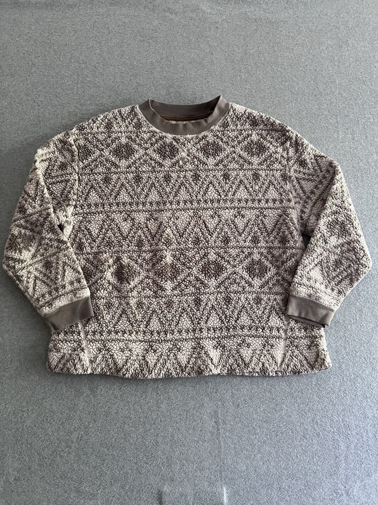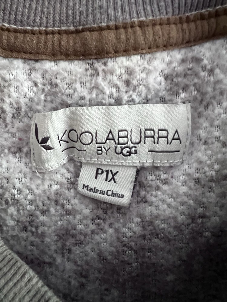 The UGG Koolaburra Women's Sherpa Sweatshirt in size P1X is a stylish and cozy pullover featuring a Scandinavian pattern in gray and white. This sweatshirt is perfect for travel, activewear, or casual occasions, with a relaxed fit and crew neckline for added comfort. Made of 100% polyester fleece, it is lightweight, stretchy, and easy to care for with machine washable and tumble dry low instructions. Ideal for winter, fall, and spring seasons, this sweatshirt is great for walking, school, or hiking, making it a versatile and chic addition to any woman's wardrobe.