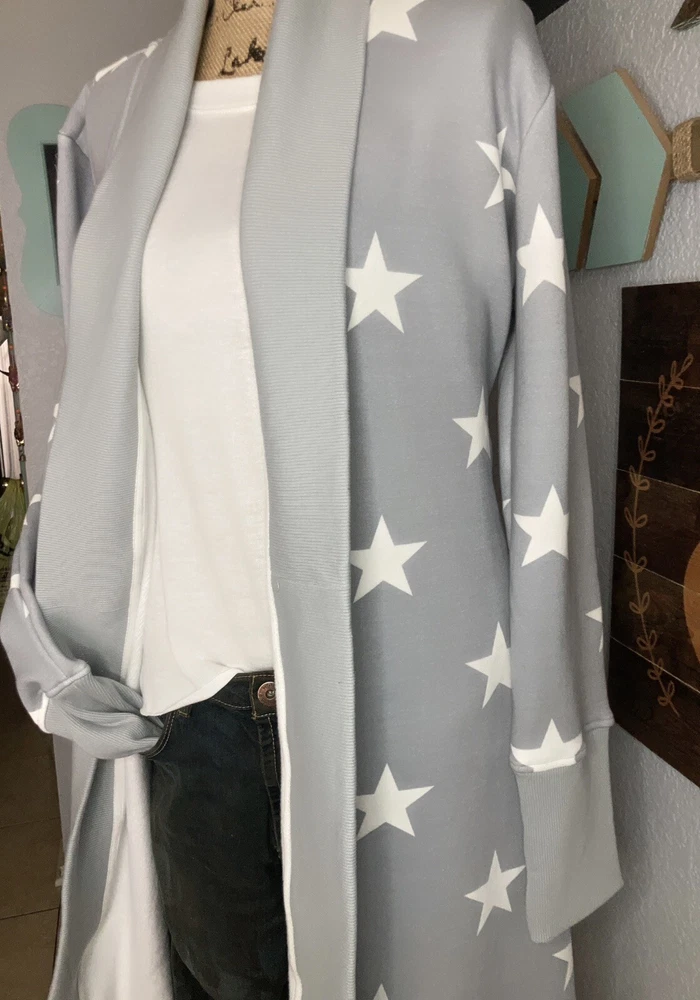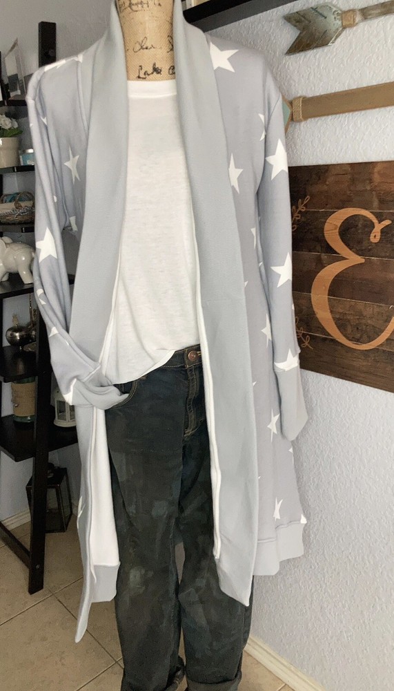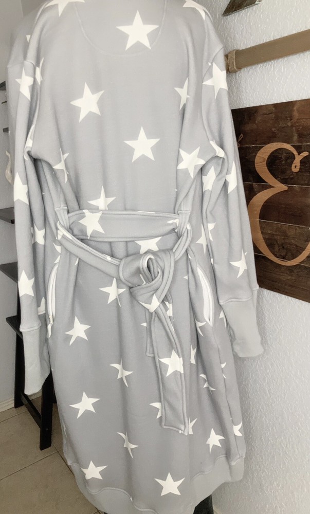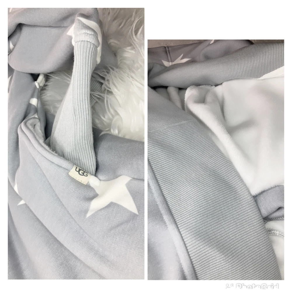 UGG Lounge Duster M Retails $130. This is one comfortable, soft, and cozy duster! Out shell is thick sweatshirt material and fleece inside. It is oversized. Great for vacation, traveling, school, running errands, or just hanging out at home. Tags are still attached. No returns.