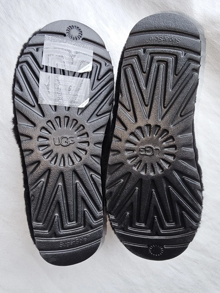 Evolving our original Classic with a low profile silhouette and fluffy exposed sheepskin, the Classic Cozy Bootie makes a soft statement. Lined in our UGGplush wool blend, we add a SugarSole foam outsole made with renewable sugarcane – offering indoor-outdoor cushioning so you can bring the feeling of UGG wherever you go. 10mm sheepskin upper Rear pull tab 17mm sheepskin lining 17mm UGGplush 80% upcycled wool, 20% lyocell sockliner SugarSole foam outsole, EVA outsole This product contains real fur from sheep or lamb. Fur may be sourced from Australia, Ireland, the United Kingdom, or the United States. It has been artificially dyed and treated. FLOOR MODEL AND TRIED ON - EXCELLENT CONDITION- PLEASE REFER TO PICTURES Our items are items offered at high-end department stores. They are new and most have been tried on and store handled. IF YOU ARE LOOKING FOR A BRAND NEW UNTOUCHED ITEM THIS IS NOT FOR YOU. We check the items for defects and damages. The item you receive might have wrinkles from shipping. If you have any issue with the transaction, please email or message us directly. FLOOR MODEL AND TRIED ON - EXCELLENT CONDITION- PLEASE REFER TO PICTURES