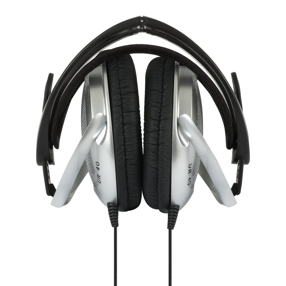 Home and portable audio take on fresh life with quality headphones, and 's lightweight, closed-ear UR40 is designed to keep outside noises out and headphone sound in--perfect for use in busses and libraries alike. With its extended frequency range of 15 to 22,000 Hz, you'll never miss a single bass note or want for high-frequency splash or shimmer. The UR40's titanium driver elements ensure taut low end and clear treble, while its collapsible headband design further lends it to portable applications and protects the headphone when not in use. The headphone comes with a four-foot, dual-entry cord and a .25-inch stereo adapter for use with hi-fi components. What's in the Box Headphones, adapter plug, user's manual, information. Product Description The UR40 delivers digital quality sound in an ultra-lightweight design for listeners on-the-go. The UR40 features dynamic elements for a wide frequency response from 15-22,000 Hz. A 2 mil. titanium coating on its diaphragms increases the rigidity of the elements, minimizing mechanical distortion and ensuring exceedingly accurate sound reproduction. Computer-optimized neodymium iron boron rare earth magnet structures enable the UR40 to deliver greater volume, even with low-voltage portable devices. Oxygen-free copper voice coils improve signal transmission and conduction for cleaner, clearer sound. With its hybrid design, the UR40 combines the best of closed-style and open-style headphones. Closed leatherette earcushions form a light seal around the ears, enhancing bass frequencies. Screened earcups provide an open, hear-through sound that lets listeners stay in touch with the world around them. The result is a full frequency, clean sound that turns any recording into a "live" performance.At just over six ounces the UR40 wears comfortably even after hours of continuous listening. The airy mesh sling provides soft breathable support, ideal for those with touch-sensitive scalps. An adjustable headband accommodates all head shapes and sizes for maximum comfort. When not in use, the resilient, lightweight frame folds into a compact configuration that's protective, easy to carry and convenient to . Perfect for travel, the UR40 includes a straight dual-entry eight foot cord. A gold-flashed 3.5mm (1/8") plug, L-shaped to minimize cord stress is included.The UR40 will delight listeners seeking heavyweight sound in a comfortable lightweight package. From the Manufacturer A home headphone is a headphone that is primarily used in the home, with home electronics. Generally speaking, home headphones are somewhat larger and more isolating. Home headphones with cords tend to have a longer cord. Features: Frequency response: 15-22,000 Hz Titanium element for impressive bass and treble clarity Closed ear cushions for deep bass and maximum isolation Collapsible headband design for portability and protective storage Straight, dual-entry, 4-foot cord 3.5 mm plug Frequency Response - 10-20,000 Hz and Impedance - 60 ohms Wide, 15 to 22,000 Hz frequency response Titanium-coated, high-polymer diaphragms deliver accurate sound Neodymium iron boron rare-earth-magnet structures for accurate sound reproduction International products have separate terms, are sold from abroad and may differ from local products, including fit, age ratings, and language of product, labeling or instructions. Wide, 15 to 22,000 Hz frequency response Titanium-coated, high-polymer diaphragms deliver accurate sound Neodymium iron boron rare-earth-magnet structures for accurate sound reproduction Oxygen-free-copper voice coils for high signal clarity Closed leatherette ear cushions for maximum isolation and deep bass