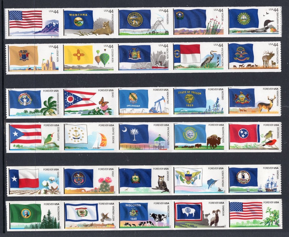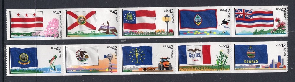 US USA HINGED 2008 2009 2010 2011 2012 NH 4273-4332 Flags Our Nation Complete 12 Coil Strips of 5 (60 stamps total). PLEASE SEE OUR FEEDBACKS!! All stamps are from a smoke-free office. Free USA Shipping. Plus we're offering Scott Page Protectors (ACC 166) x100, x200 and x500. We also offer Scott 3 inch slipcases in gently used condition and at excellent prices. Checkout our eBay listings. Member: American Stamp Dealers Association for many years. Member: American Philatelic Society for over 50 years - Life Member