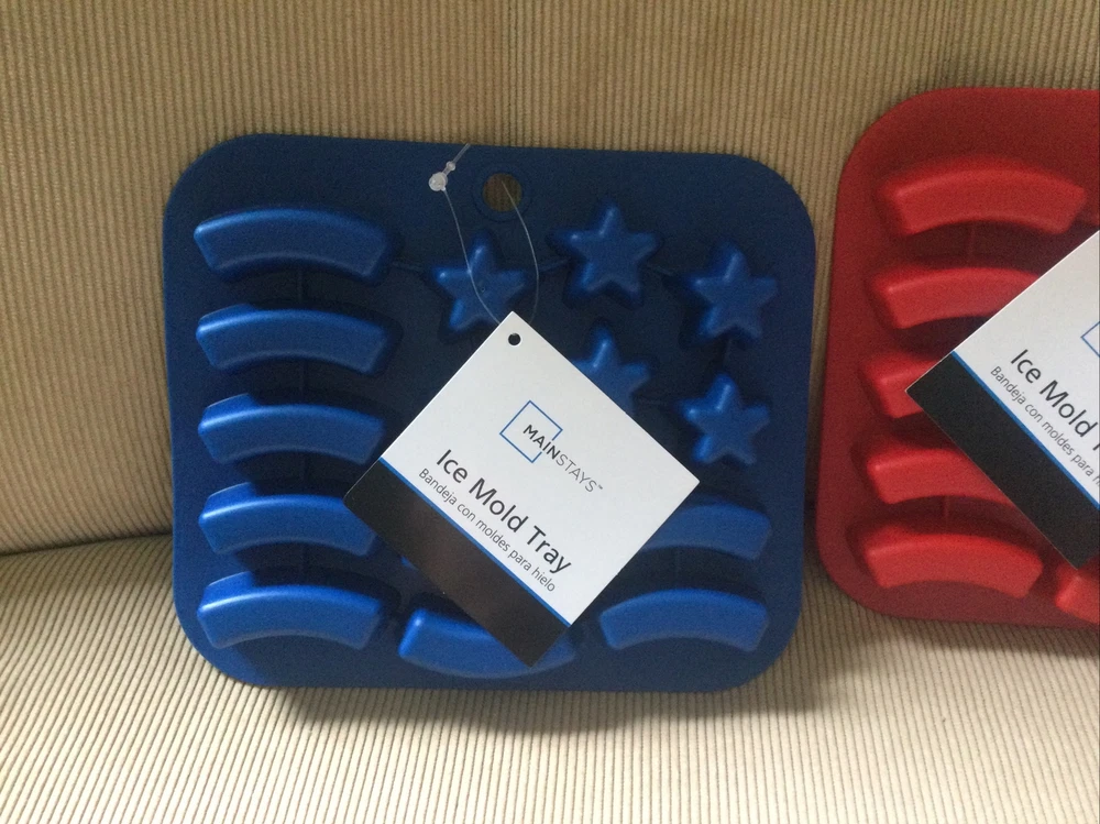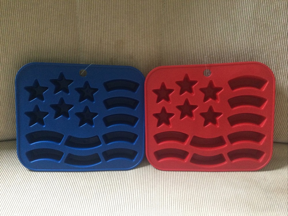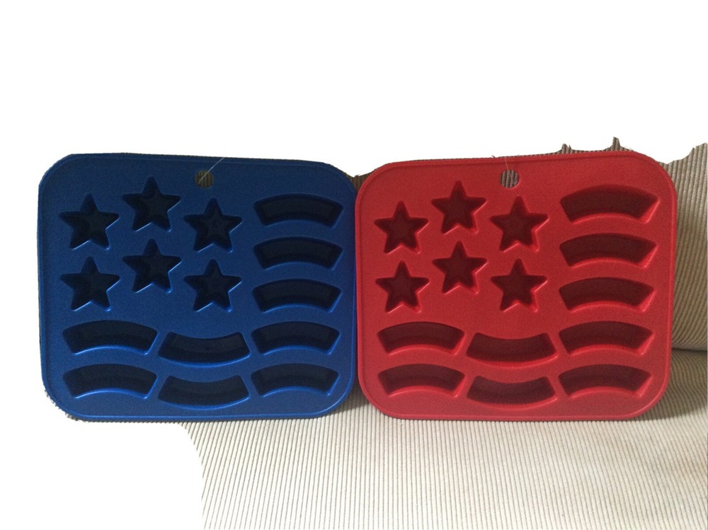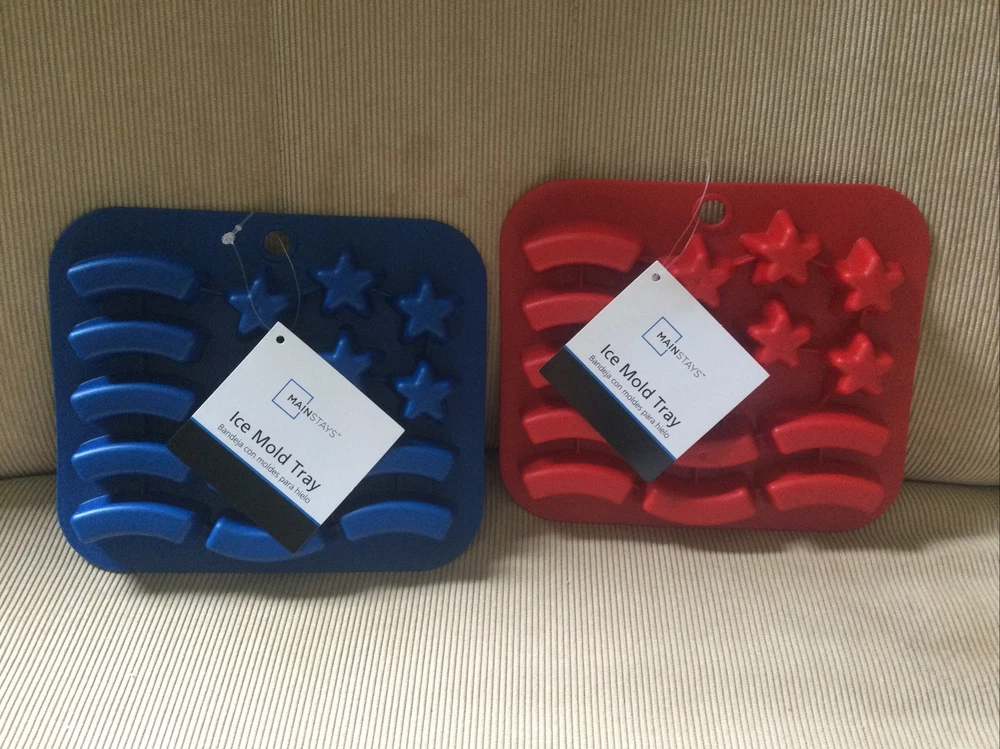 USA Flag Novelty Ice Cube - Ice Mold Tray - 15 Mold Tray - Blue & Red- Main Stays - brand new! Washed before first use. Hand wash recommended. Not suitable for use in a microwave. I have 5 sets of these available. Message me for details if interested. Check out my other items for sale. I do combine shipping. Thanks for looking :-)