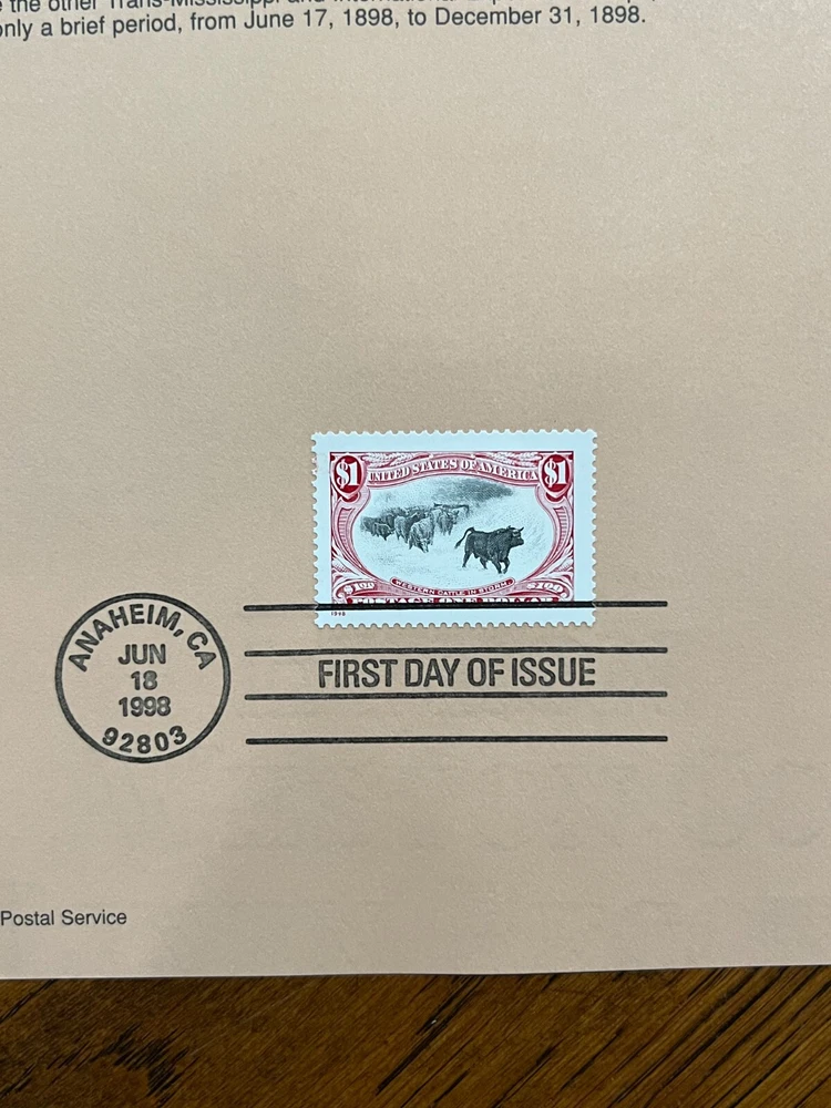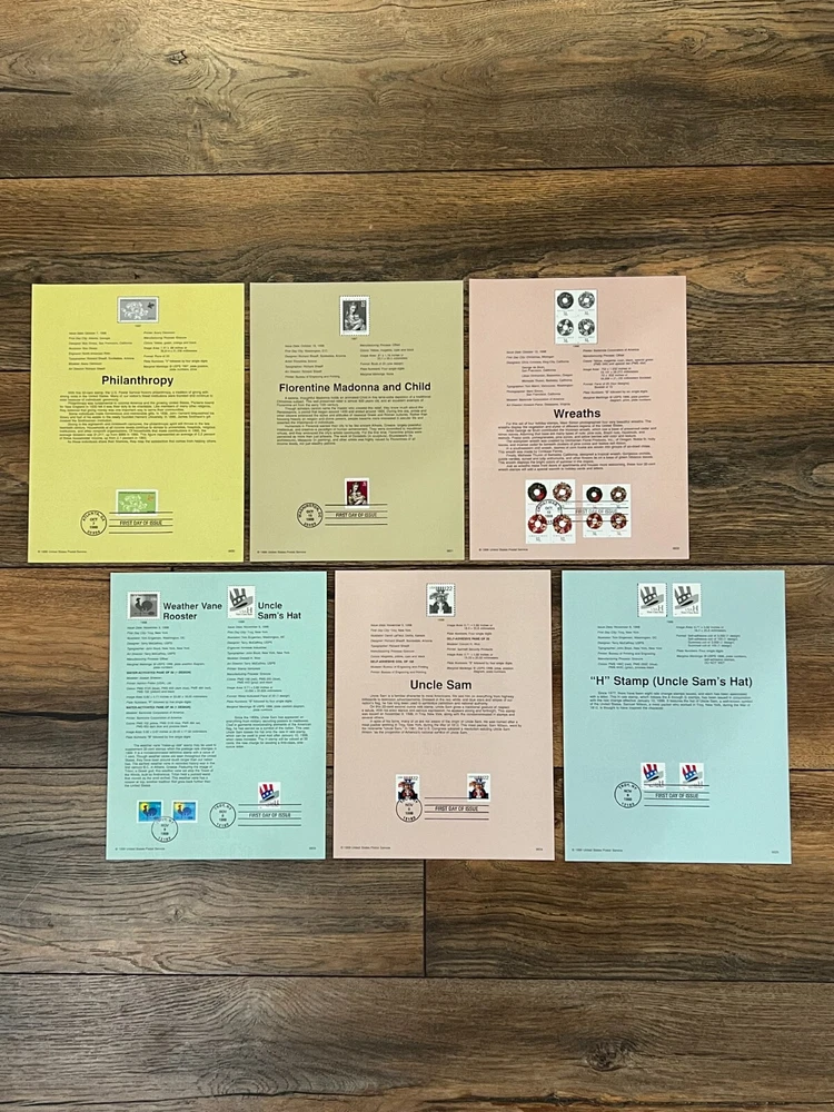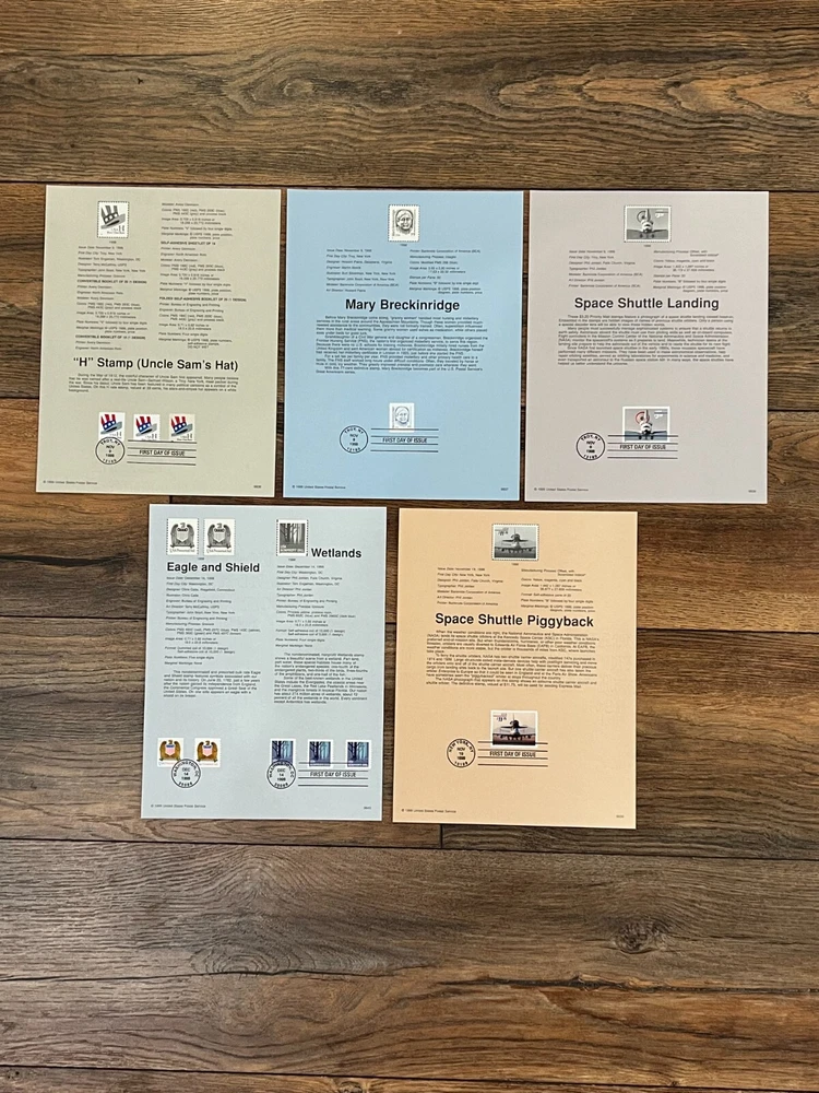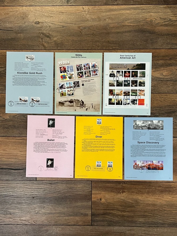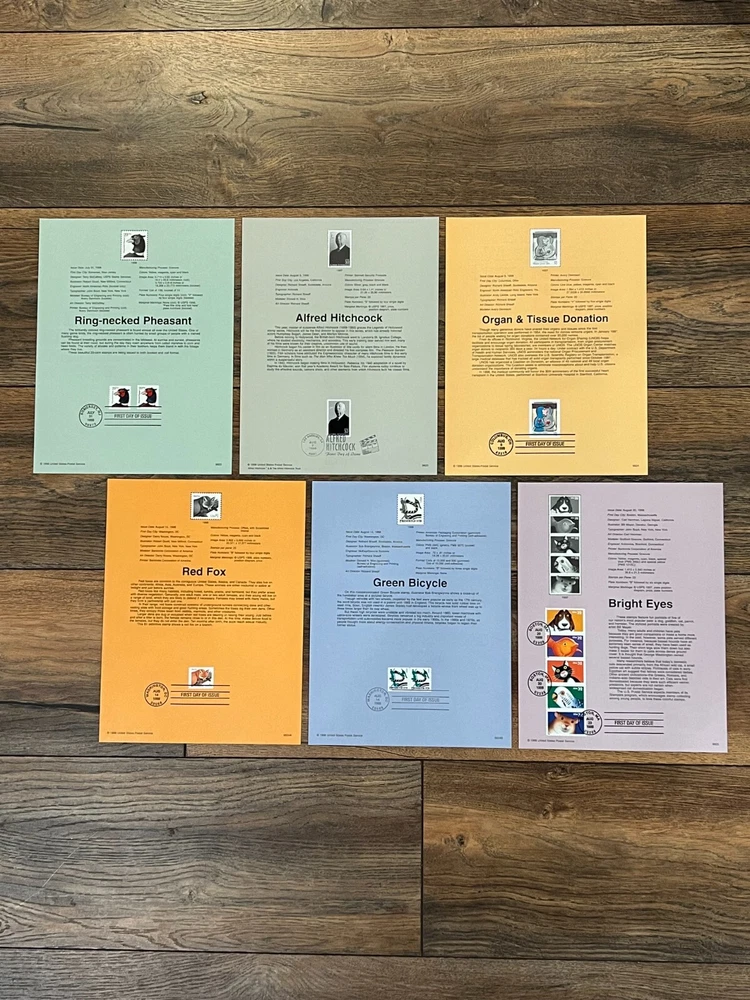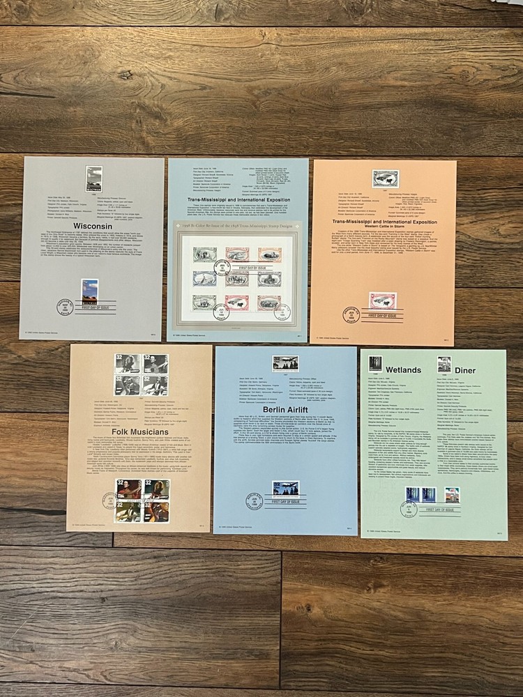 United States Post Office American Souvenir Pages. First Day Of Issue. Complete Year Set with a Scotts or Brookman Catalog Value Several Hundred Dollars!!! From a Smoke Free home to you. STOCK PHOTOS: I have, am, and will sell multiples of these. Pictures are of one set. Although usually very consiste nt, the USPS may have differences on the Souvenir Page (stamps, locations, cancels) Blocks/Packets/Coils may or may not have numbering or margin information/markings. There can be some differences between pictures and actual items. Few pages may have slight blemishes (corner/edge wrinkle/dent/bend). No holes or major blemishes. NOTE: if something very specific you are looking for, ask before purchasing. FREE item with every order! * Shipped with USPS Mail, protected and packed in a hard board cardstock mailer, marked with bright "DO NOT BEND". Information (deemed accurate) below provided from the American Society for Philatelic Pages and Panels (ASPPP). 98-01 1/5/1998 .32 LUNAR NEW YEAR 98-02 1/22/1998 .32 WINTER SPORTS 98-03 1/28/1998 .32 MADAM C.J. WALKER 98-03A 2/3/1998 .32 CELEBRATE THE CENTURY 1900'S 98-03B 2/3/1998 .32 CELEBRATE THE CENTURY 1910'S 98-04 2/15/1998 .32 SPANISH AMERICAN WAR 98-05 3/19/1998 .32 FLOWERING TREES (STRIP OF 5) 98-06 3/25/1998 .32 ALEXANDER CALDER (STRIP OF 5) 98-07 4/3/1998 .32 HENRY R. LUCE 98-08 4/16/1998 .32 CINCO de MAYO 98-09 4/27/1998 .32 SYLVESTER AND TWEETY 98-09A 5/28/1998 .32 CELEBRATE THE CENTURY 1920'S 98-10 5/29/1998 .32 WISCONSIN 98-11 6/18/1998 TRANS-MISSISSIPPI AND INTERNATIONAL EXPOSITION SOUVENIR SHEET 98-12 6/18/1998 $1.00 TRANS-MISSISSIPPI AND INTERNATIONAL EXPOSITION 98-13 6/26/1998 .32 FOLK MUSICIANS (4 DESIGNS) 98-14 6/26/1998 .32 BERLIN AIRLIFT 98-15 6/5/1998 (.05) WETLANDS COIL AND (.25) DINER COIL 98-16 7/11/1998 .32 SPANISH SETTLEMENT OF THE SOUTHWEST 1598 98-17 7/15/1998 .32 GOSPEL SINGERS (4 DESIGNS) 98-18 7/16/1998 .32 LILA AND DeWITT WALLACE 98-19 7/22/1998 .32 STEPHEN VINCENT BENET 98-20 7/29/1998 .32 TOPICAL BIRDS (4 DESIGNS) 98-21 7/29/1998 .32 BREAST CANCER 98-22 7/31/1998 .20 RING-NECKED PHEASANT 98-23 8/3/1998 .32 ALFRED HITCHCOCK 98-24 8/5/1998 .32 ORGAN AND TISSUE DONATION 98-24A 8/14/1998 $1.00 RED FOX 98-24B 8/14/1998 (.10) GREEN BICYCLE COIL 98-25 8/20/1998 .32 BRIGHT EYES (STRIP OF 5) 98-26 8/21/1998 .32 KLONDIKE GOLD RUSH 98-26A 9/10/1998 .32 CELEBRATE THE CENTURY 1930'S 98-27 8/27/1998 .32 AMERICAN ART SHEET OF 20 98-28 9/16/1998 .32 BALLET 98-28A 9/30/1998 (.25) DINER COIL 98-29 10/1/1998 .32 SPACE DISCOVERY (STRIP OF 5) 98-30 10/7/1998 .32 PHILANTHROPY 98-31 10/15/1998 .32 MADONNA AND CHILD 98-32 10/15/1998 .32 WREATHS (SHEET & BOOKLET BLOCK) 98-33 11/9/1998 "H" (.33) STAMP AND (.01) MAKE UP RATE 98-34 11/9/1998 .22 UNCLE SAM COIL 98-35 11/9/1998 "H" (.33) COIL SINGLES 98-36 11/9/1998 "H" (.33) BOOKLETS SINGLES 98-37 11/9/1998 .77 MARY BRECKINRIDGE 98-38 11/9/1998 $3.20 SPACE SHUTTLE LANDING 98-39 11/19/1998 $11.75 SPACE SHUTTLE PIGGYBACK 98-40 12/14/1998 (.10) EAGLE AND SHIELD COIL AND (.05) WETLANDS COIL