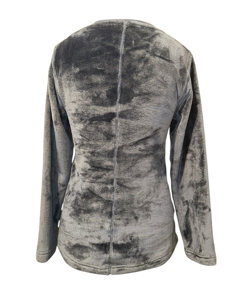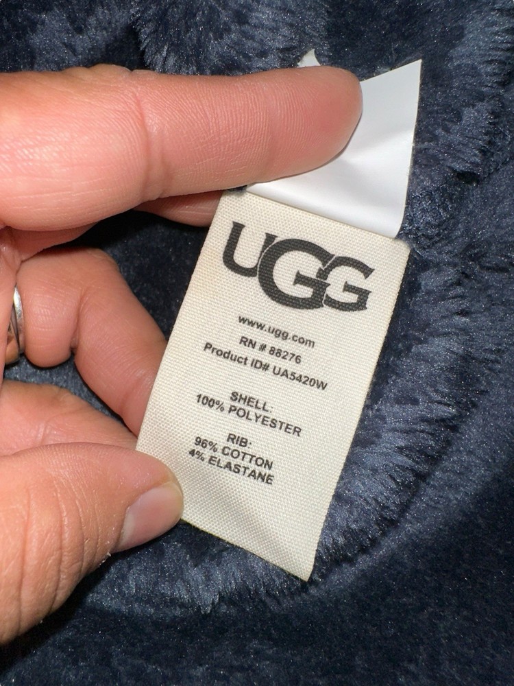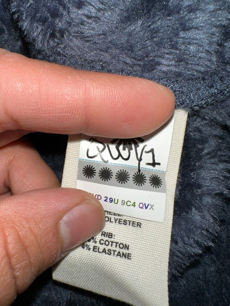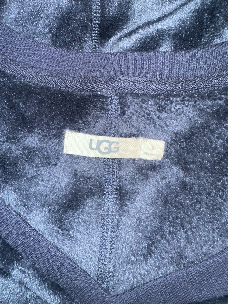 The Ugg Daisy Double Face Fleece V-Neck Lounge Top in Gray, size Small, is a cozy and soft activewear piece perfect for casual occasions. Made of 100% polyester fleece, this pullover top features a solid pattern with a charming daisy character detail. The V-neck design adds a touch of style to this lounge-worthy top, which is easy to care for with machine washable instructions. Ideal for winter, fall, or spring, this UGG Australia branded top exudes a relaxed and comfortable vibe. 17" chest 23.5" length 24" sleeve 0358