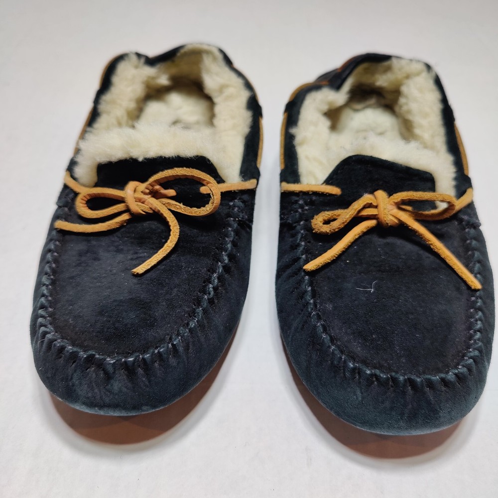 Ugg Dakota Suede Sherpa Lined Moccasins Slippers 5612 Women's Size 7 Black Sleepers are in very good condition no obvious flaws noted Please Zoom in for specific details on condition.