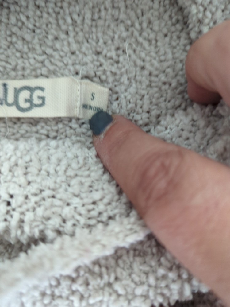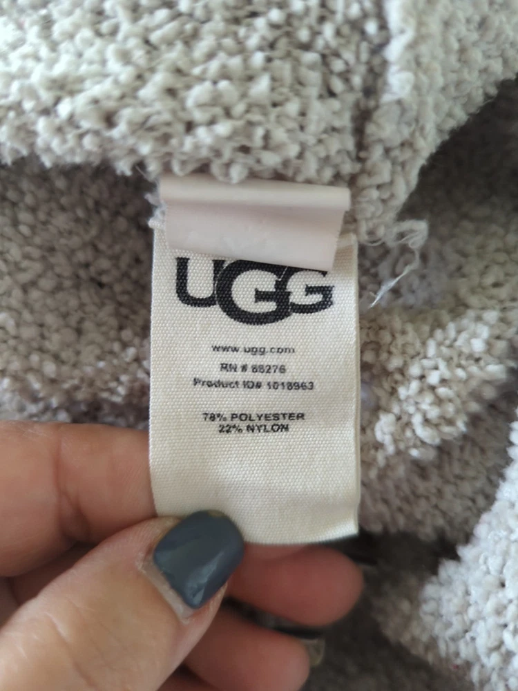 Wrap yourself in the epitome of comfort with the UGG Sherpa Mock Neck Sweater. Crafted for those who cherish warmth and style, this cozy fleece pullover features a snug mock neck and long raglan sleeves, perfect for transitioning through fall, spring, and winter. The soft beige tone is versatile, effortlessly complementing your casual or workwear ensembles. Experience the luxurious feel of UGG's renowned polyester fabric, engineered to provide a cozy yet durable layer. Its solid tight-knit pattern ensures a sleek look, while the sweater's machine washability adds convenience to its care. Designed to fit regularly, this size small sweater is an essential addition to your wardrobe, promising to keep you snug and stylish.