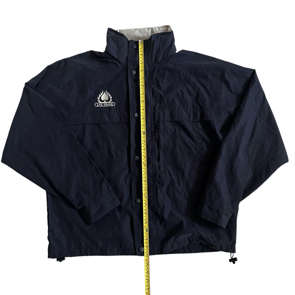 VTG Ultra Club Las Vegas Navy Blue Windbreaker Excellent condition Button and zipper closure Inside has a phone pocket, a zipper pocket and a regular one Length 27 inches Width 23 inches Sleeve length...