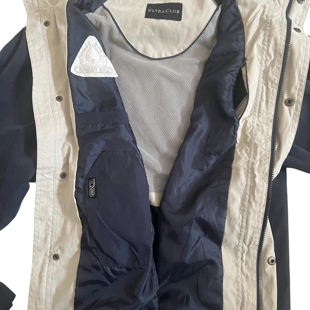 VTG Ultra Club Las Vegas Navy Blue Windbreaker Excellent condition Button and zipper closure Inside has a phone pocket, a zipper pocket and a regular one Length 27 inches Width 23 inches Sleeve length 20 inches