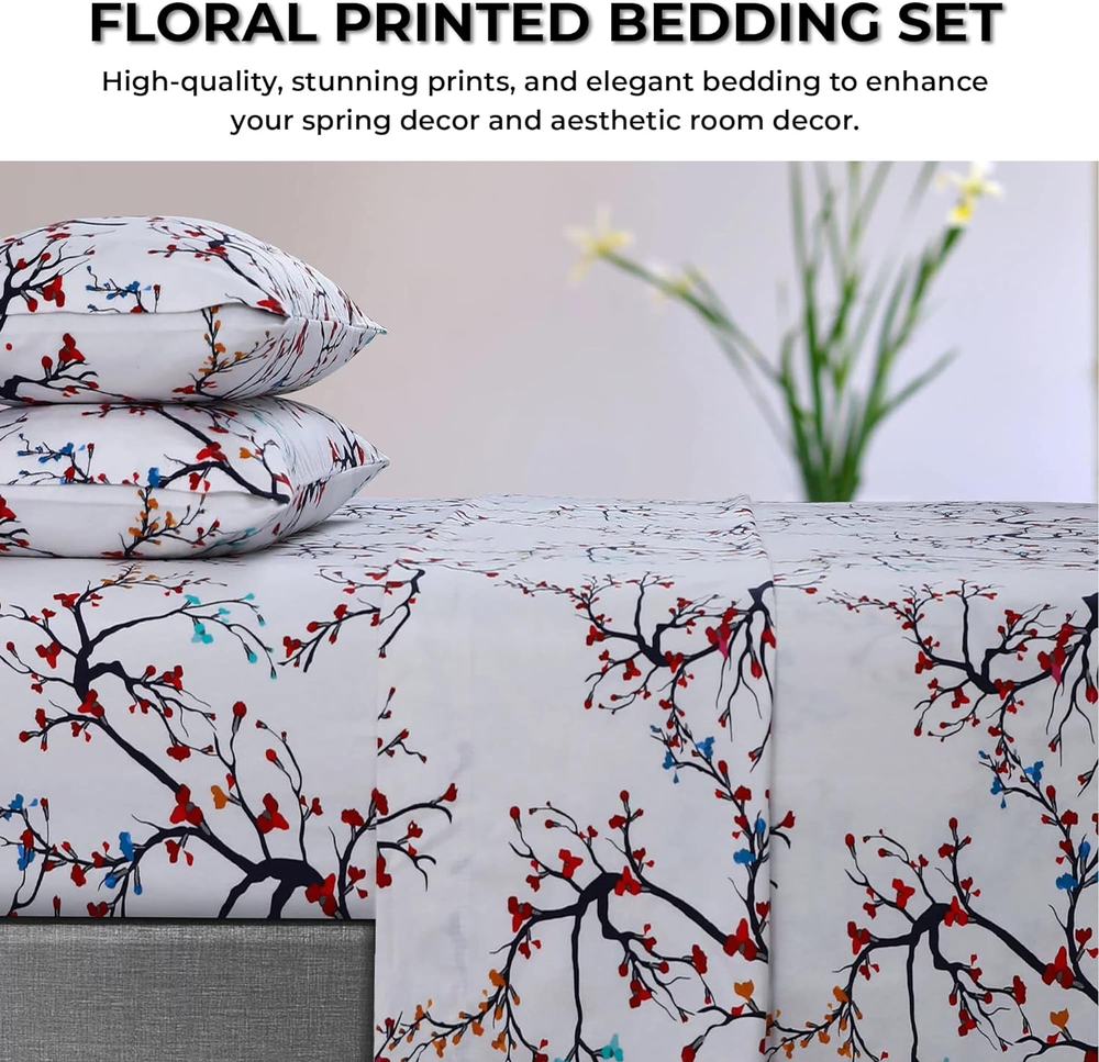 100% Cotton Flannel Ultra-Soft 170 GSM Cotton Flannel: Experience unparalleled comfort with this ultra-soft 170 GSM flannel sheet set. Made from 100% cotton, these sheets are brushed on both sides for added softness, ensuring a warm and cozy sleep during colder months. Extra Deep Pockets for a Secure Fit: Designed with fully elasticized edges, the fitted sheet accommodates mattresses up to 21 inches deep, ensuring a snug fit on thicker mattresses and pillow-tops for a smooth, comfortable surface. Complete Queen Bedding Set: Includes an oversized flat sheet, a fully elasticized deep pocket fitted sheet, and two pillowcases with envelope closures for a polished look. The oversized flat sheet offers extra coverage for added comfort. Durable and Easy Care: These flannel sheets are machine washable and designed for long-lasting use. They retain their softness and vibrant colors even after multiple washes, making them a practical choice for everyday use and winter bedding. Available in Multiple Sizes and Designs: Choose from a range of sizes and patterns to fit your bed and personal style. Whether you prefer bold colors or subtle designs, Tribeca Living offers something for everyone. Woven 170 gsm 100% cotton, these cozy printed flannel sheets feature eye catching printed patterns in a range of floral patterns. This sheet set is designed to accomodate most extra deep mattresses with its fully-elasticized extra deep fitted sheet.