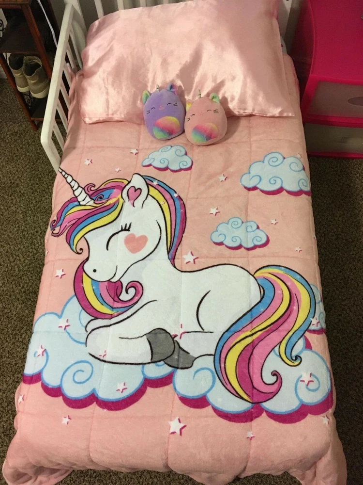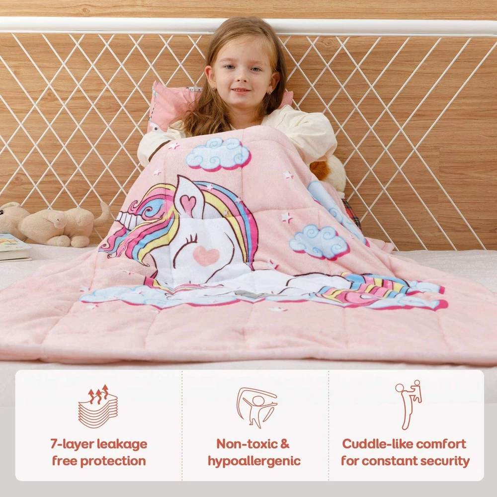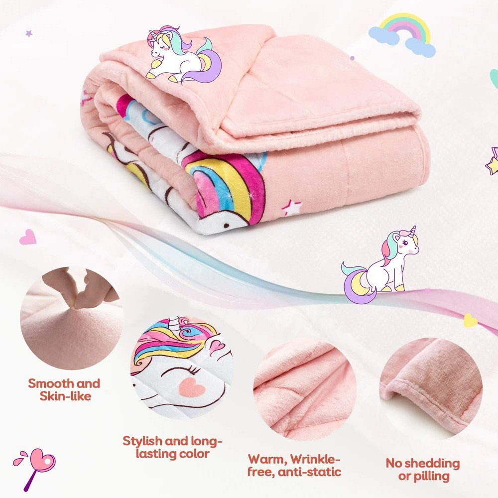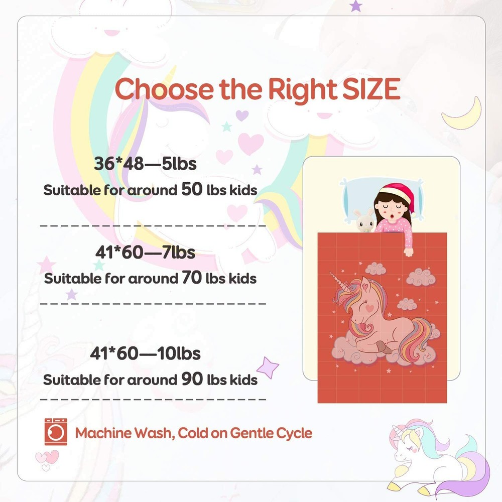 Contact Us Add to Favorite Welcome to BLUE BEAR STORE Contact Us Fast Shipping Hassle Free Return eBay Money Back Guarantee Authenticity Guarantee Unicorn Blanket Fleece Pink Weighted Blanket Soft Cozy for Girls Kids Deep Sleep Features Better Sleep Achieved Effortlessly: Studies show that children’s physical and mental development is closely related to their sleep quality. Our fleece weighted blanket holds your little ones gently to calm them down for an all-natural sleep so they could deal with daily activities at home, school or day-care effectively and grow their stress levels. Soft Fabric for Added Comfort and Warmth: Both sides are made of Fleece fabric to keep your little ones warm and cozy even in cold winter. Smooth to the touch, this fabric can be machine washed without any deformation, pilling or shedding. Safe and friendly fuzzy weighted blanket for kids. Popular Unicorn Pattern: Unicorn has been a quite popular cartoon character among children for a long time. Conforming to this trend, our weighted blanket is printed with unicorn, rainbow, clouds, and stars integrating almost all the elements from a child’s dream thanks to the digital printing process which provides both long-lasting and stylish colors. Even and Stable Body Pressure Design: Apply the cutting-edge 7-layer structure with the nontoxic and odorless glass beads in the middle covered by 3 layers of anti-leakage protection respectively so that the weight is evenly distributed. Additionally, the smaller 4 x 4 inches pocket design locks the glass beads securely in place. Customized for Children at Different Weights: In order to enjoy all the benefits of a weighted blanket, it should perfectly fit the kid’s body and weigh about 10% of the child’s weight. The fleece weighted blankets 7lbs 41”x60” are the ideal weighted blankets for children weighing 60 to 80 lbs. Our fleece weighted blanket comes with different sizes for use of kids at different weights. Item Description Have you ever had trouble sleeping? How about your child? Study shows that a ton of kids have difficulty going to sleep nowadays, and finding a solution is always at the top of the priority list of their parents because lacking of sleep will hinder children’s attention, social skills, behavior and learning abilities dramatically. That’s why sleep is as important as nutrition! If you are looking for a quick solution to ease your children’s trouble sleeping, looking no further, the Buzio kids weighted blanket would be your perfect choice. While it seems strange, a weighted blanket is exactly what it sounds like, a blanket that literally has small weights inside of it to make the blanket a little heavy and applies a firm consistent pressure to the body that is underneath of it to help body transition into sleep. What’s our kids weighted blanket? An all-natural solution for hyper-active children with sleeping troubles via stable and comfortable pressure to calm them down for a faster sleep. Weighted blankets give the evenly pressure, which can be very calming and relaxing , that’s why weighted blankets can be used to relax at any time, not just for sleep. Both sides are made of smooth fleece fabric without pilling, which care every inch of your baby’s skin with extra warmth. And the wrinkle-free and anti-static features add more comfort. What kinds of children need a weighted blanket: Hard to fall into sleep, or short-time sleeper Hyperactive and have difficulty (even after a lot of physical activities) relaxing and sitting still Inattentive and easy to be distracted Love sleeping or laying under piles of blankets or heavy comforters. Enjoy crawling into tight spaces or behind furniture Like wearing heavy sweatshirts and sweaters About us Customer service is our top priority! Please be sure to read the description thoroughly to make sure that this is the item you want before making a purchasing decision. If you have any questions about this item, please contact us via eBay messages before placing your order. We make every effort possible to accurately describe and depict the items. Please be aware that slight variations in color may be due to differences in lighting and computer monitor resolutions. All items are in stock at the time of listing; however, in the unlikely and unforeseen event that we are unable to fulfill your order through any of our networked warehouses, we will notify you as quickly as possible and offer you a 100% refund on your purchase. Thank you for shopping with us. We appreciate your business! Payment PayPal is our preferred method of payment. If you do not have a PayPal account, all major credit cards are gladly accepted through PayPal as the payment processor. PayPal offers great buyer and seller protection. Your order will be processed pending receipt of cleared payment through PayPal. Sales tax may be charged depending on your location. Shipping We provide fast, free shipping. Most items are shipped within 3-10 business days of receiving cleared payment. We ship to the lower 48 contiguous United States only. We do not ship to P.O. Boxes or APOs. For select items, we ship internationally through eBay?s Global Shipping Program. We do ship most of our smaller items internationally using eBays Global Shipping Program. If ordering electrical items outside of the U.S., please note that they will come equipped with a standard U.S. voltage plugs. You will need a suitable adapter to use the item in your country. Certain restrictions apply. Standard or Economy Shipping is ALWAYS FREE! You will be notified via eBay messages as soon as your items ship. Special Notice for Freight Items: If an item ships via Freight (Truck) Delivery, a valid phone number will be required so that we can contact you to schedule delivery. The item may be delivered with curbside delivery. An adult signature will be required. Please be sure to have available help on hand to assist you with moving the item to the desired location in or outsi