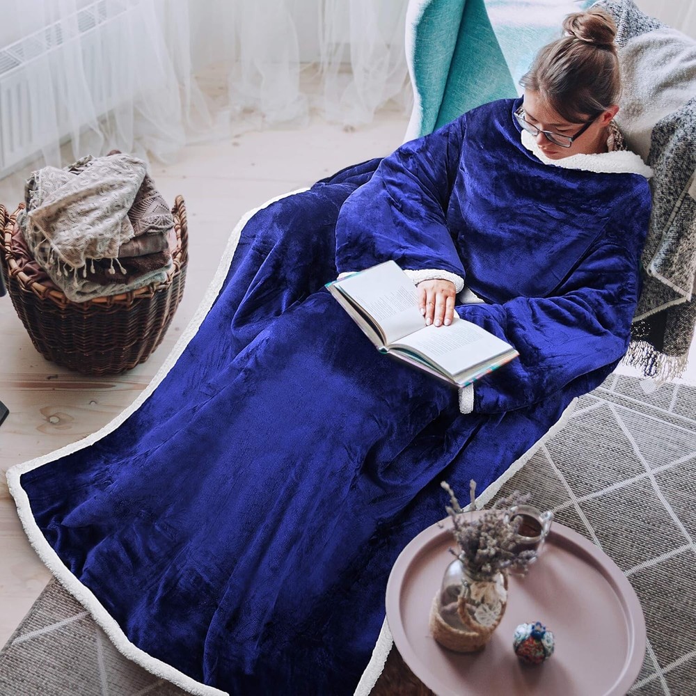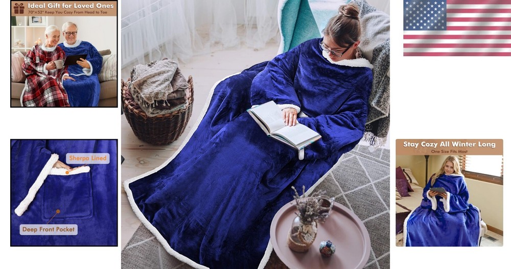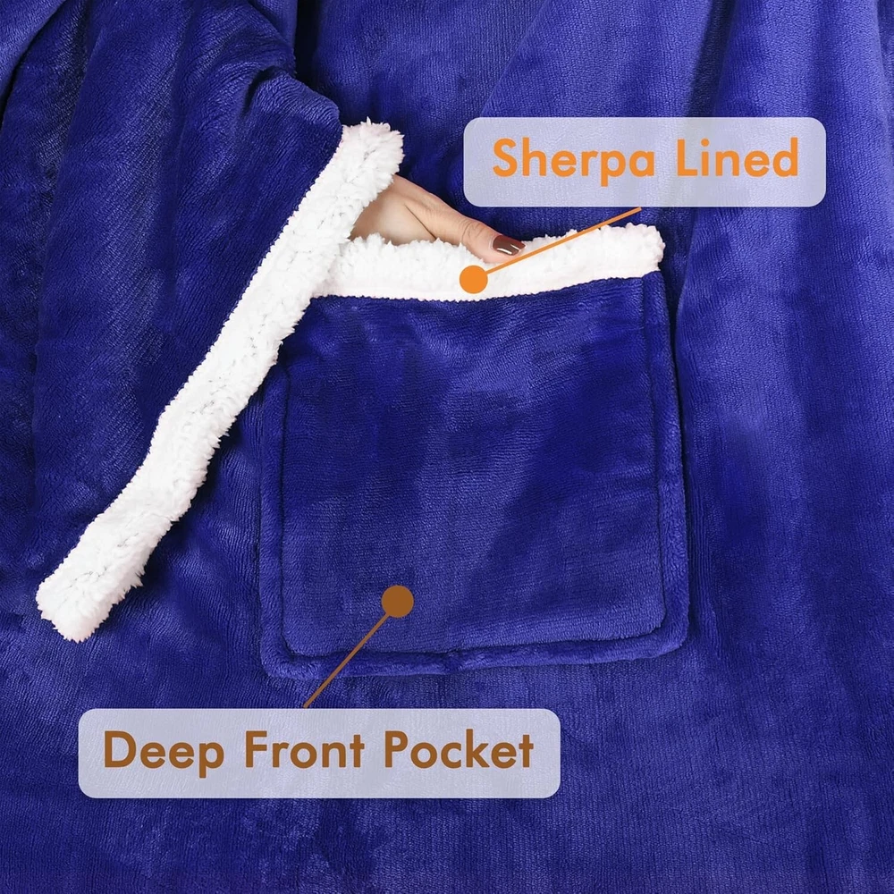 This wearable blanket is a game-changer! The sherpa lining is incredibly soft and cozy, while the oversized design keeps me warm from head to toe. I love the kangaroo pocket for holding my phone or snacks while binge-watching shows. It’s perfect for chilly nights, camping trips, or just lounging around the house. The quality feels premium, and it’s so comfortable I never want to take it off. Definitely worth every penny!