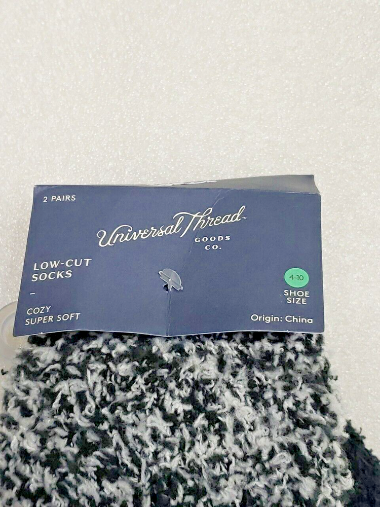 The Universal Thread Cozy Supersoft 2 Pairs of Low Cut Socks in size 4-10 are designed for women. These fuzzy socks are made of polyester and spandex, providing a lightweight and comfortable feel. The socks come in a multicolor pack of black and gray, making them versatile for the winter, fall, and spring seasons. With a low cut style, these cozy socks are perfect for keeping your feet warm and stylish.