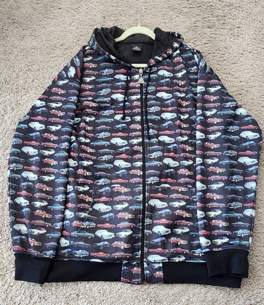 Pre-owned but barely ever worn. Like new condition. The Upper Playground Classic Car All Over Print Hoodie Jacket in Dennis Kennedy XXL is the perfect addition to your wardrobe. Made with 100% polyester outer shell material and lined with polyester, this knit fabric type jacket is designed to keep you comfortable while looking stylish. The mid-length black jacket features a full zipper closure, wind-resistant and hooded features that make it perfect for any outdoor activity. The jacket is machine washable and comes with pockets for added convenience. The all-season design and the combination of features such as sports, skiing, hipster, art, hiking, and logo make it an ideal choice for any occasion. The coat can be used for casual travel, gym and training, walking and running, basketball, soccer, and football games. This Upper Playground Classic Car All Over Print Hoodie Jacket is the ultimate choice for men's streetwear and skater fashion.