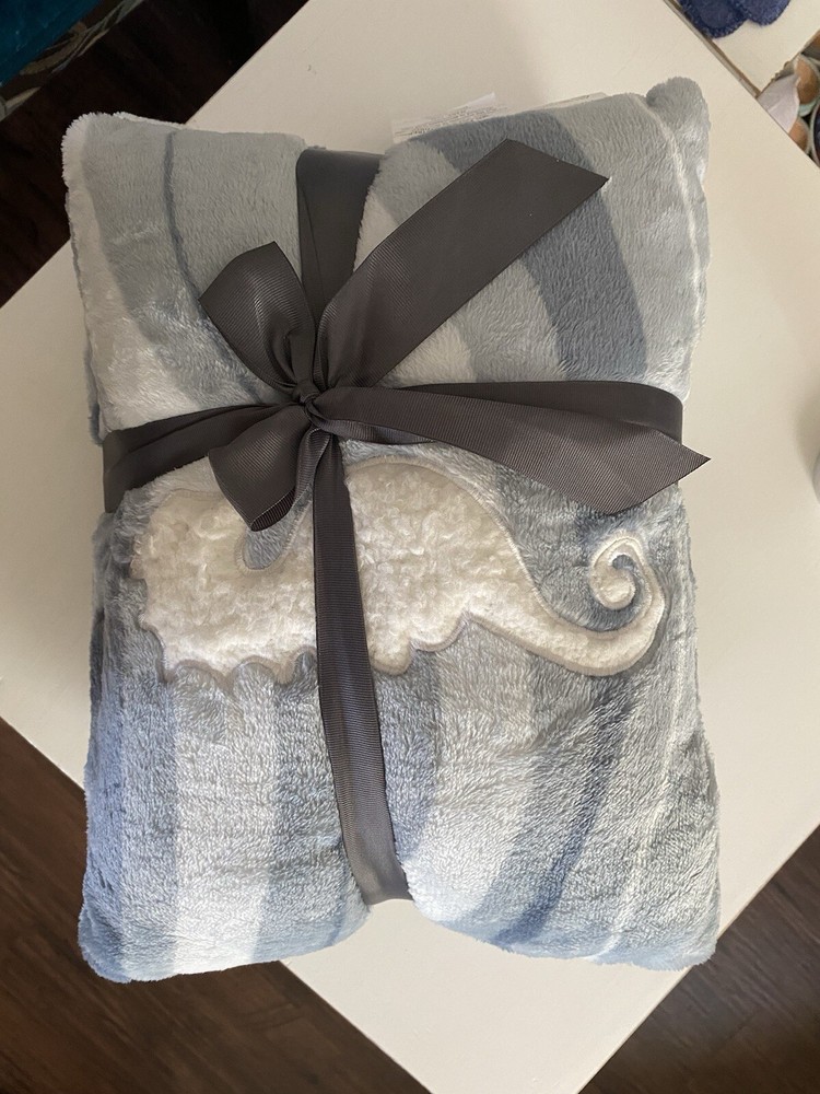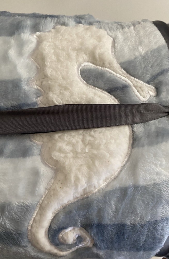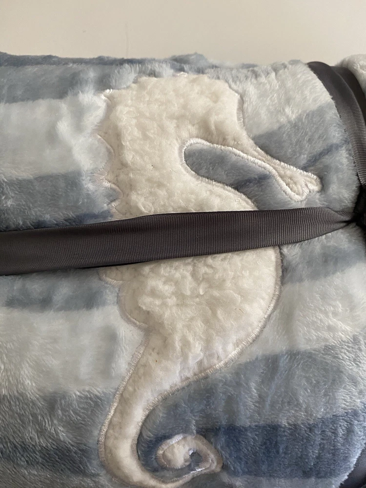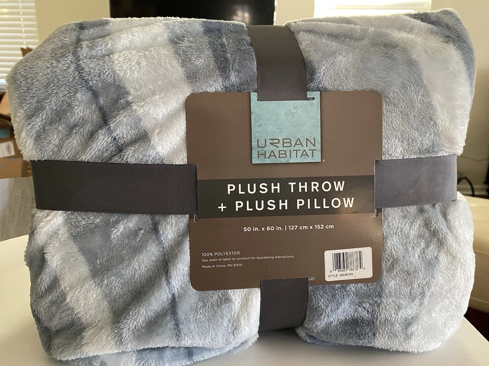 Brand New Set. Urban Habitat Shades of Blue 50" x 60" Plush Throw with Matching Soft Pillow. Embroidered Fuzzy White Fleece Seahorse on the Pillow. Throw measures 50 x 60 inches. Pillow measures 16x12x3 inches Give as a gift or keep this one for yourself. Item#B0175 Items are photographed before/during listing and while packing/shipping.