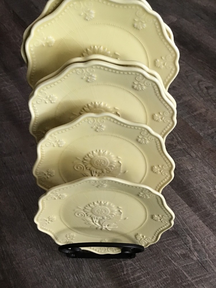 VERA BRADLEY MY HOME - J. WILLFRED 6 YELLOW SUNFLOWER SALAD/DESSERT PLATES 8.5”...